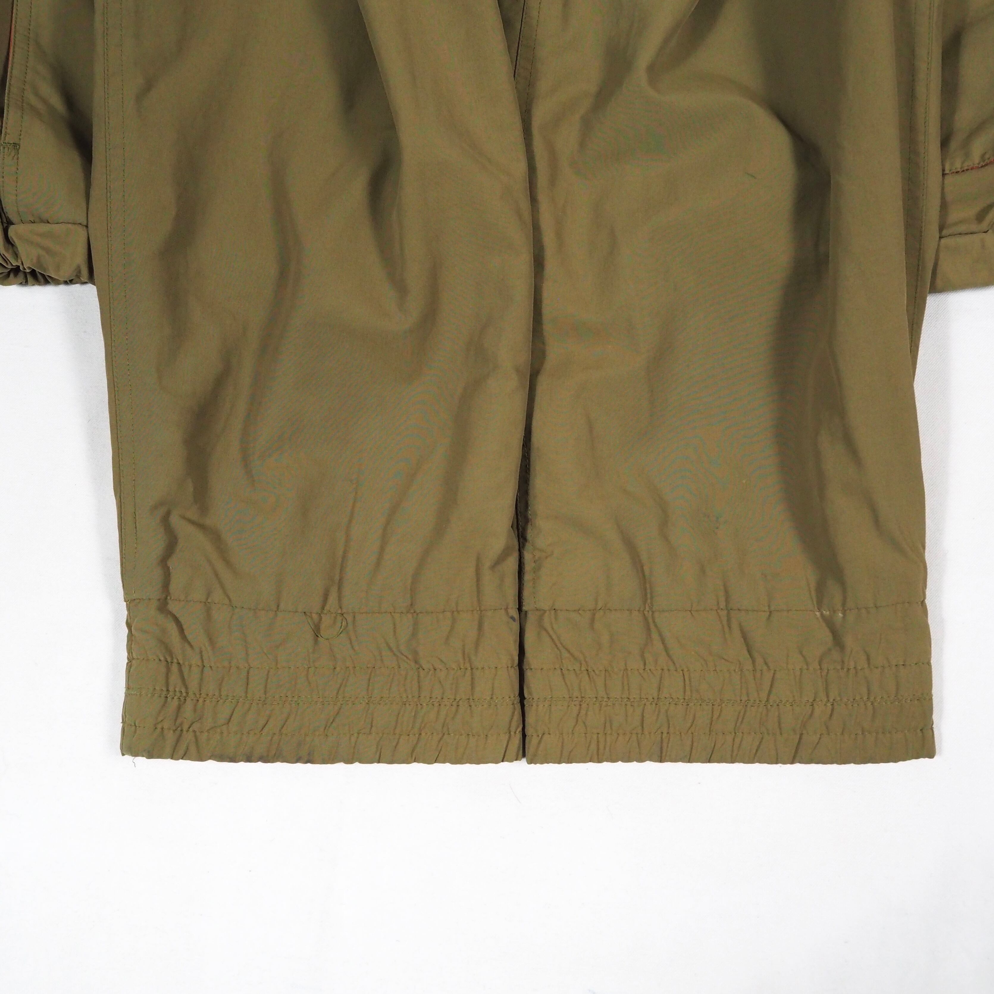 フード欠損、左袖に僅かに汚れ、両袖口のゴムが伸びきっています。
