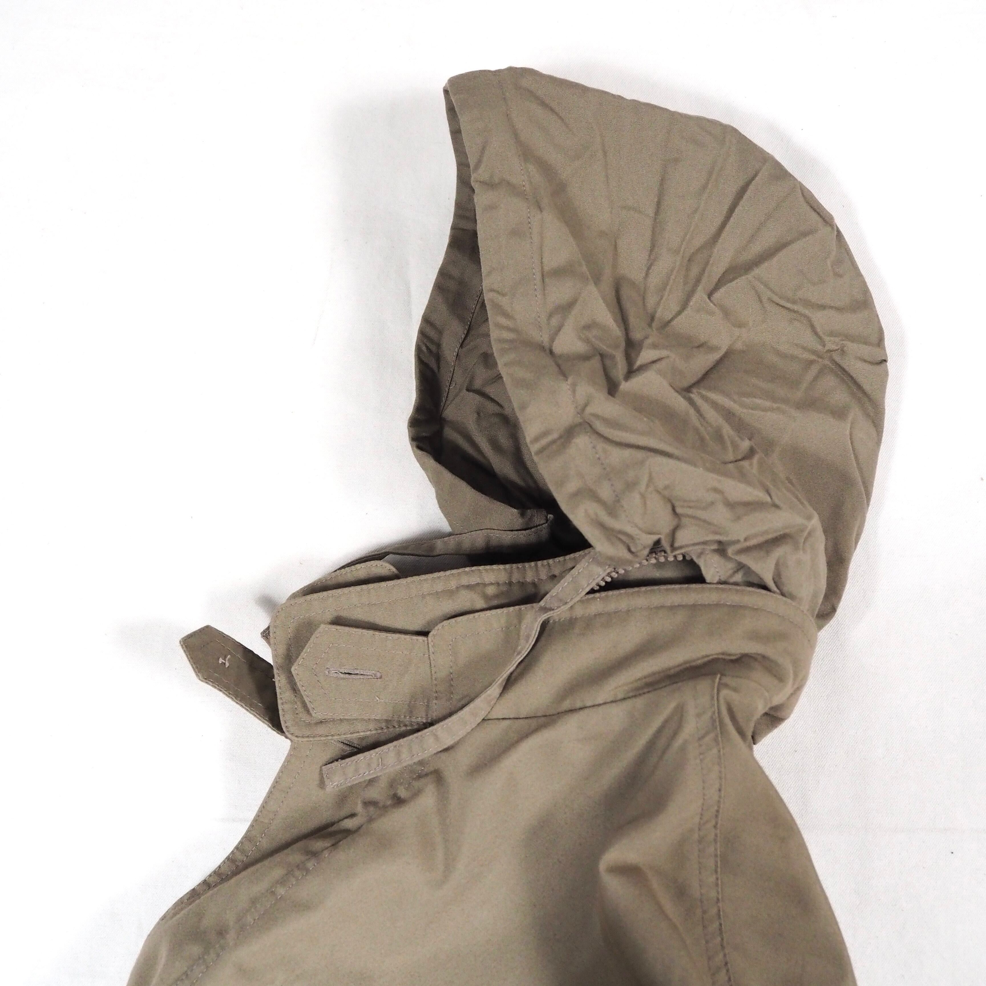 ゆったりとしたボックスシルエット、ショート丈のブルゾンで収納型のフード付き。