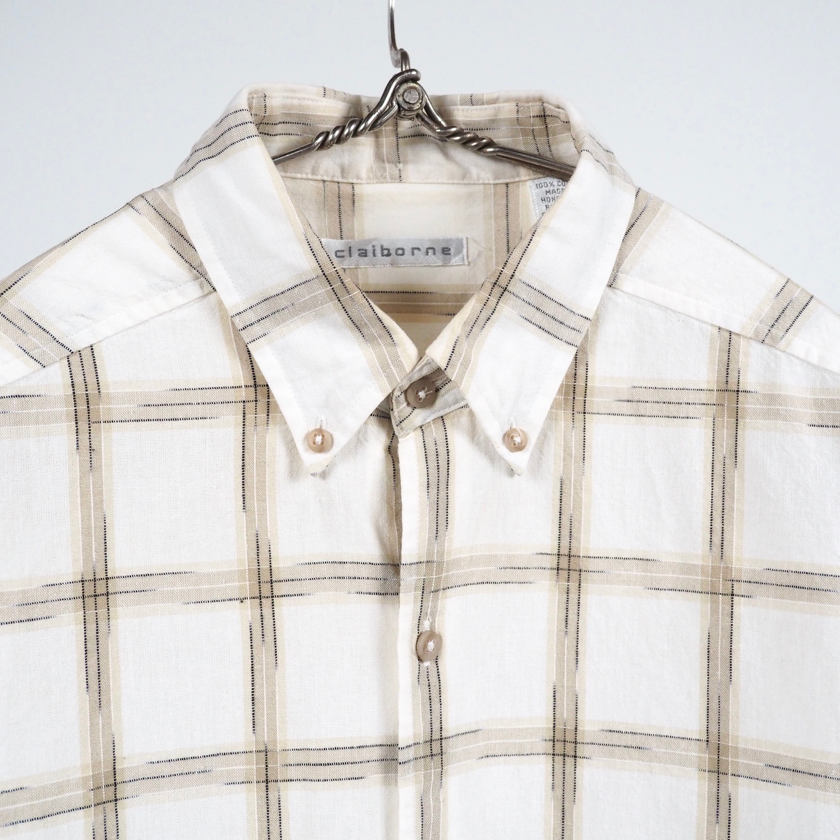 Claiborne Plaid Cotton L/S Shirt White クレイボーン ボタンダウンシャツ チェック ホワイト