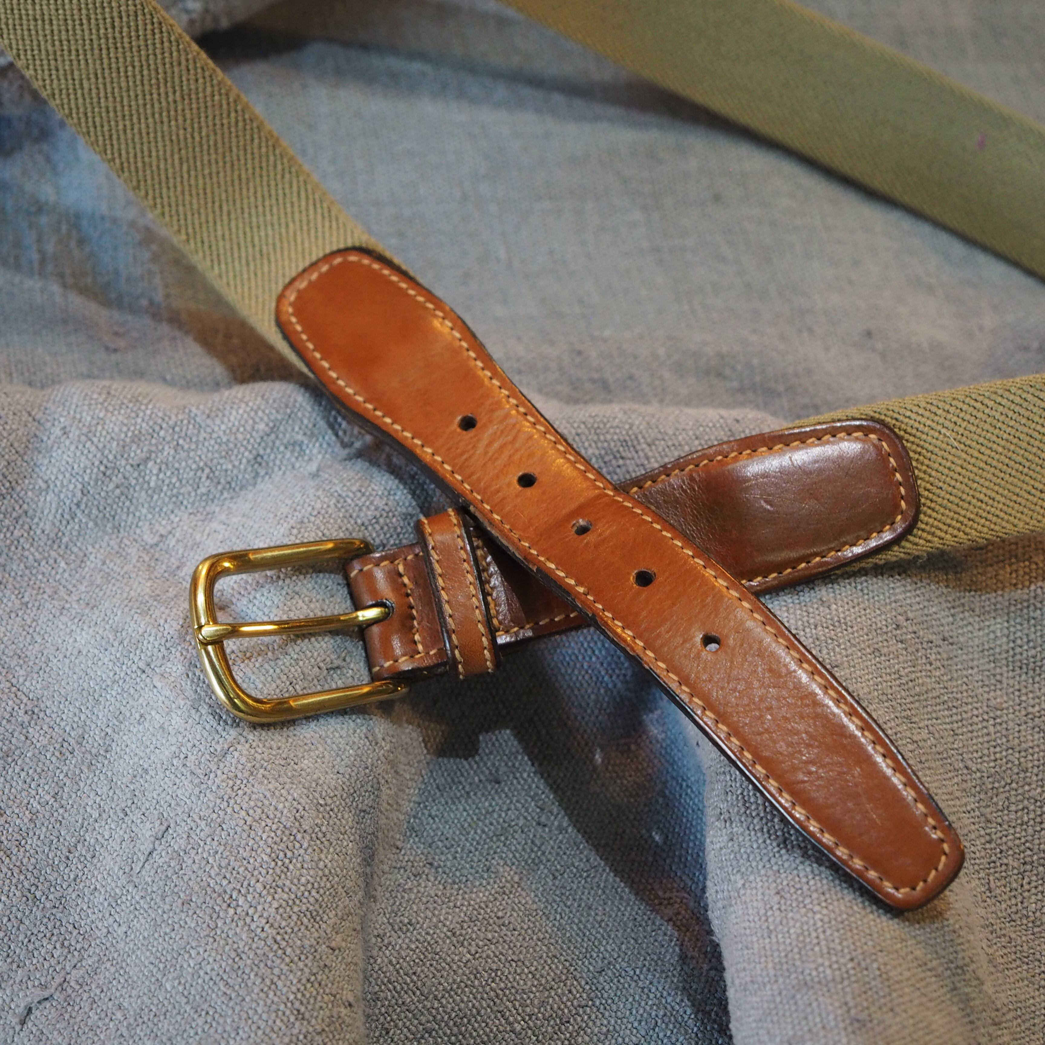 トラディショナルなレザー×コットンキャンバスのコンビベルト、USA製です。
