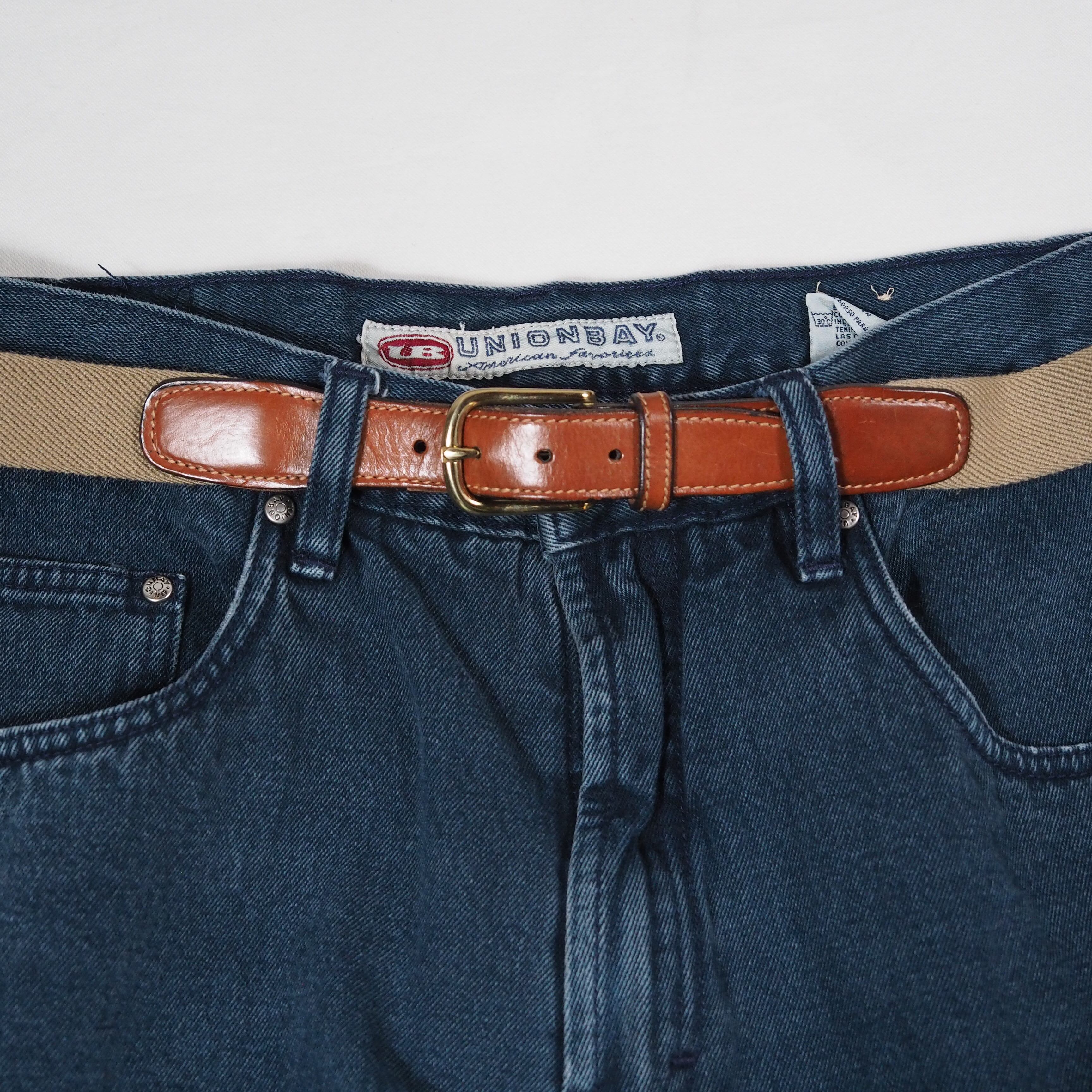 表記サイズは34、2cm間隔で5穴ありますのでウエスト33-35程度の方でしたらちょうど良く着用頂けると思います。