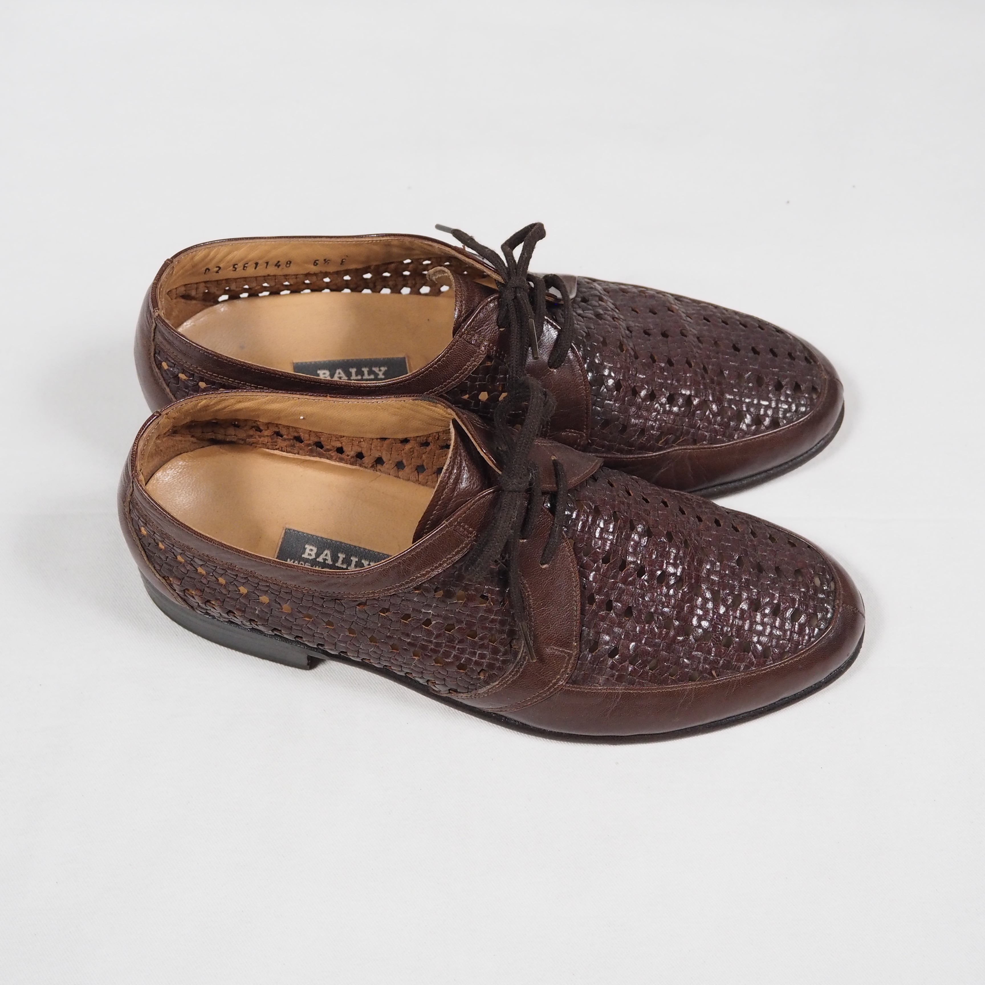 BALLY woven leather shoes US6.5 90's バリー レザーシューズ メッシュ
