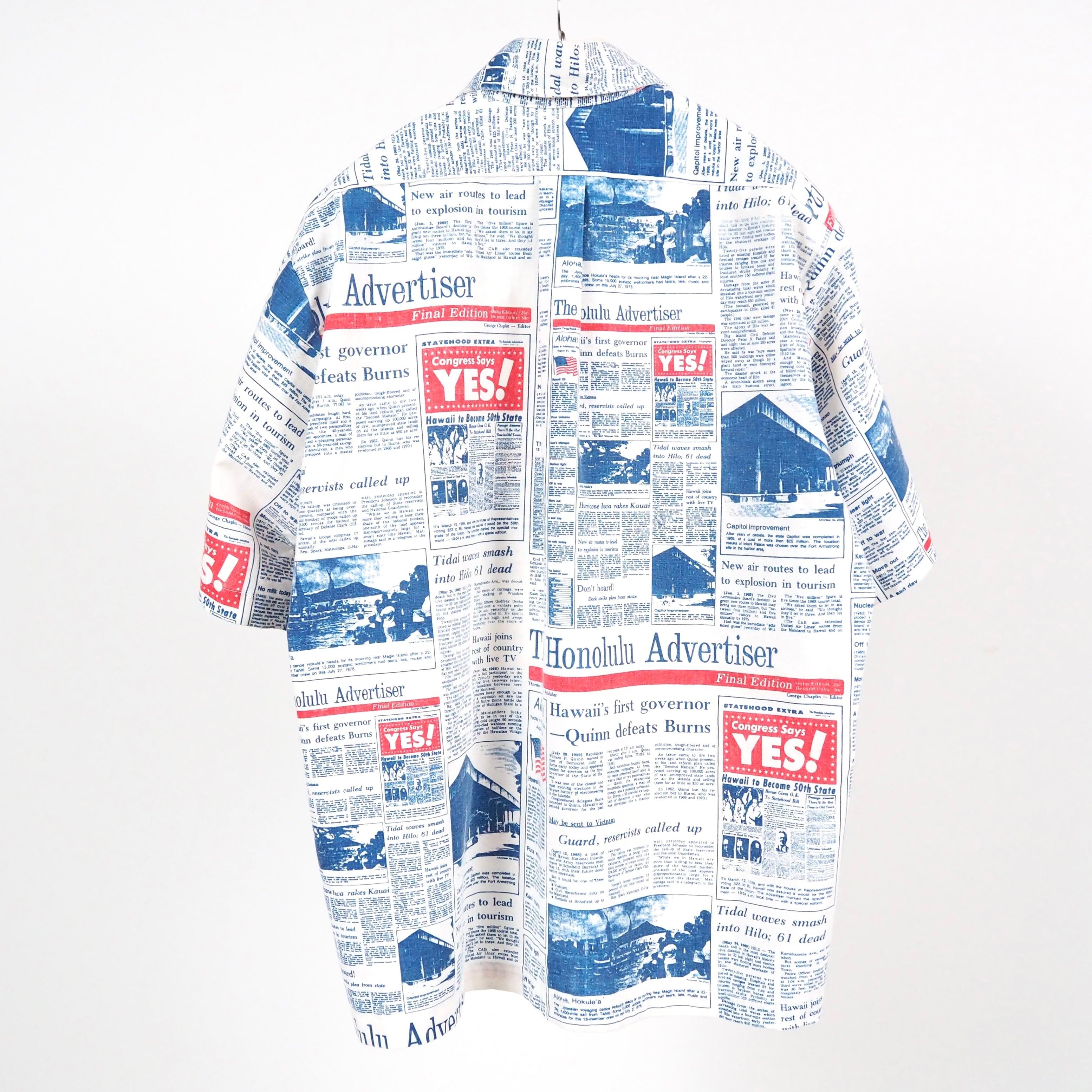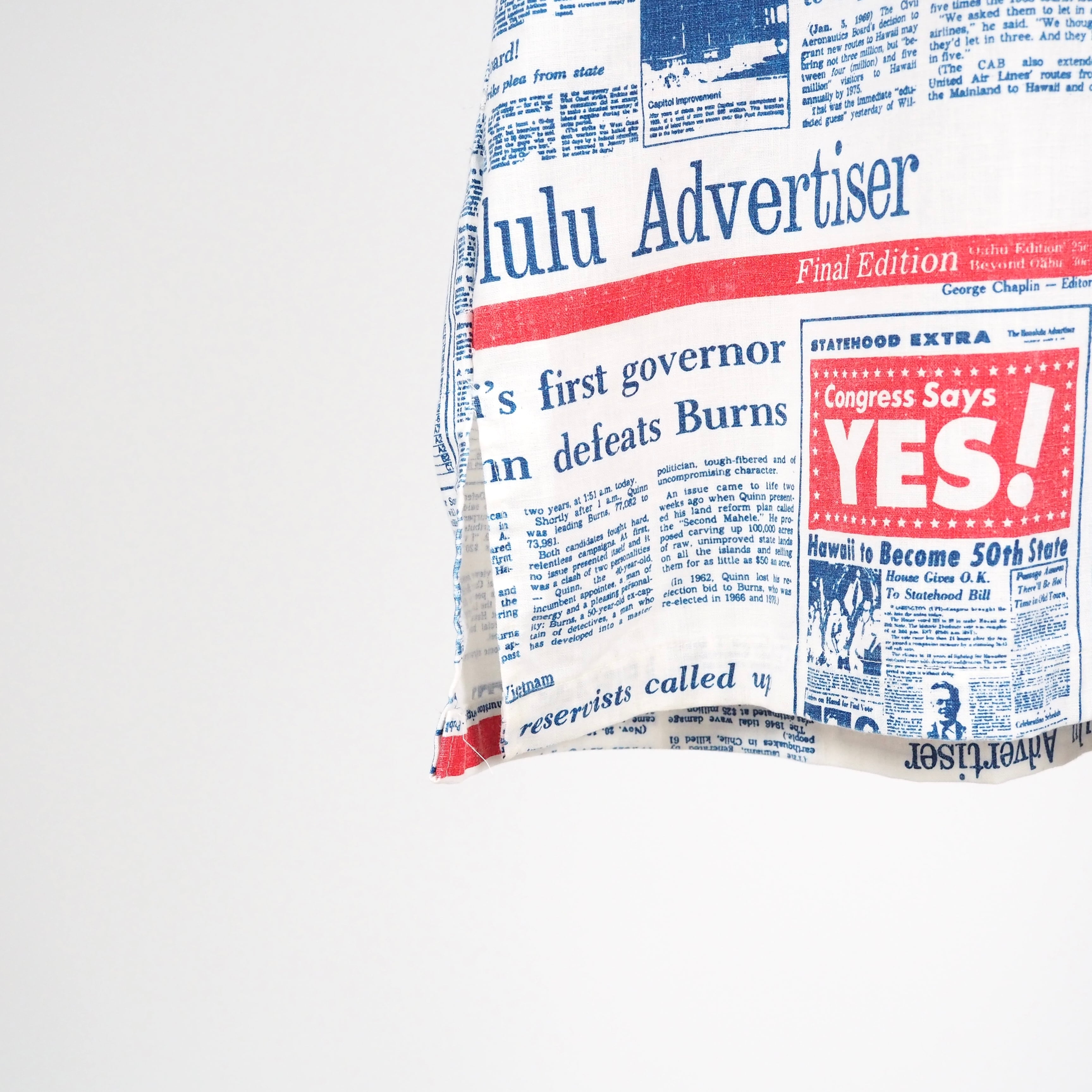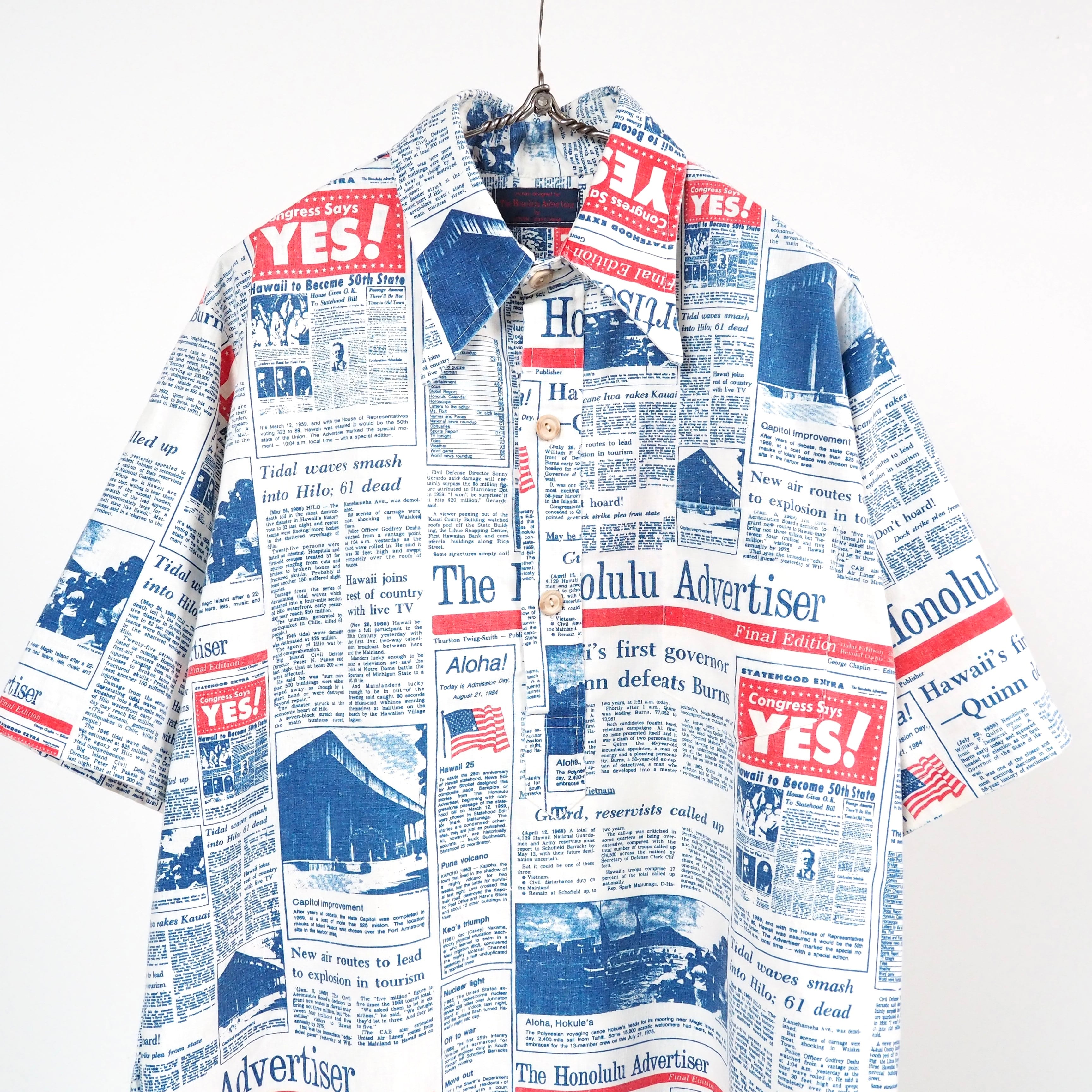 70’s The Honolulu Advertiser newspaper Hawaiian s/s shirt L/XL USA製 ハワイアンシャツ