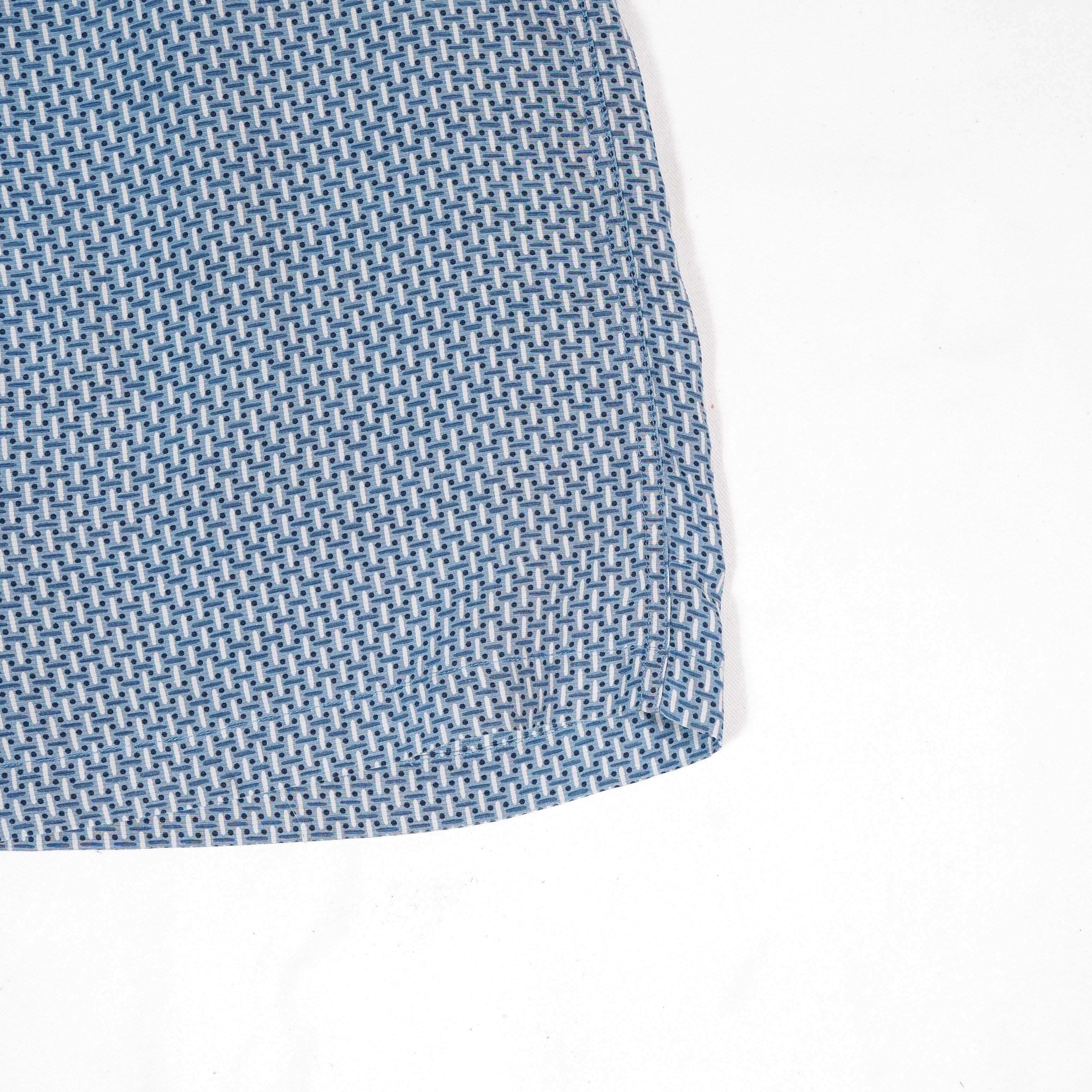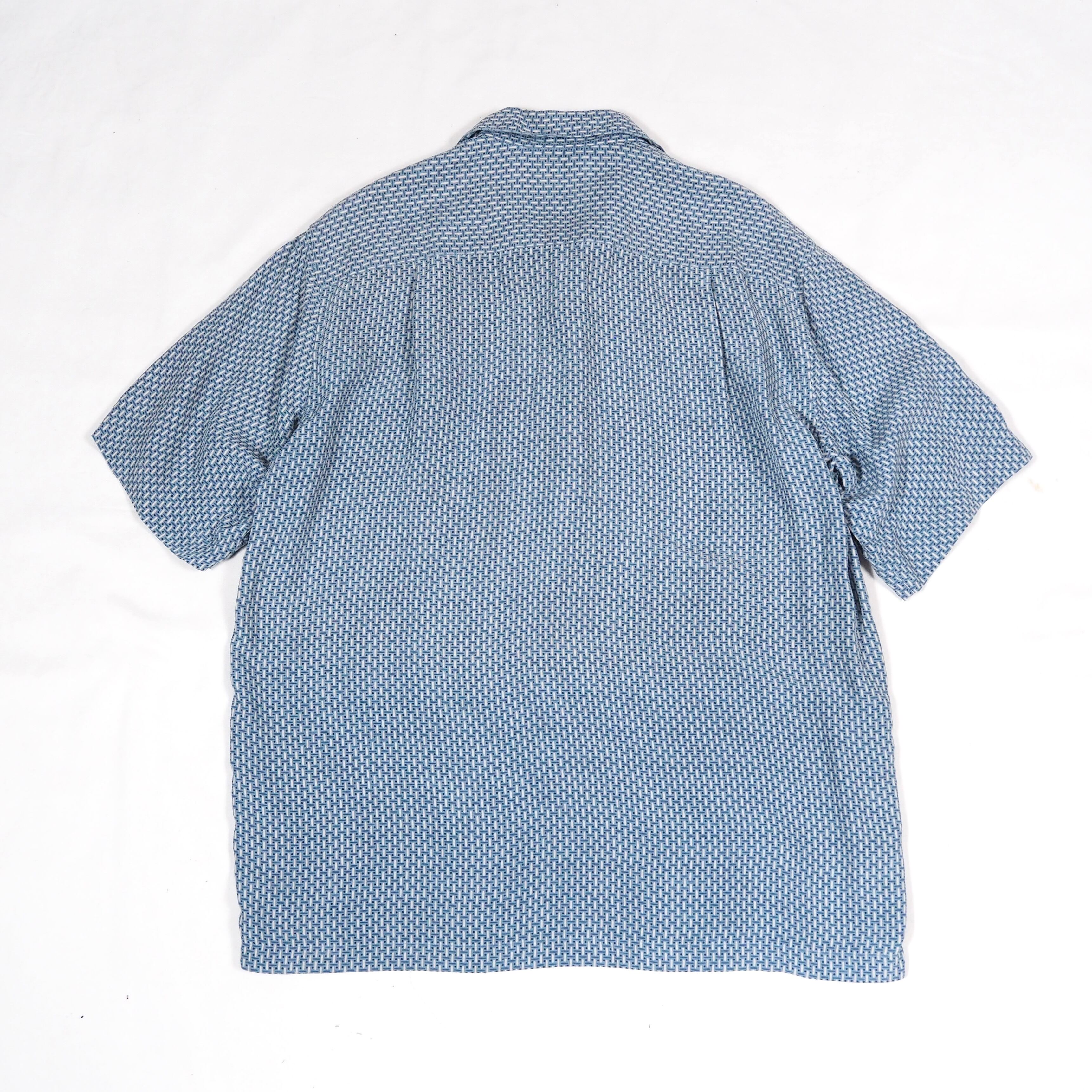 シルク100%、総柄の半袖シャツ。
