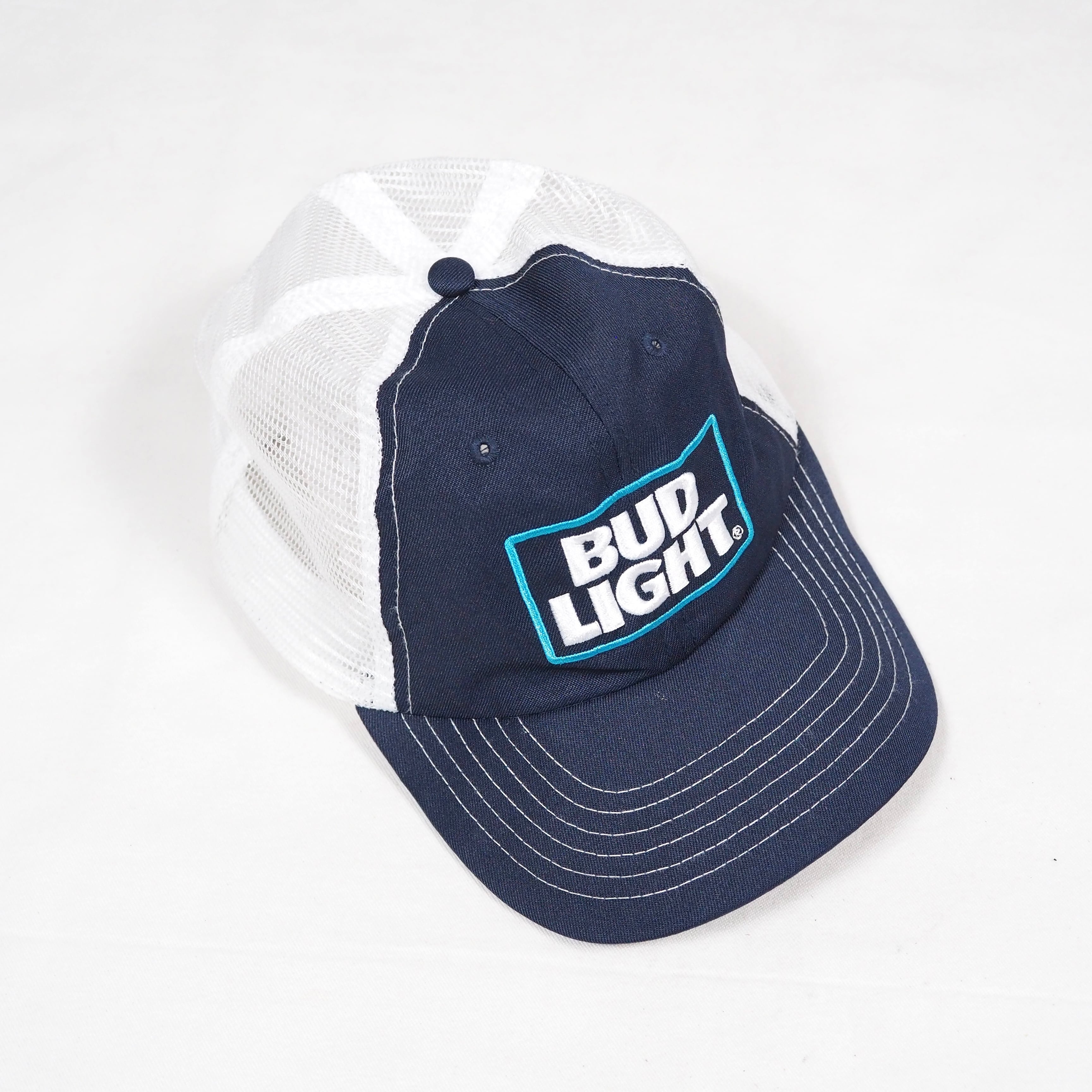 BUD LIGHT box logo embroidered snapback mesh cap navy/white one size fits all バドワイザー メッシュキャップ