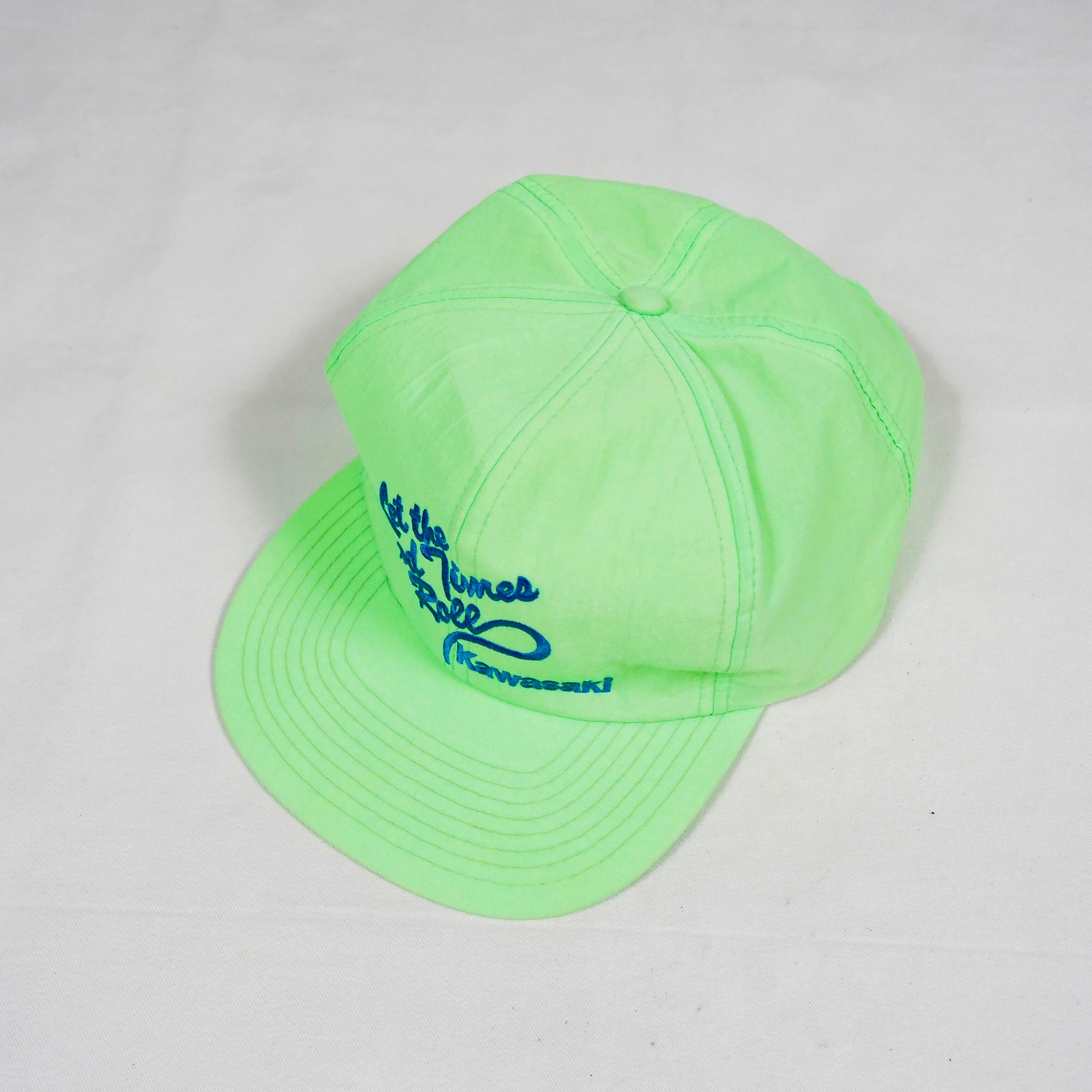 Kawasaki SnapBack cap one size fits all 90’s 台湾製 カワサキ ライムグリーン トラッカーハット