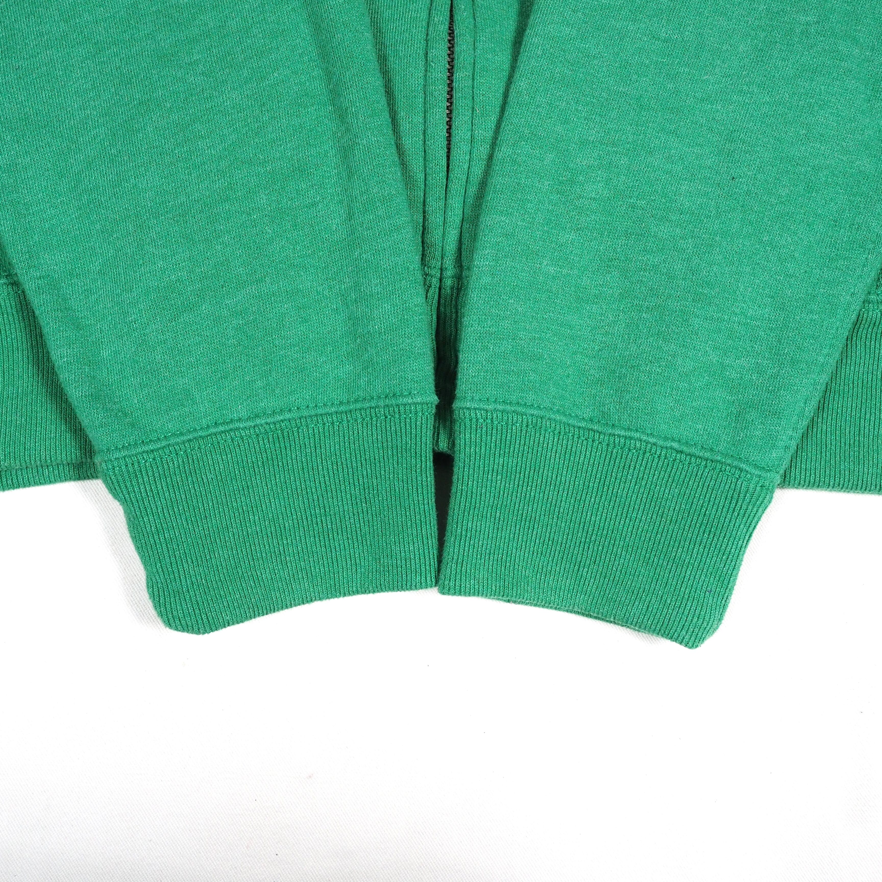 明るいグリーンカラー、ふんわりと柔らかい着心地の裏起毛ボディー。