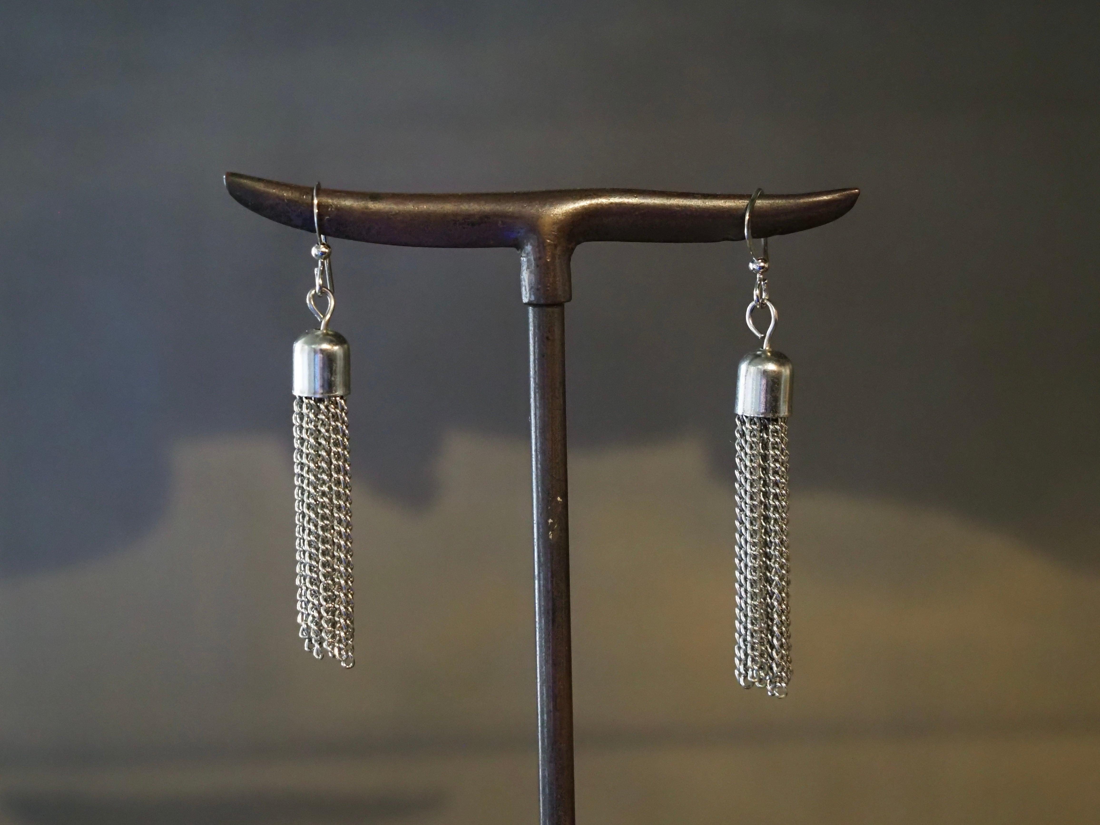 アメリカで買い付けたタッセルデザインのシルバートーンのピアスです。