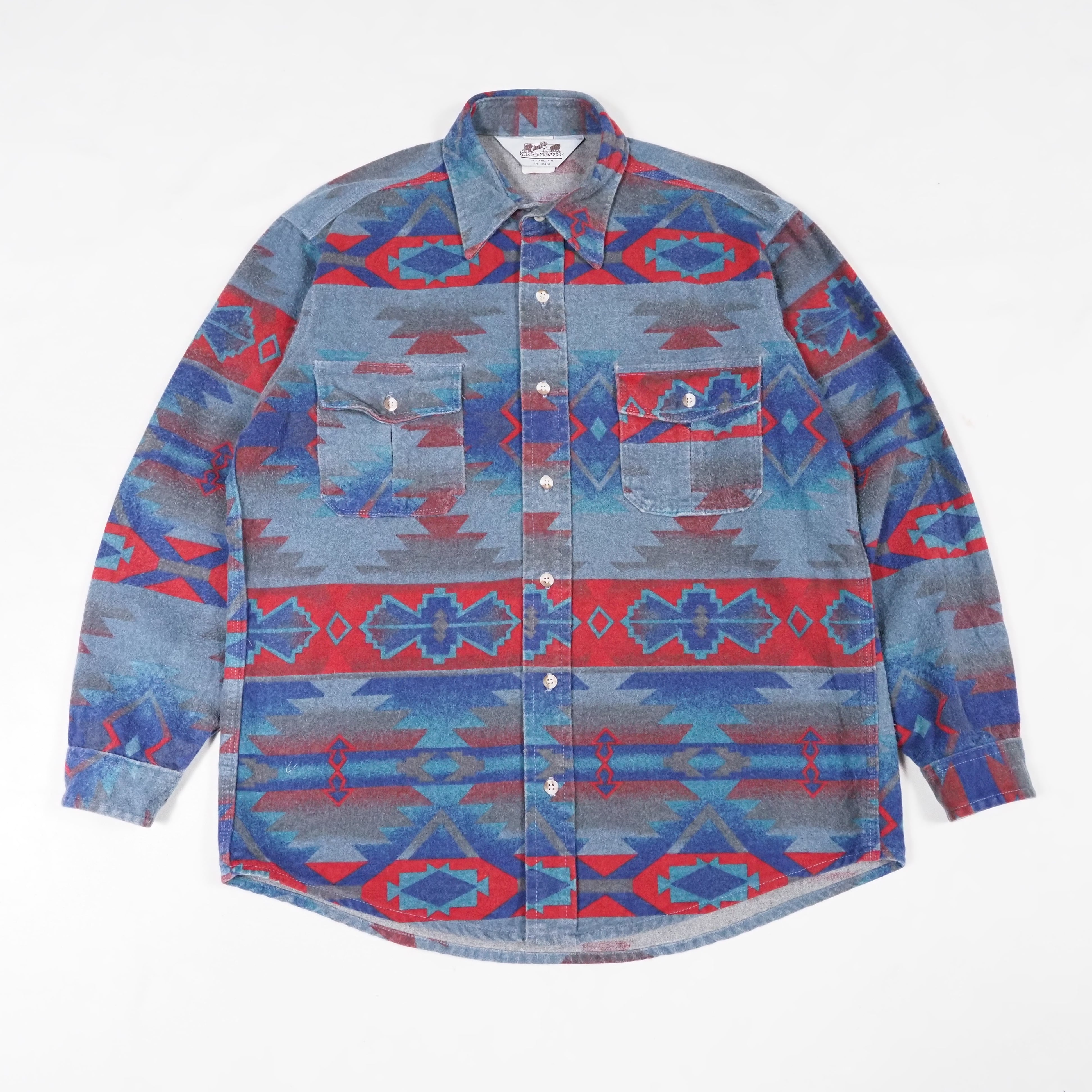 The Sportsman’s Guide chamois cloth shirt Aztec M/L 80's USA製 ネイティブ柄 シャモアクロスシャツ