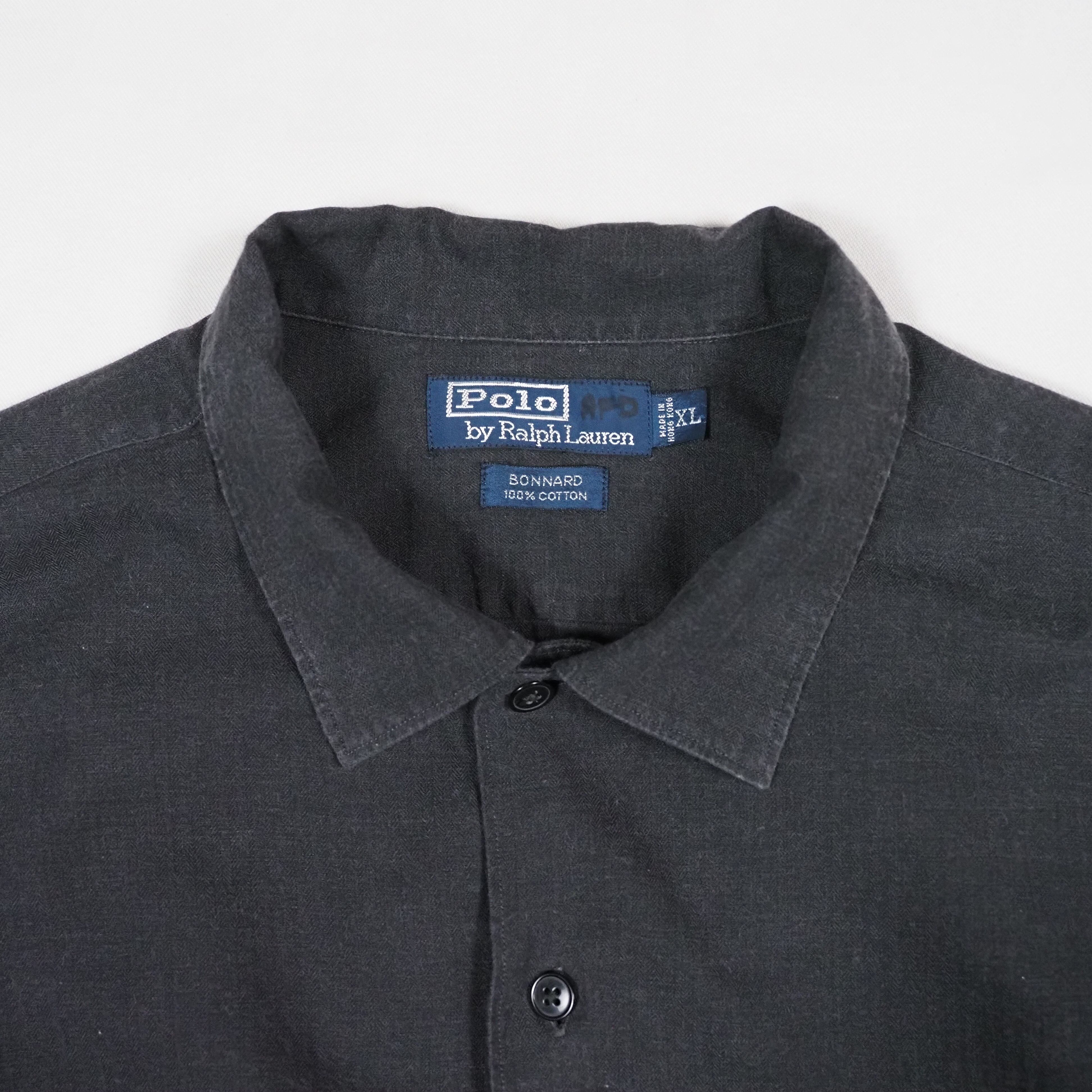 Polo by Ralph Lauren “BONNARD” herringbone cotton l/s shirt XL charcoal 90’s ポロラルフローレン 長袖シャツ オープンカラー チャコールグレー