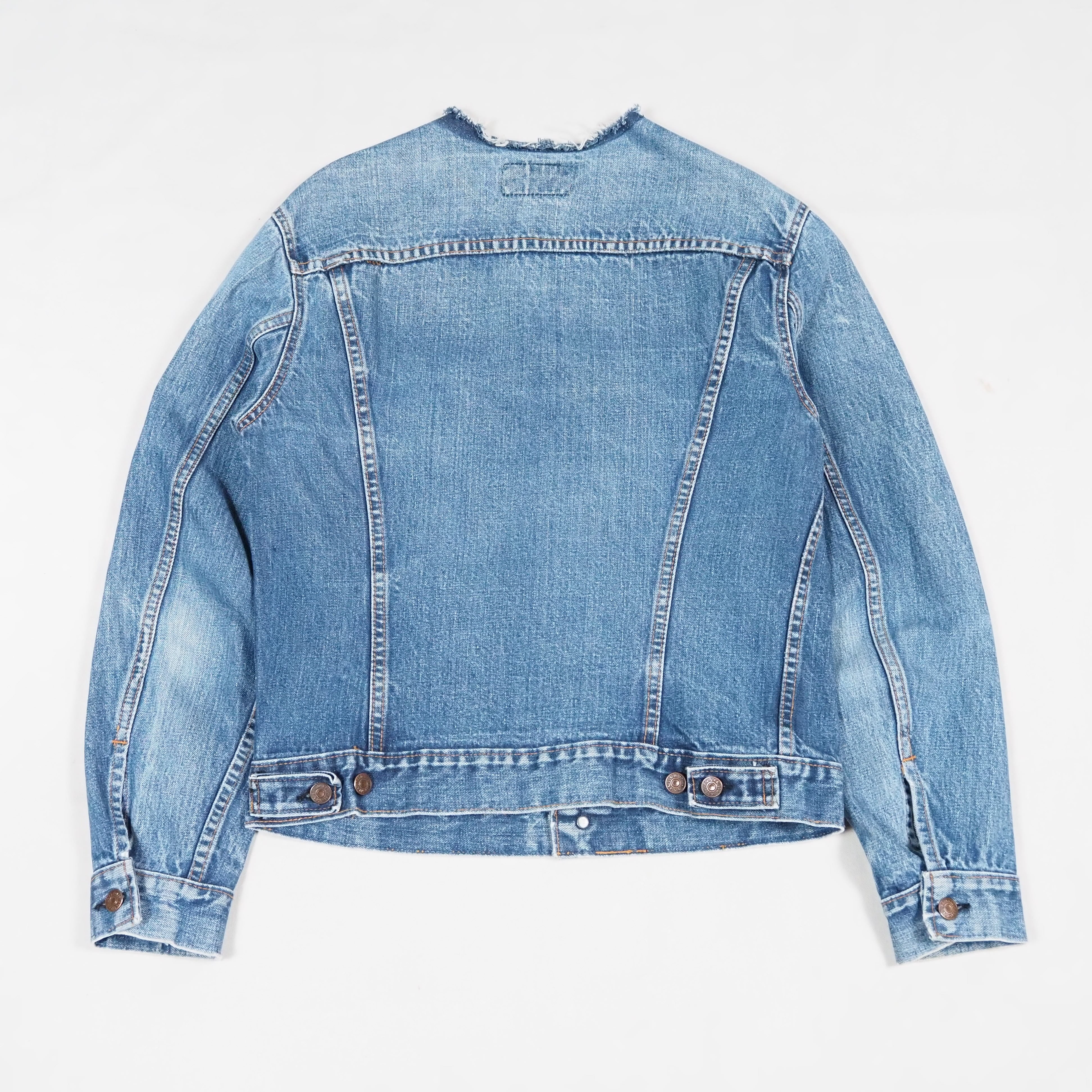 褪色、アタリ、袖口スレ、ところどころステッチの擦り切れがございます。