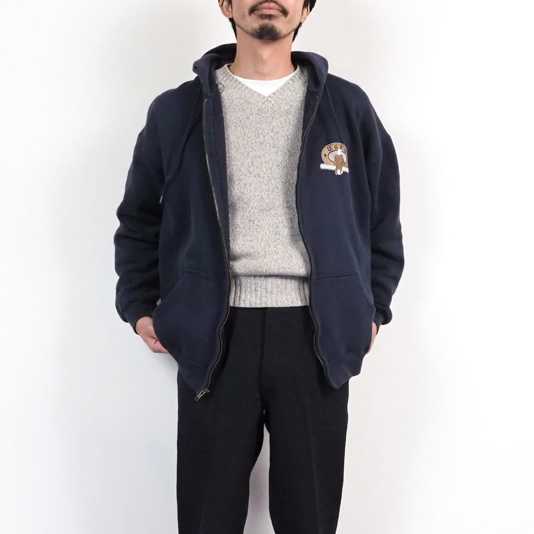 【BIG SIZE】90s USPS Zip Up Sweat Hoodie L/Navy DISCUS USA製 フルジップパーカー