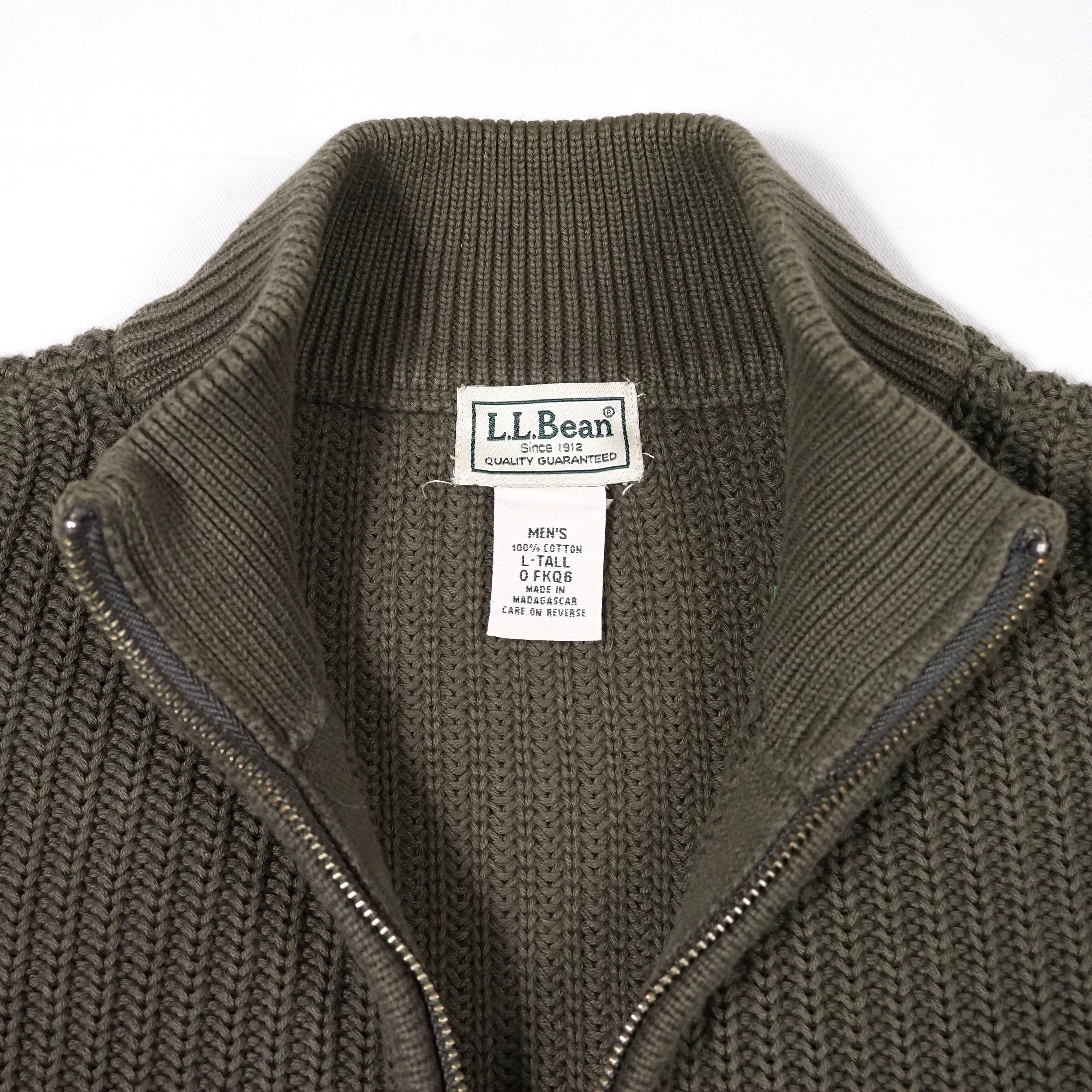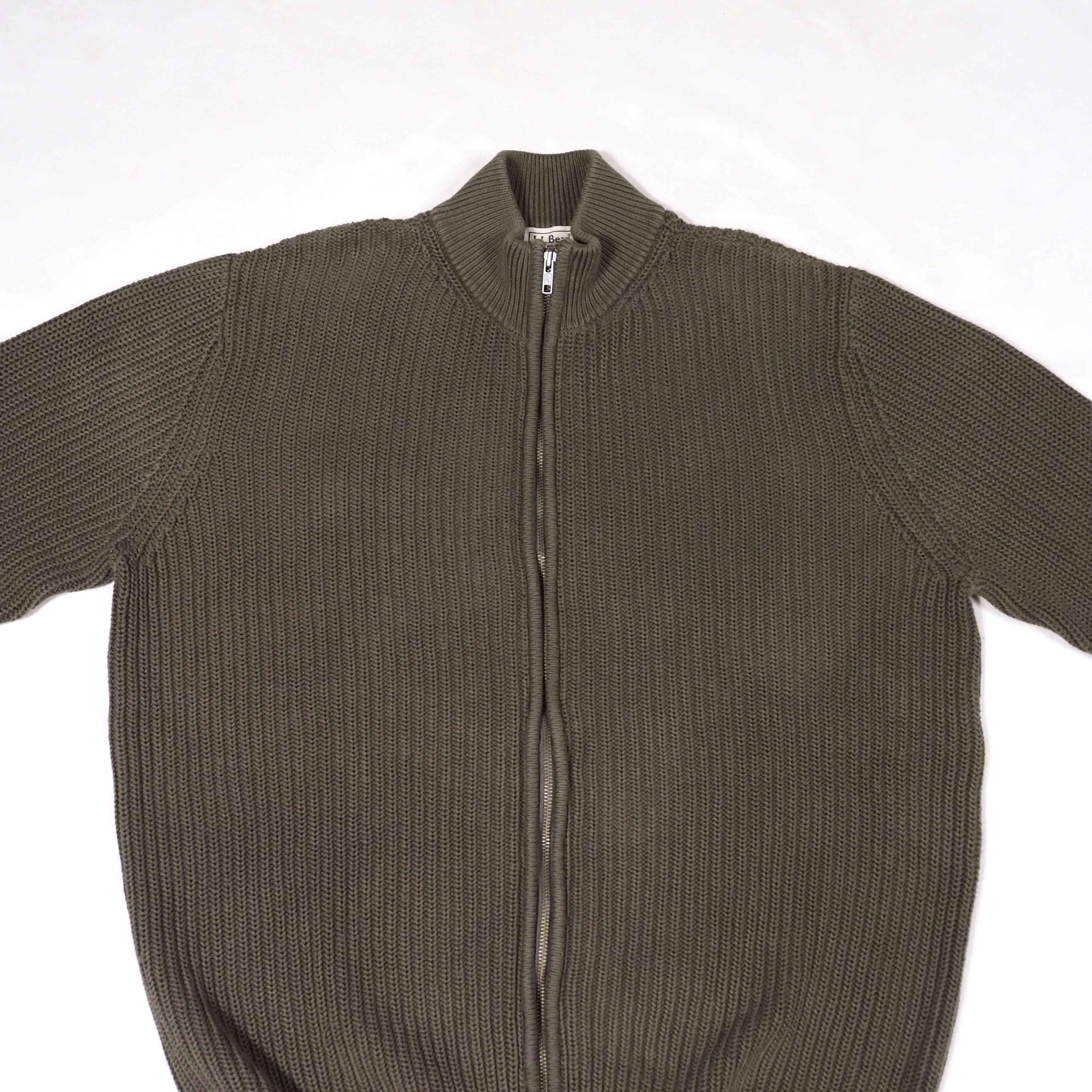 L.L.Bean Drivers Knit Sweater Cotton L/Olive Green エルエルビーン ドライバーズニット