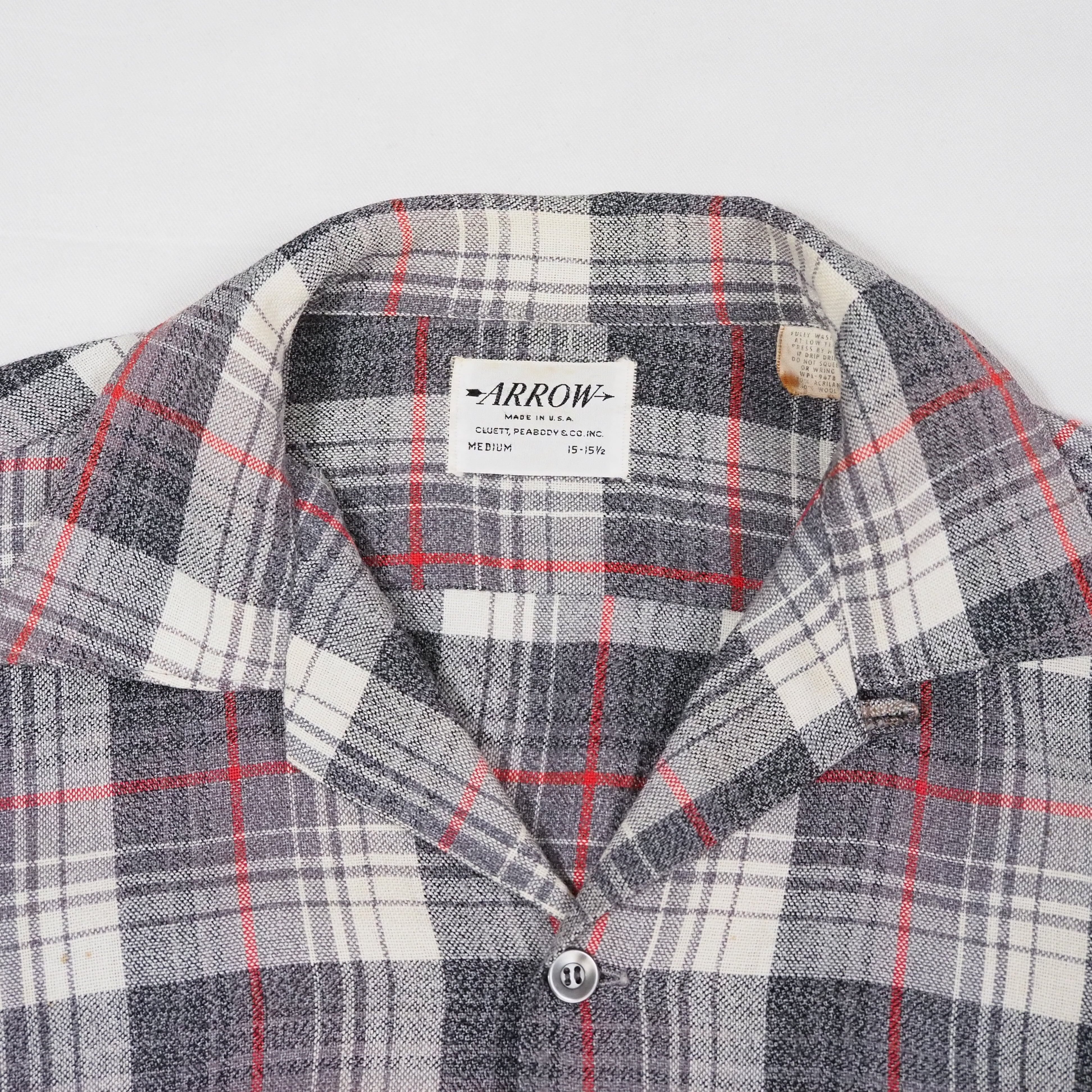 60s ARROW Plaid Open Collar Shirt M オープンカラーシャツ グレー