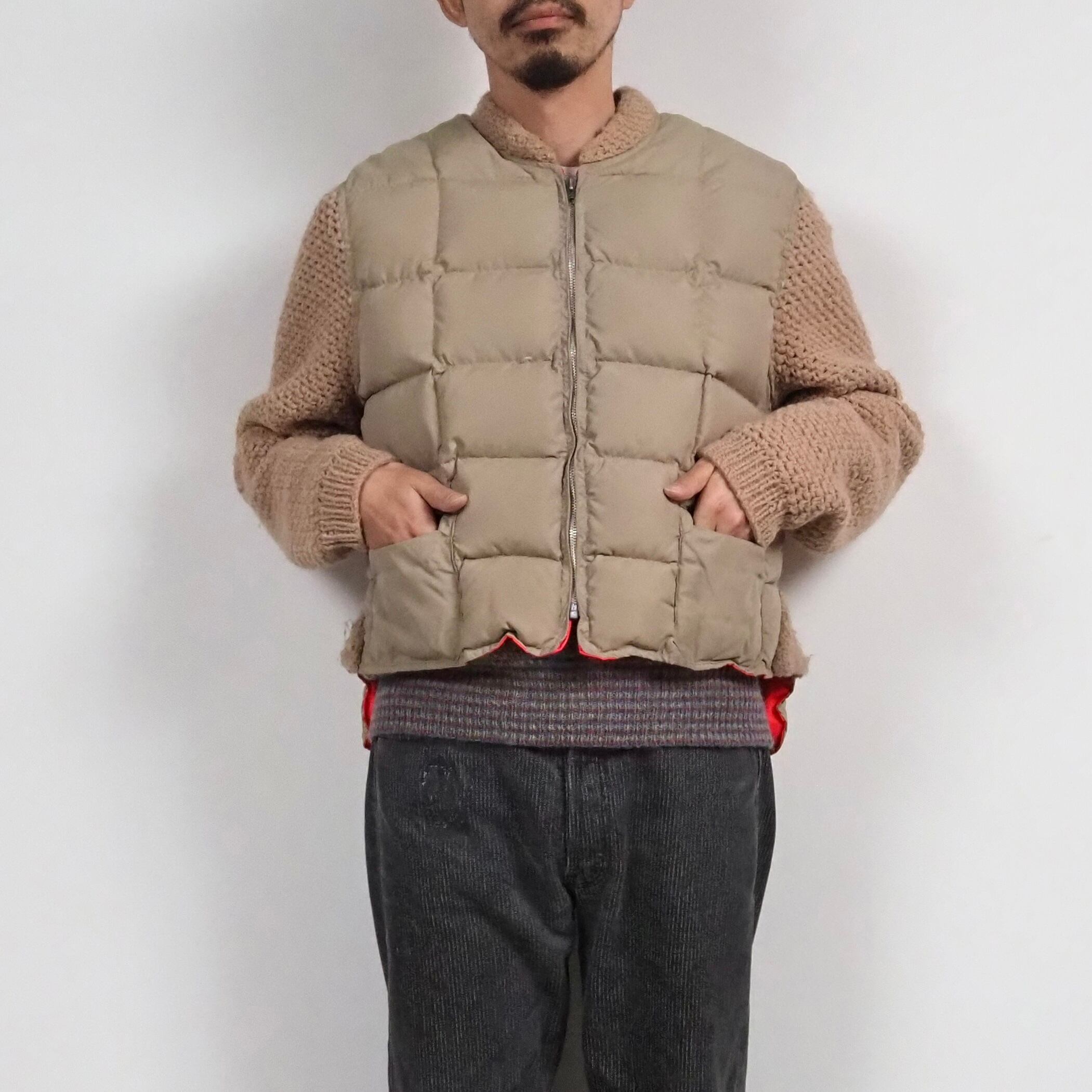〜70's CANADA製のリバーシブルダウンベストにニットスリーブを縫い付けた当時のホームメイド品。