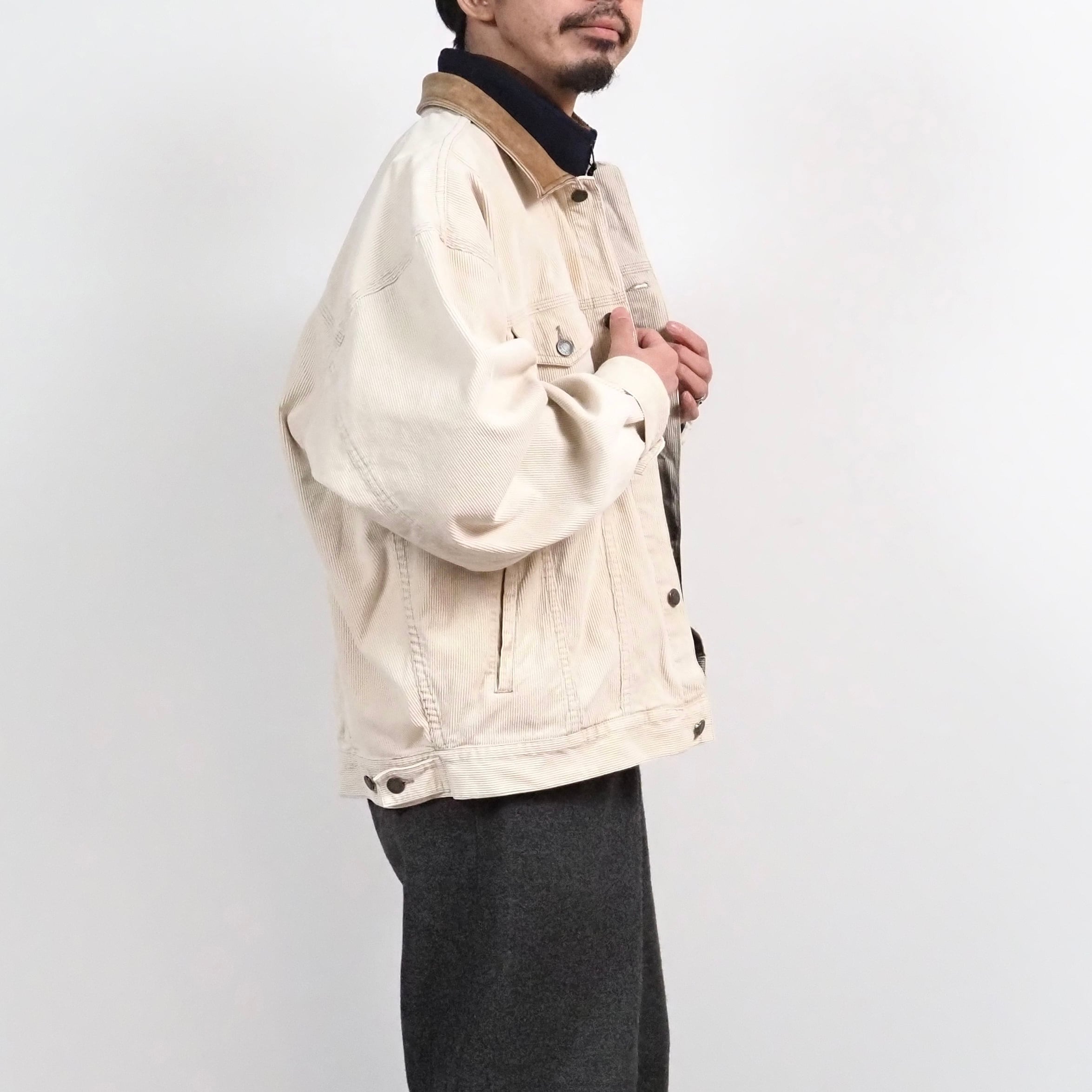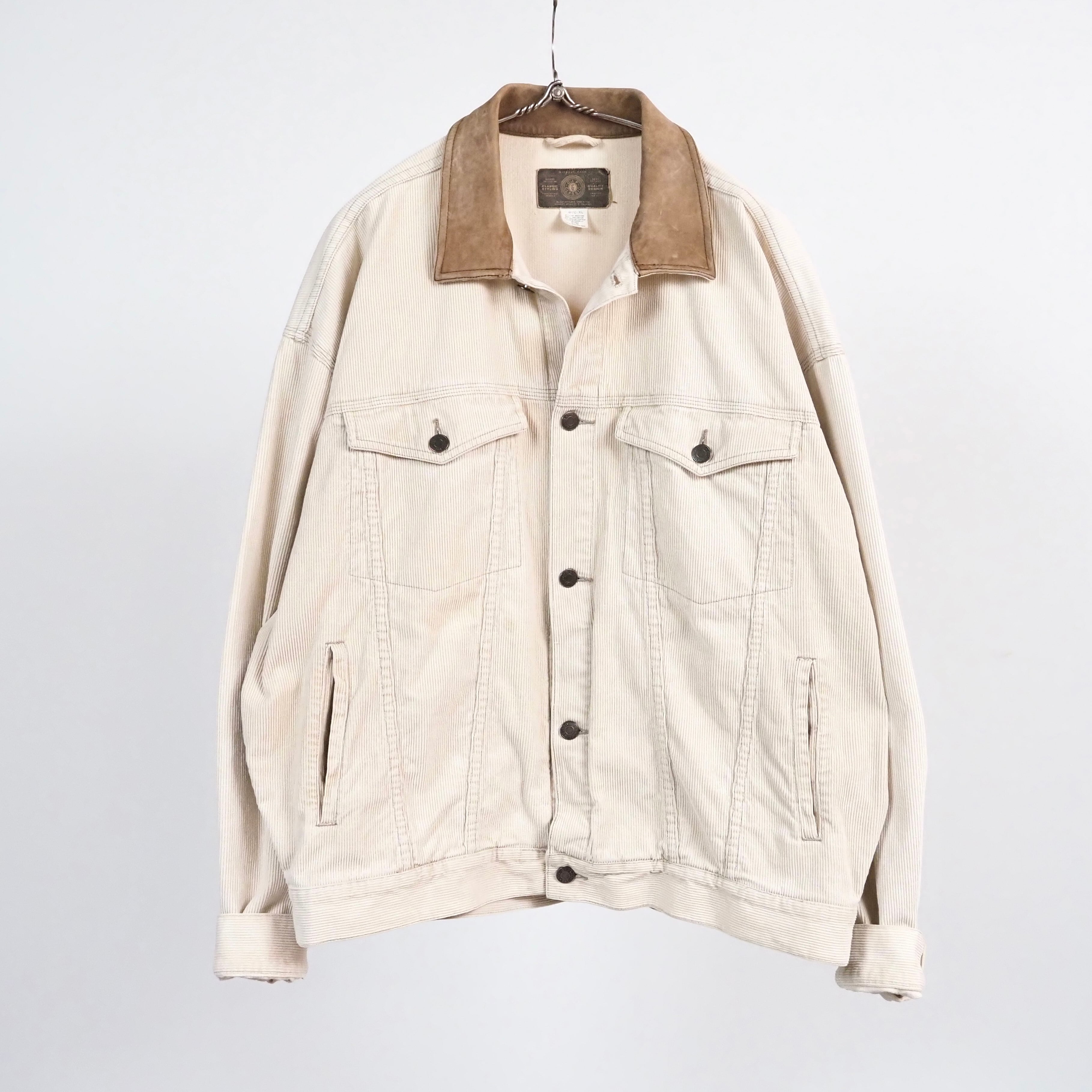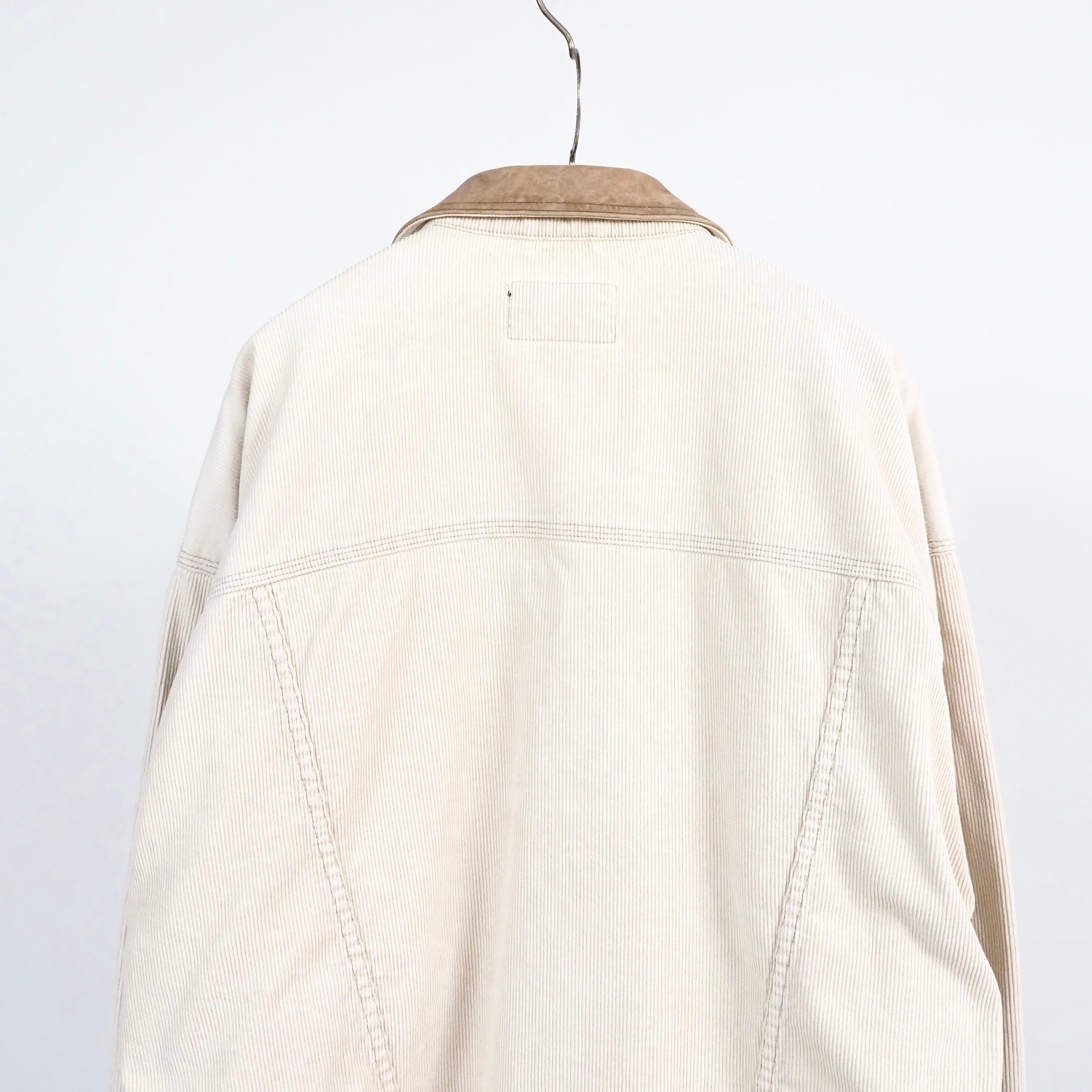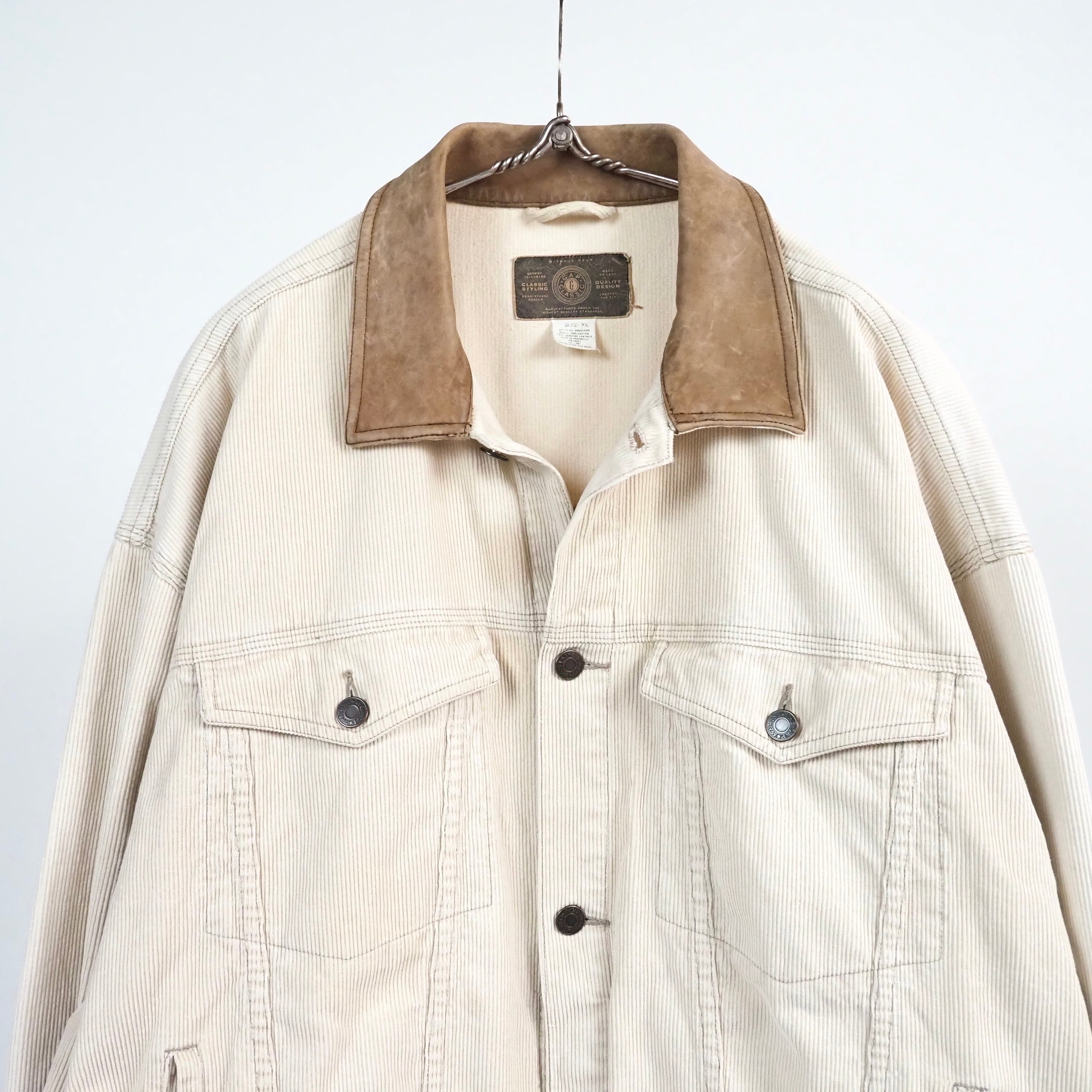 90s GAP CLASSICS Leather Collar Corduroy Jacket XL Ivory オールドギャップ 襟レザー コーデュロイジャケット