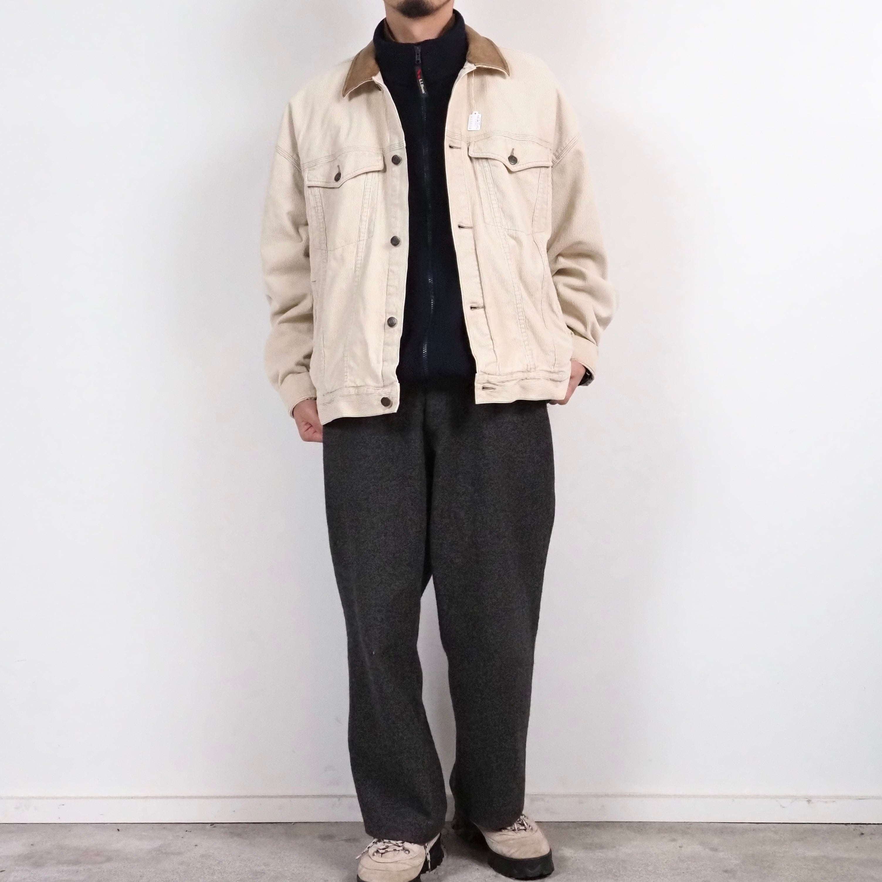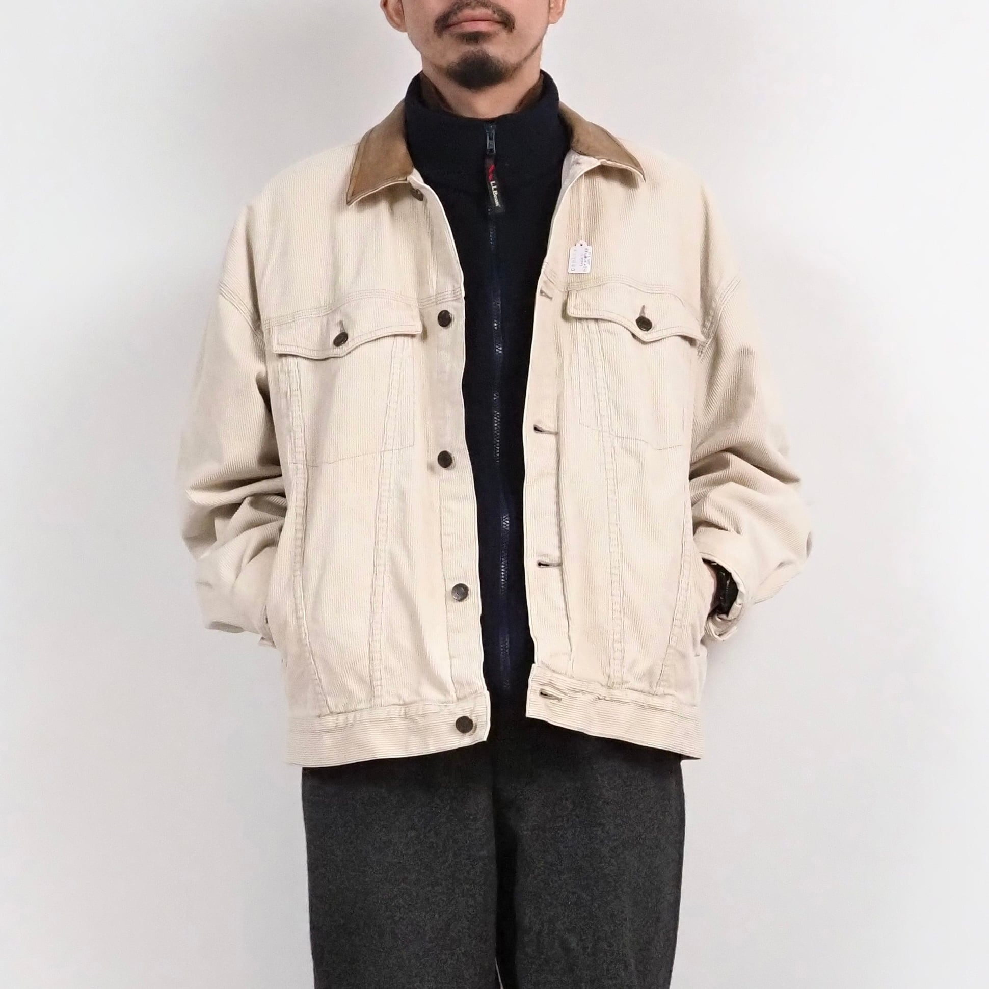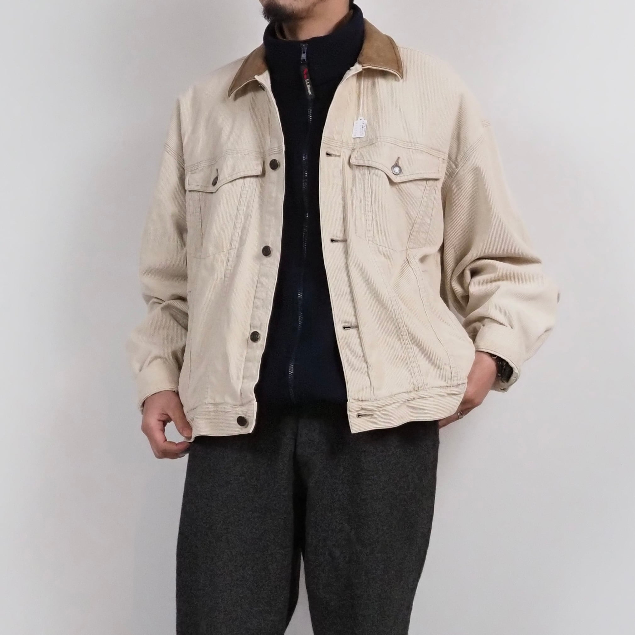 90s GAP CLASSICS Leather Collar Corduroy Jacket XL Ivory オールドギャップ 襟レザー コーデュロイジャケット