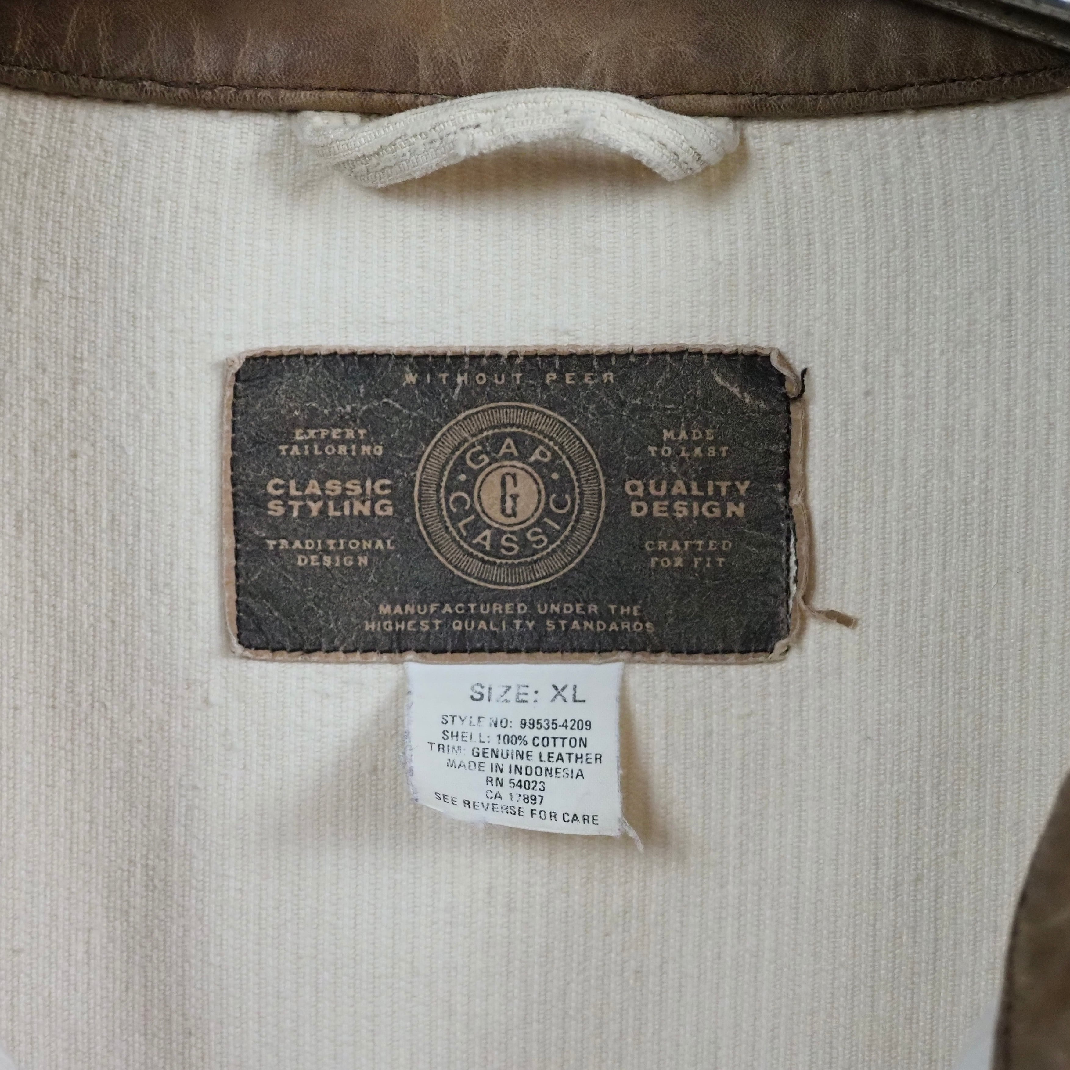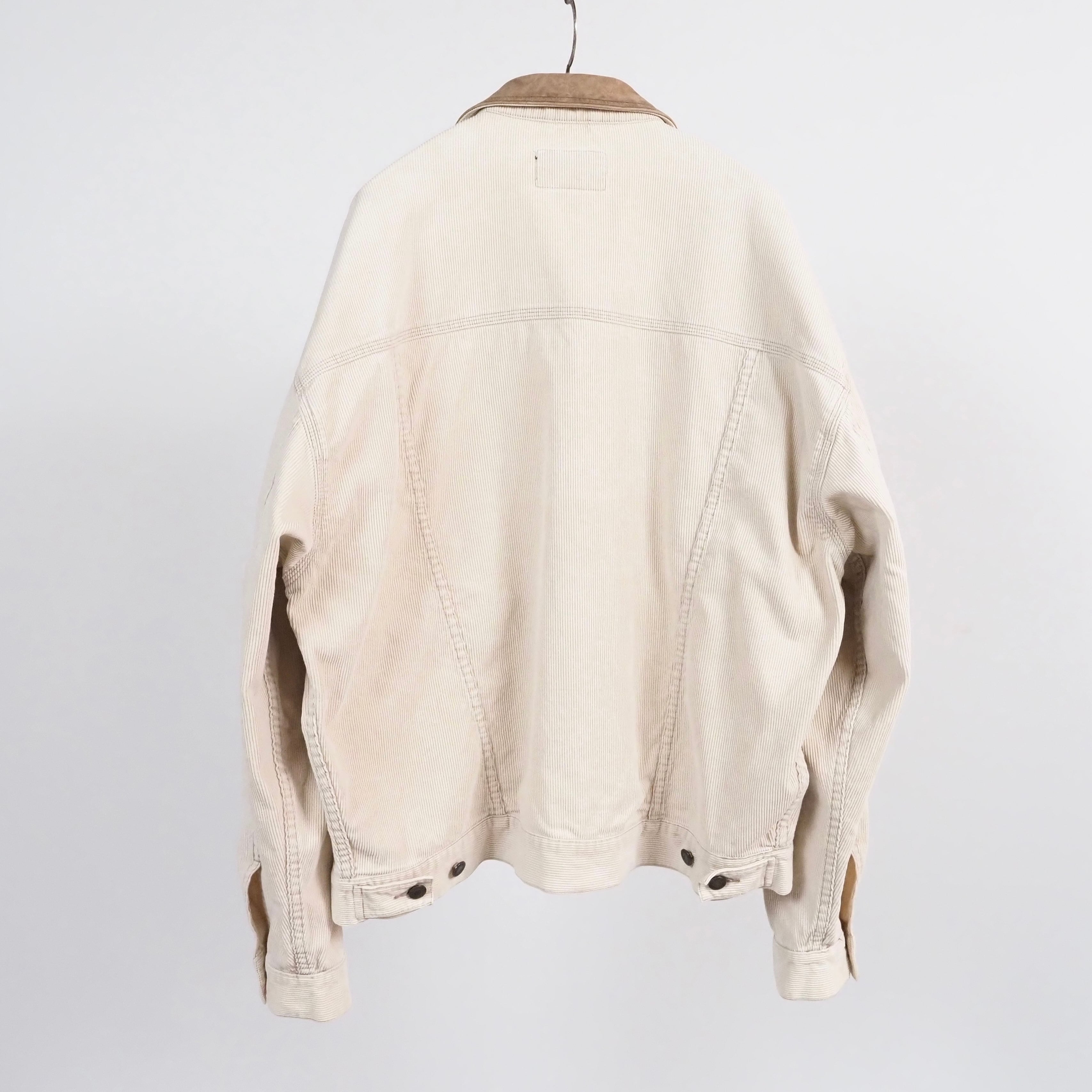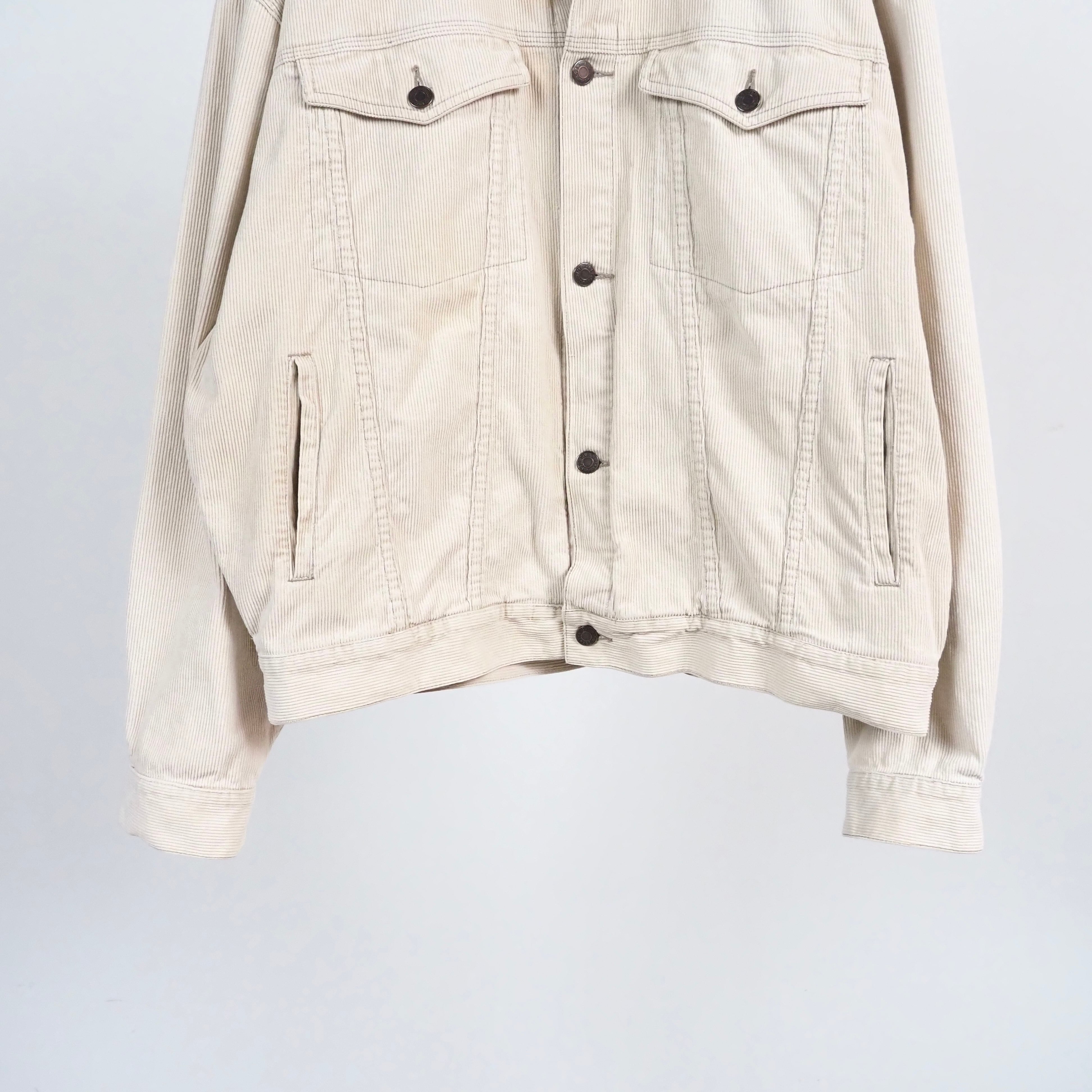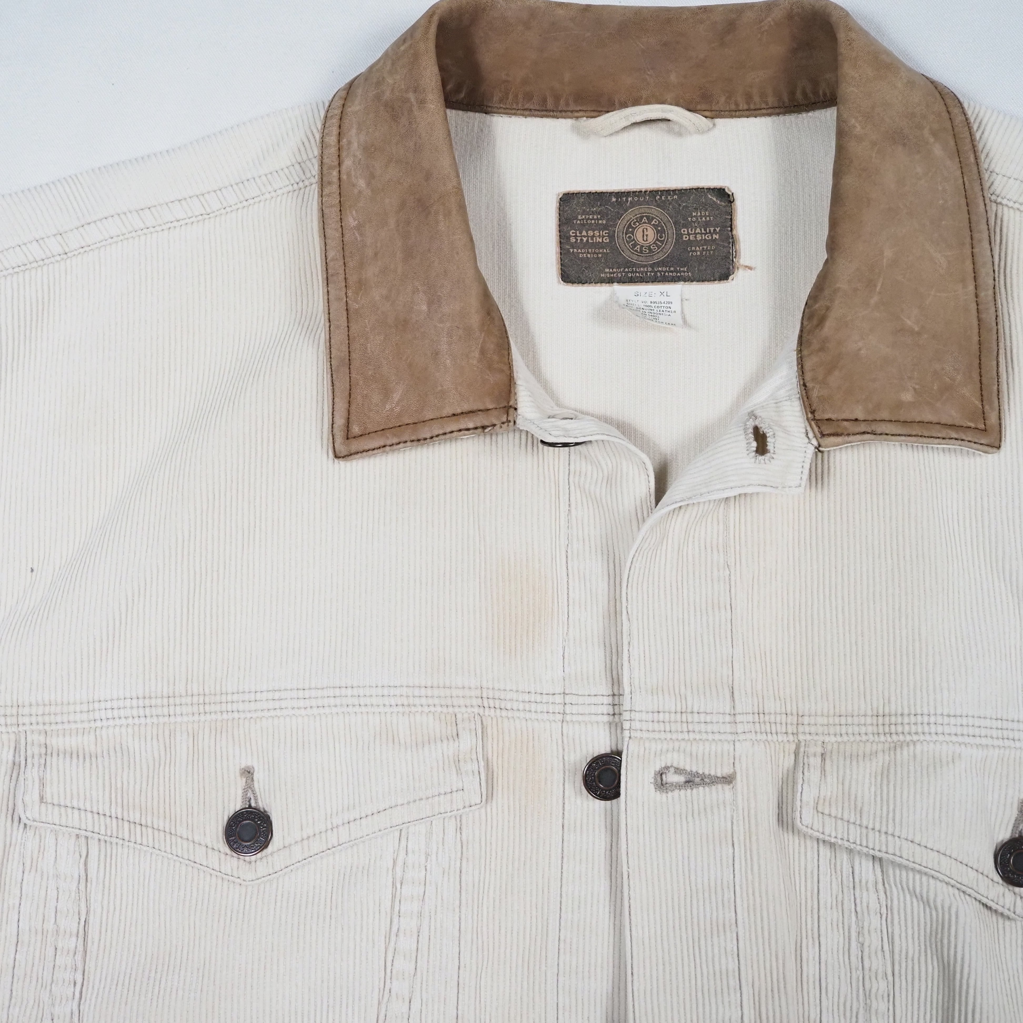 90s GAP CLASSICS Leather Collar Corduroy Jacket XL Ivory オールドギャップ 襟レザー コーデュロイジャケット
