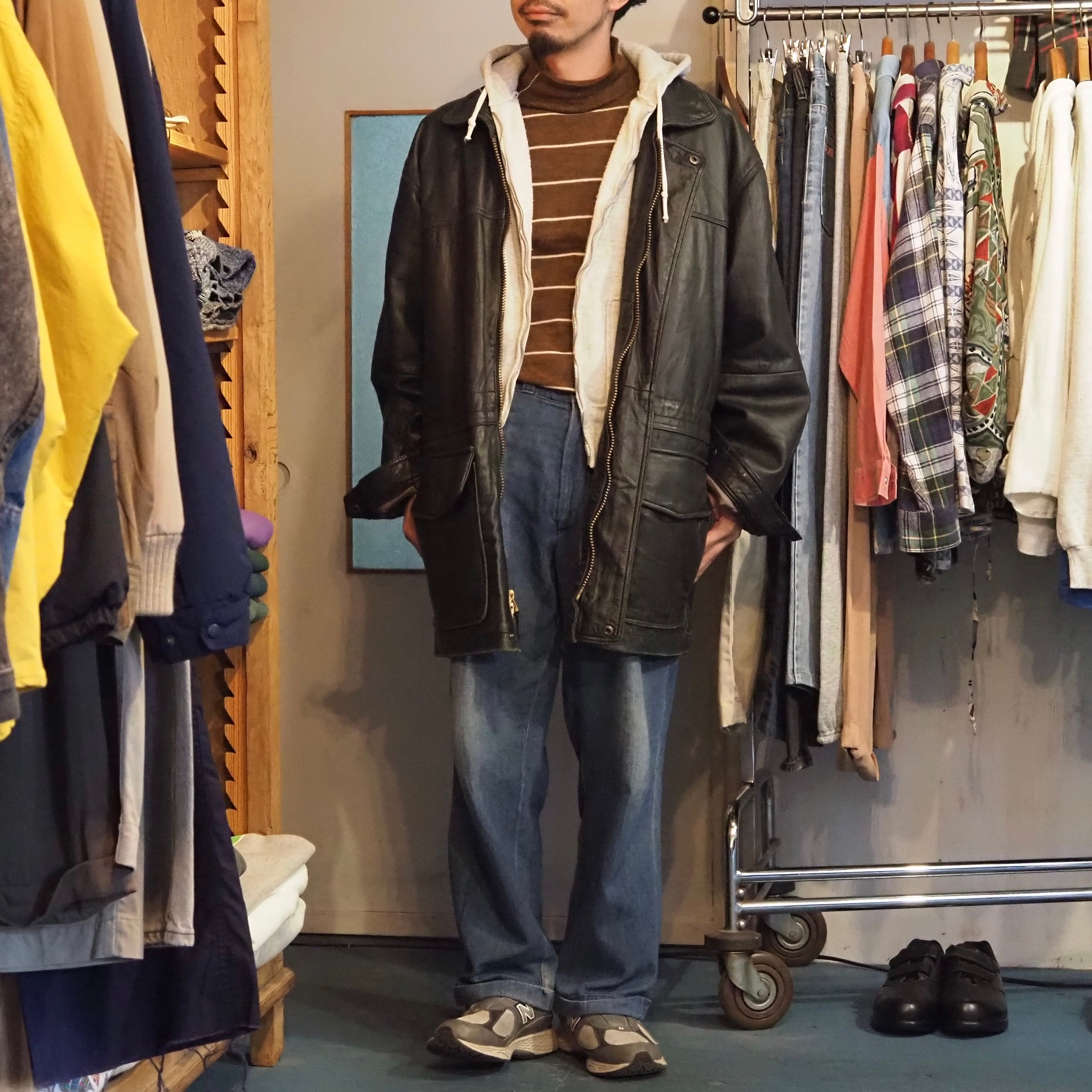 もっちりとしたレザーは柔らかくきれいに肩がドロップするので、ロング丈のレザーとしてはかなり着やすいと思います。