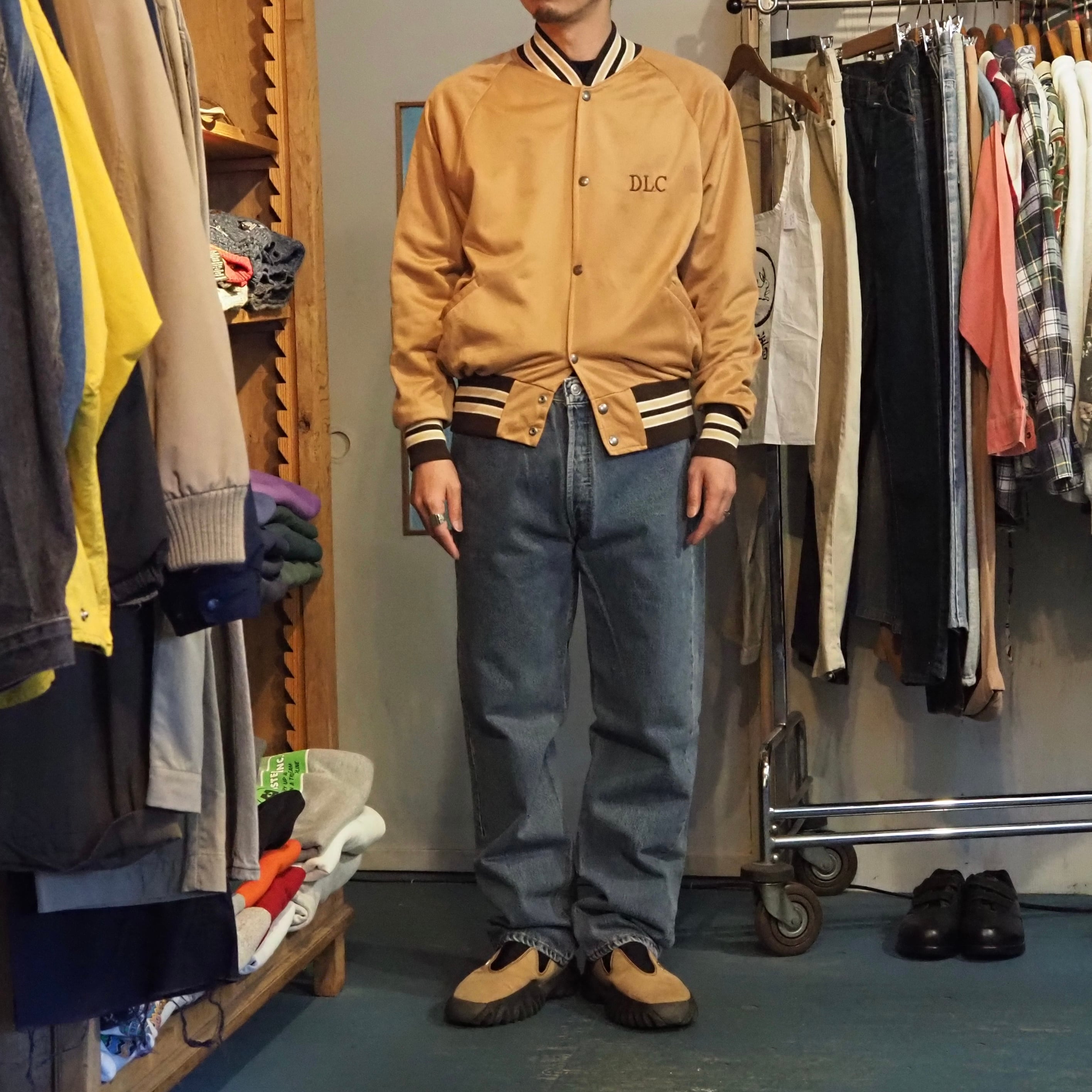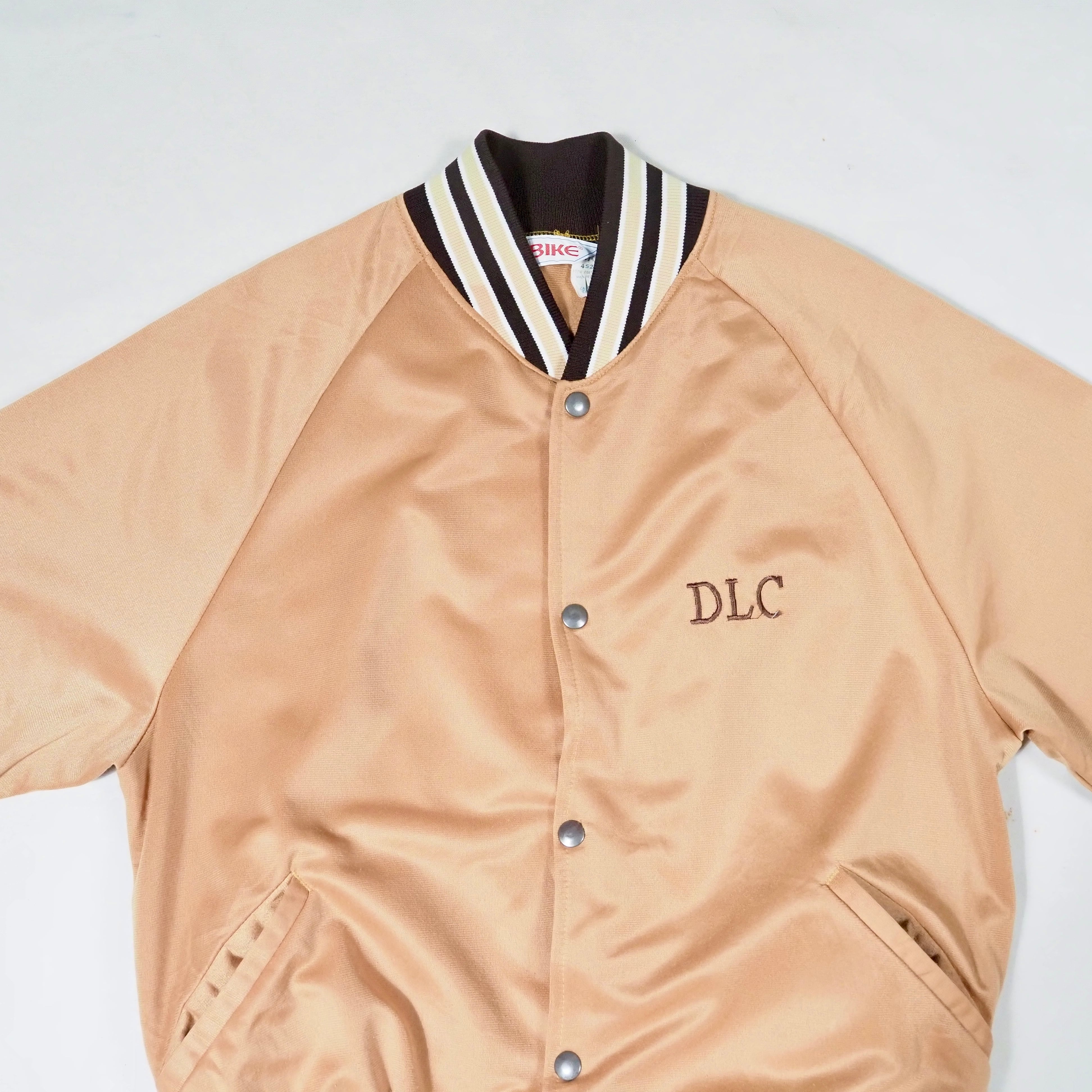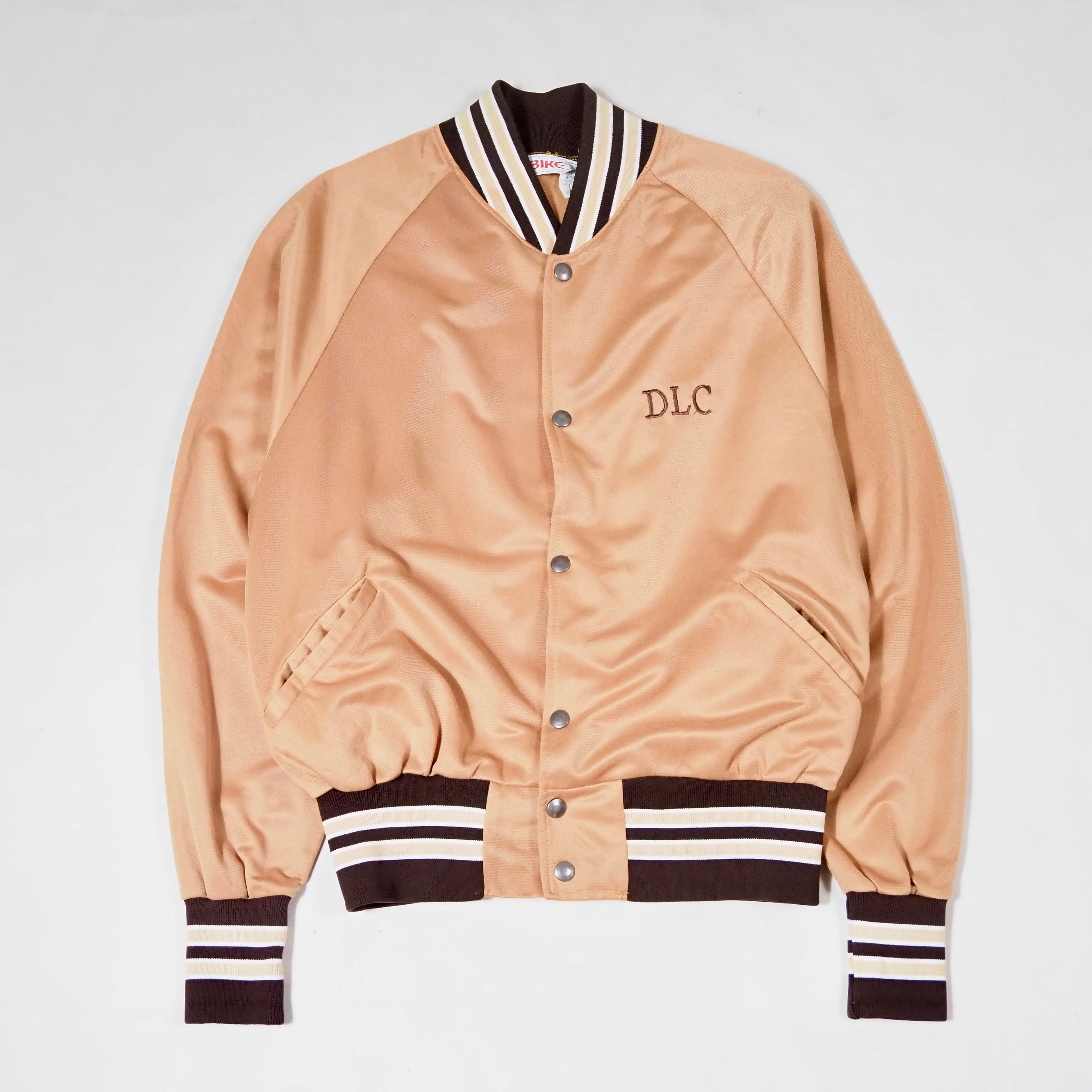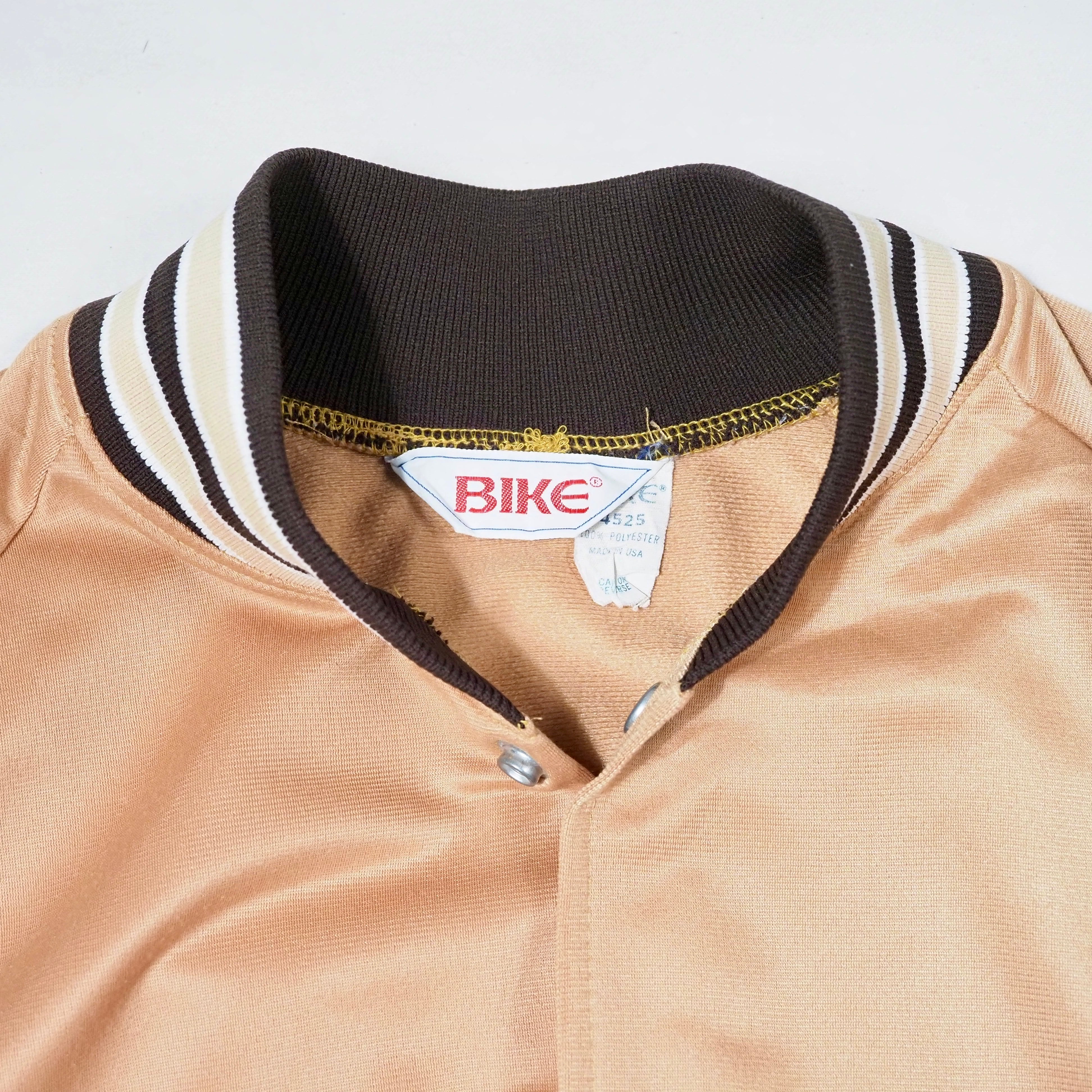 80’s BIKE Polyester Varsity Jacket L USA製 Gold×Brown スタジャン サテン