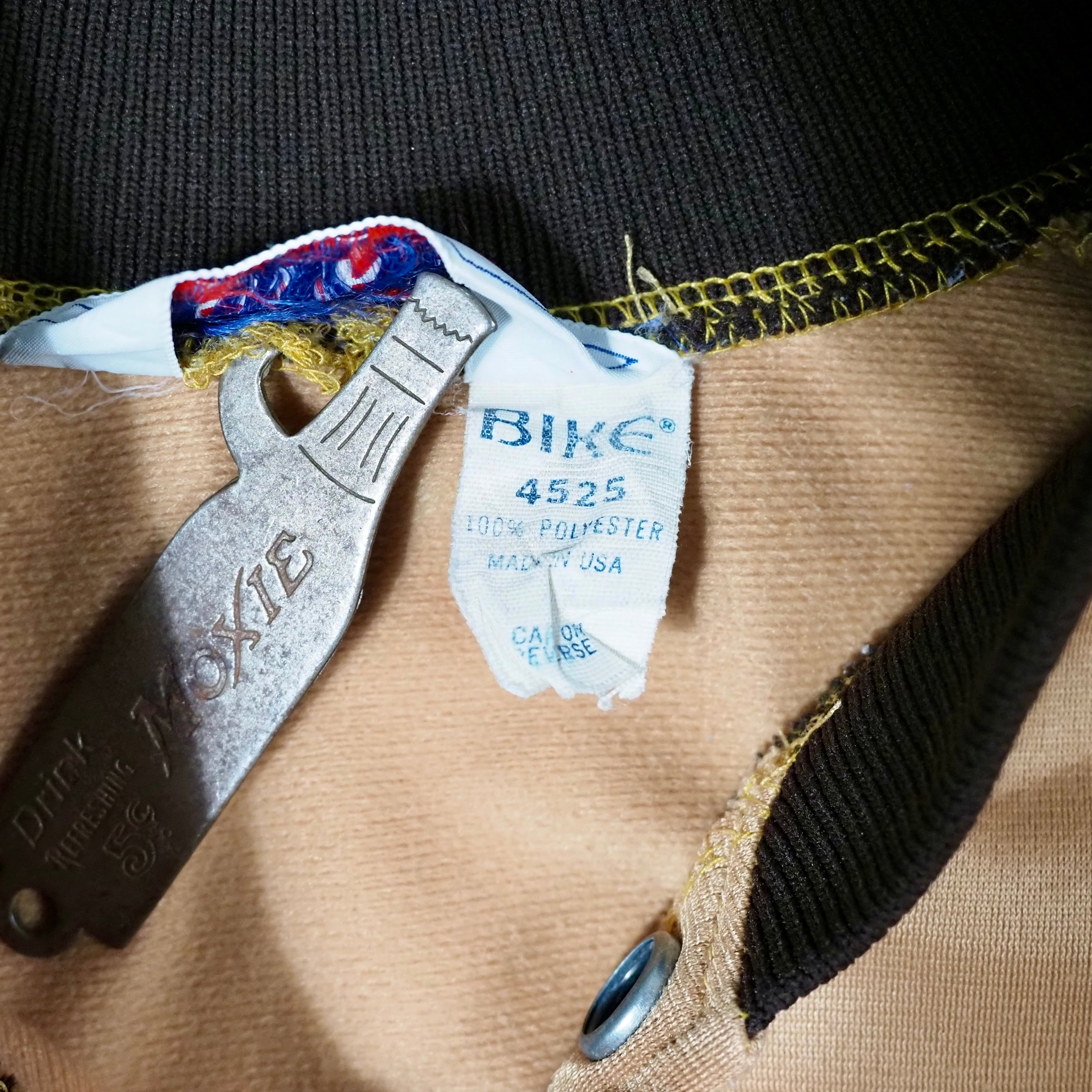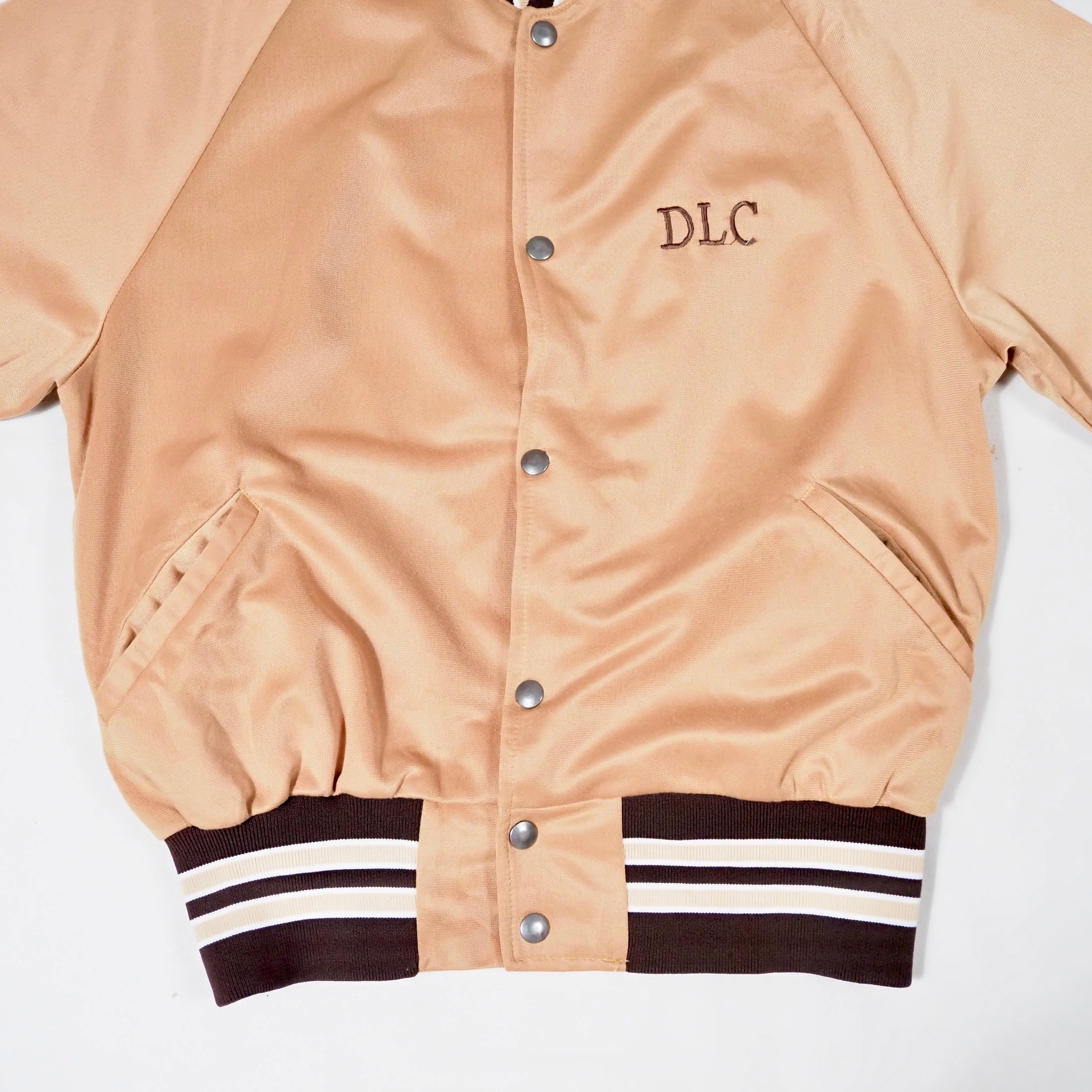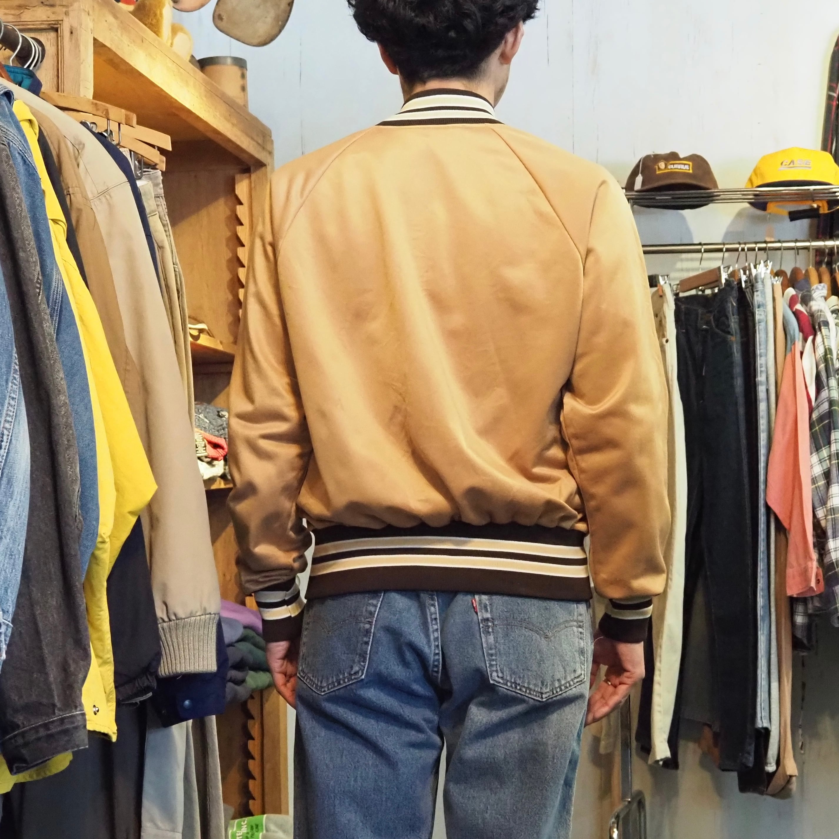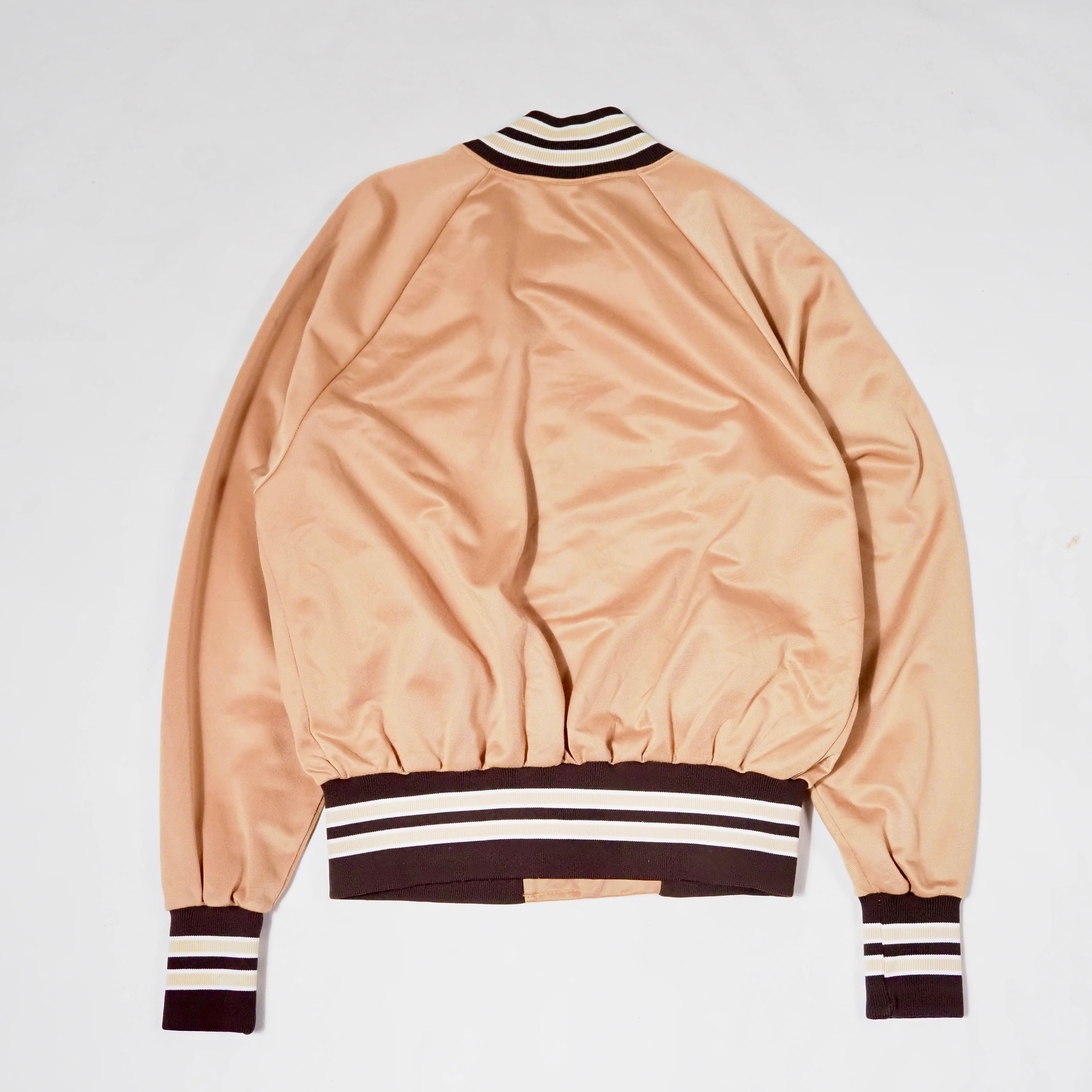 80’s BIKE Polyester Varsity Jacket L USA製 Gold×Brown スタジャン サテン