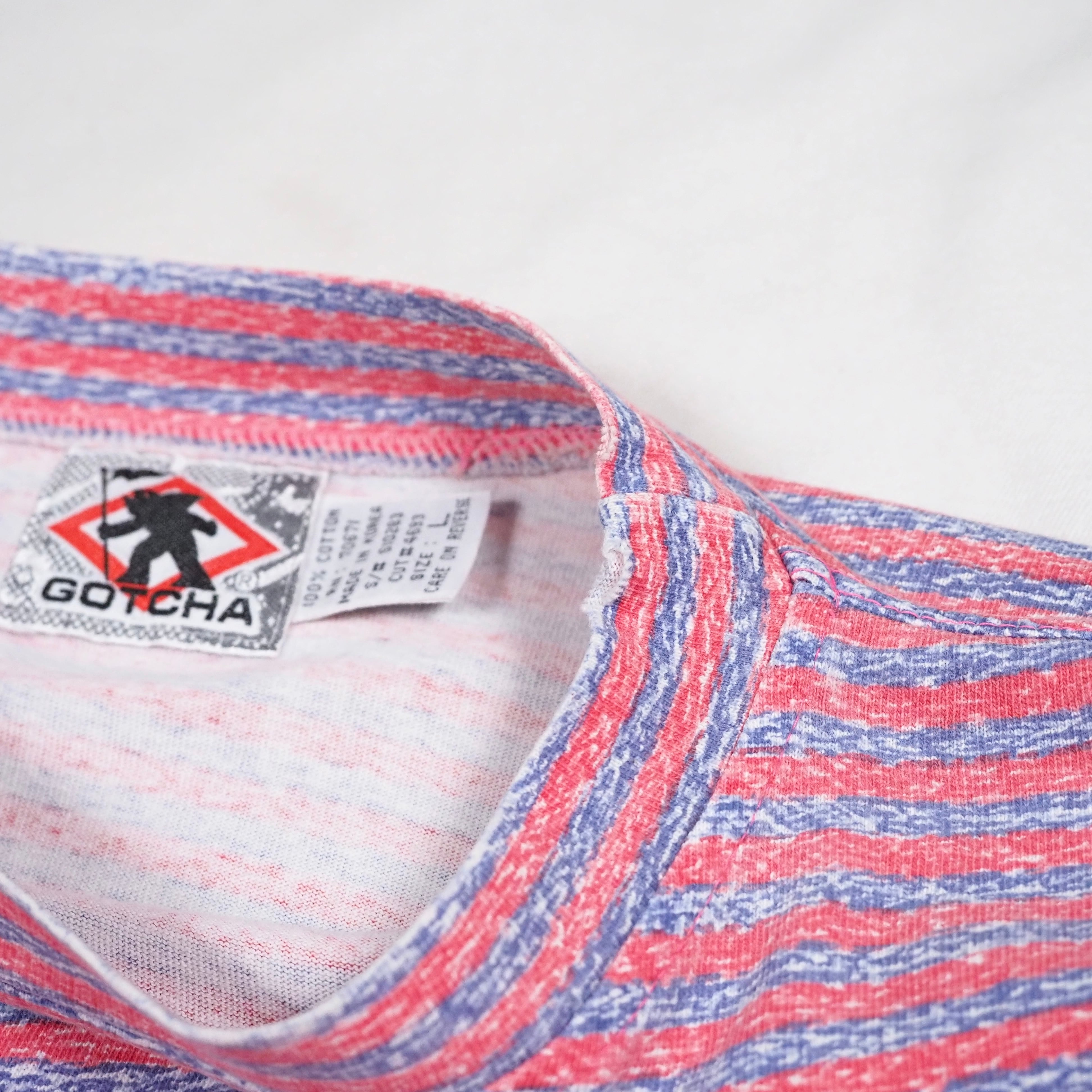 90’s Gotcha Print Border Long Sleeve T-Shirt L ガチャ ボーダー 長袖Tシャツ