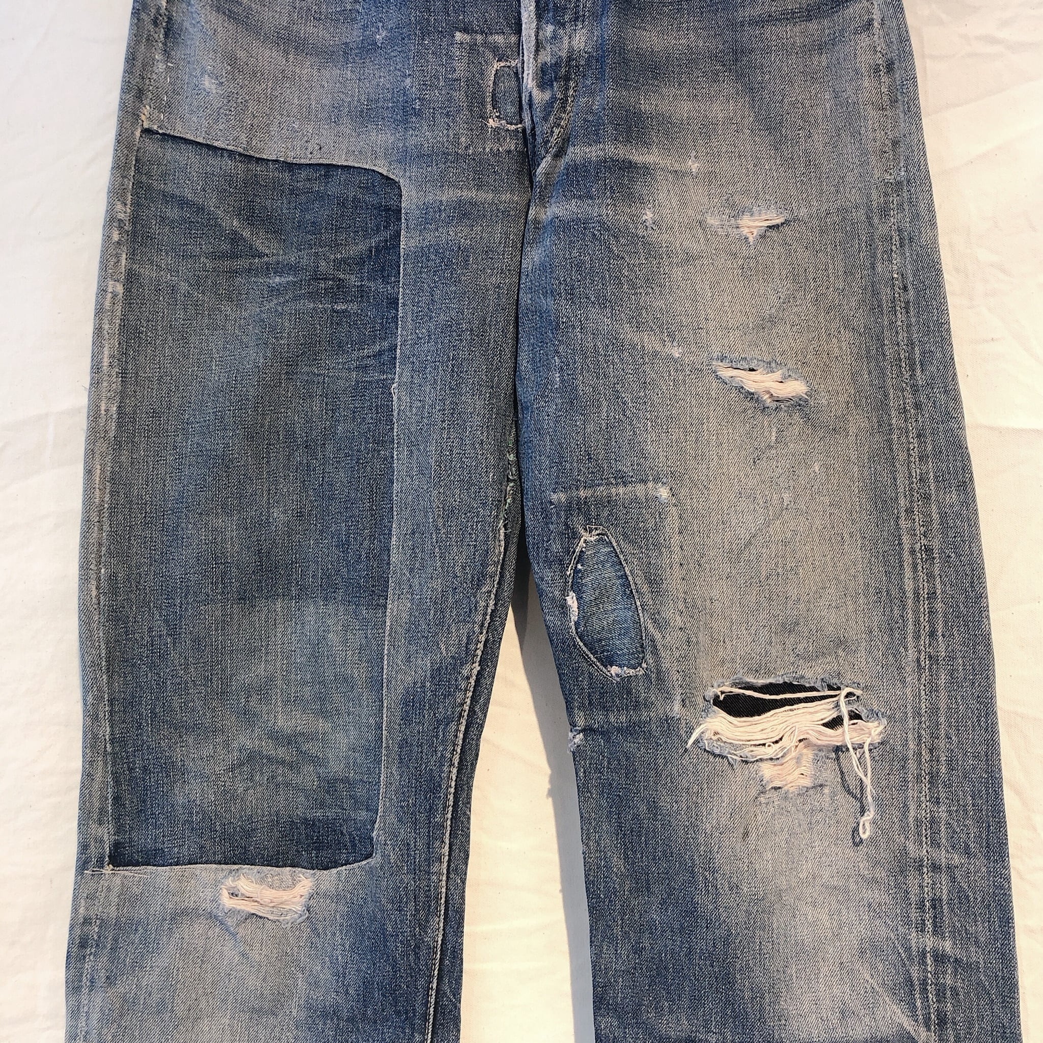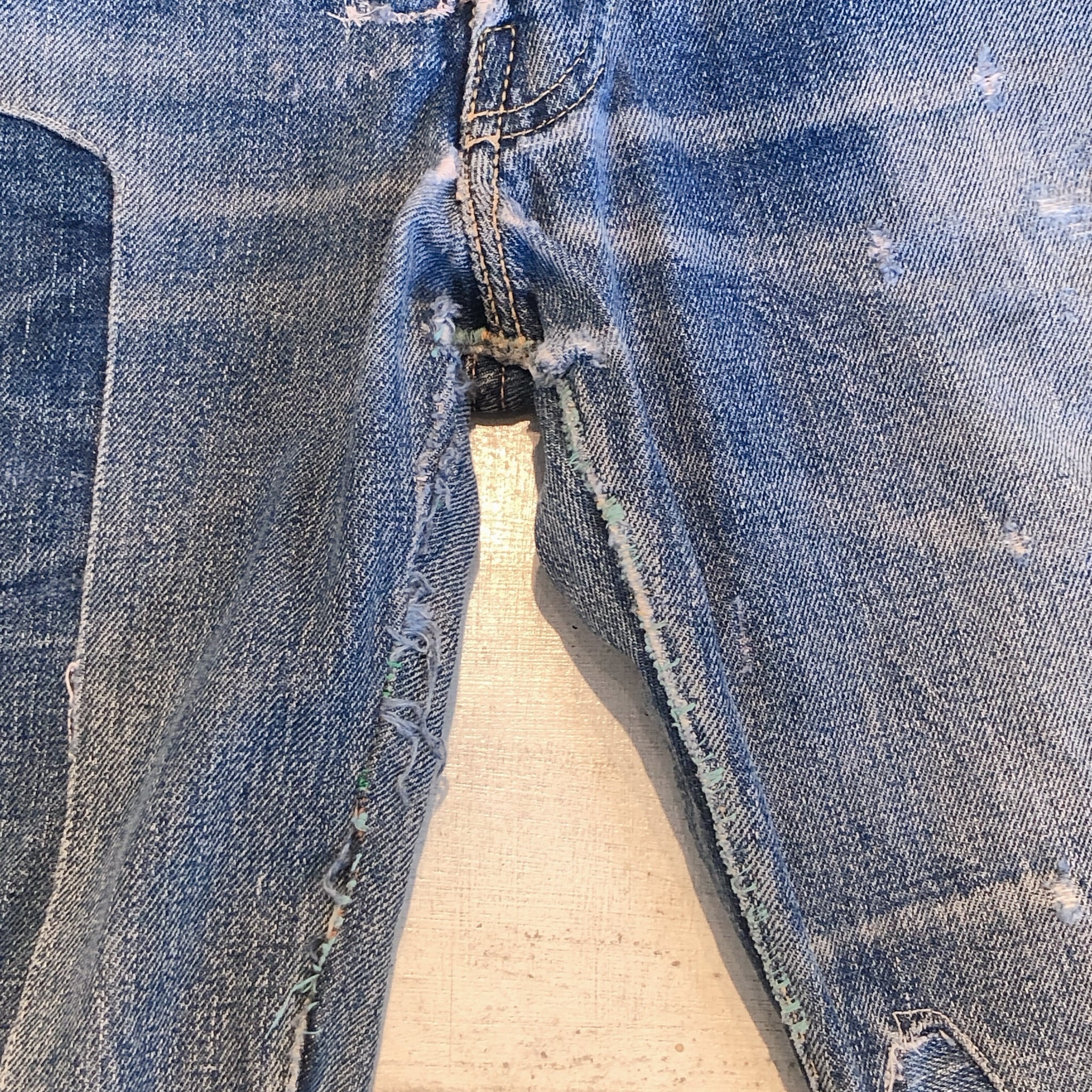 膝部分などは購入時からヴィンテージデニムでリペアされていた状態ですので当時のリペアでお尻部分などは直し屋ベルベルジンさんにてリペアして頂きました。