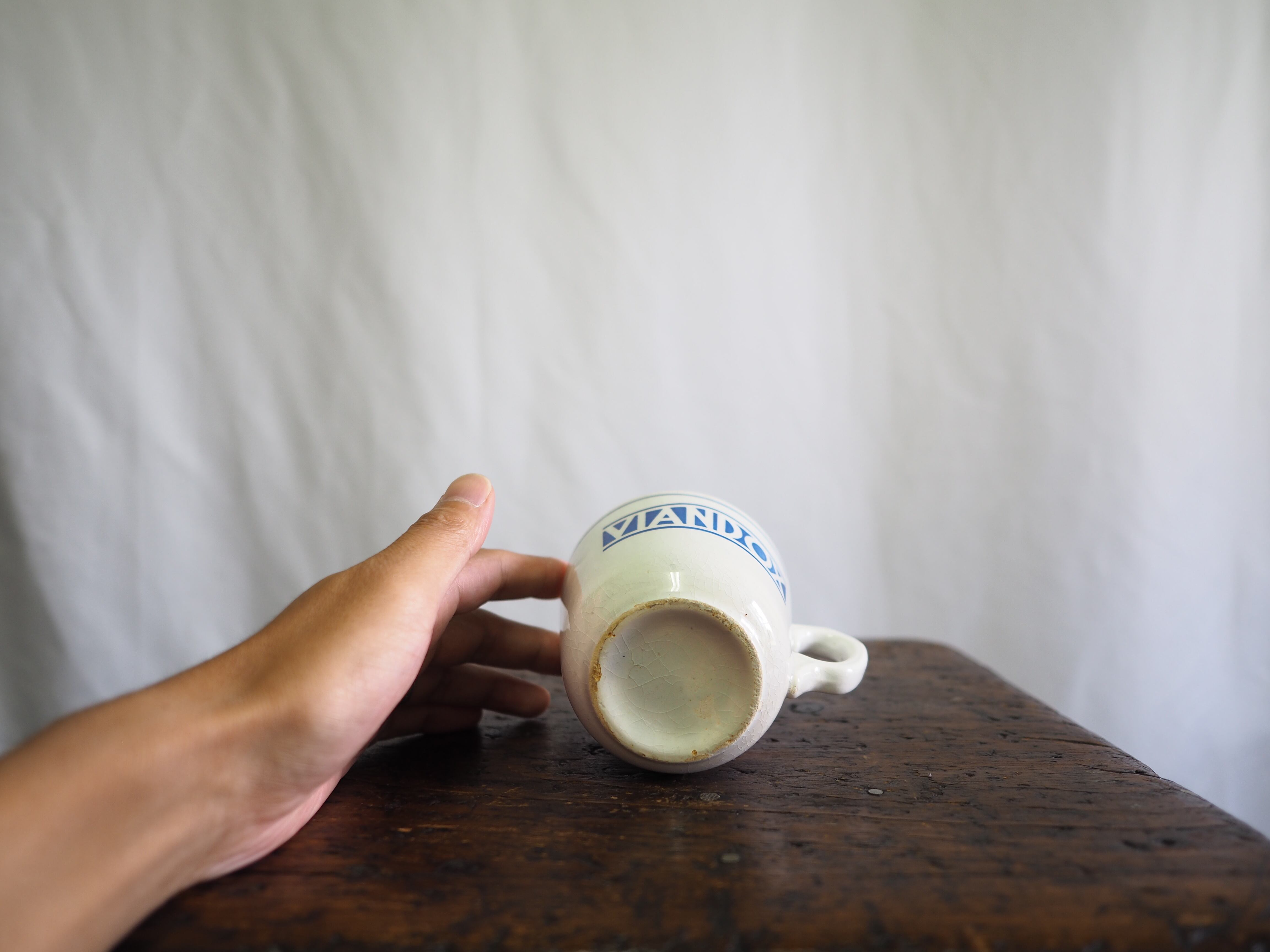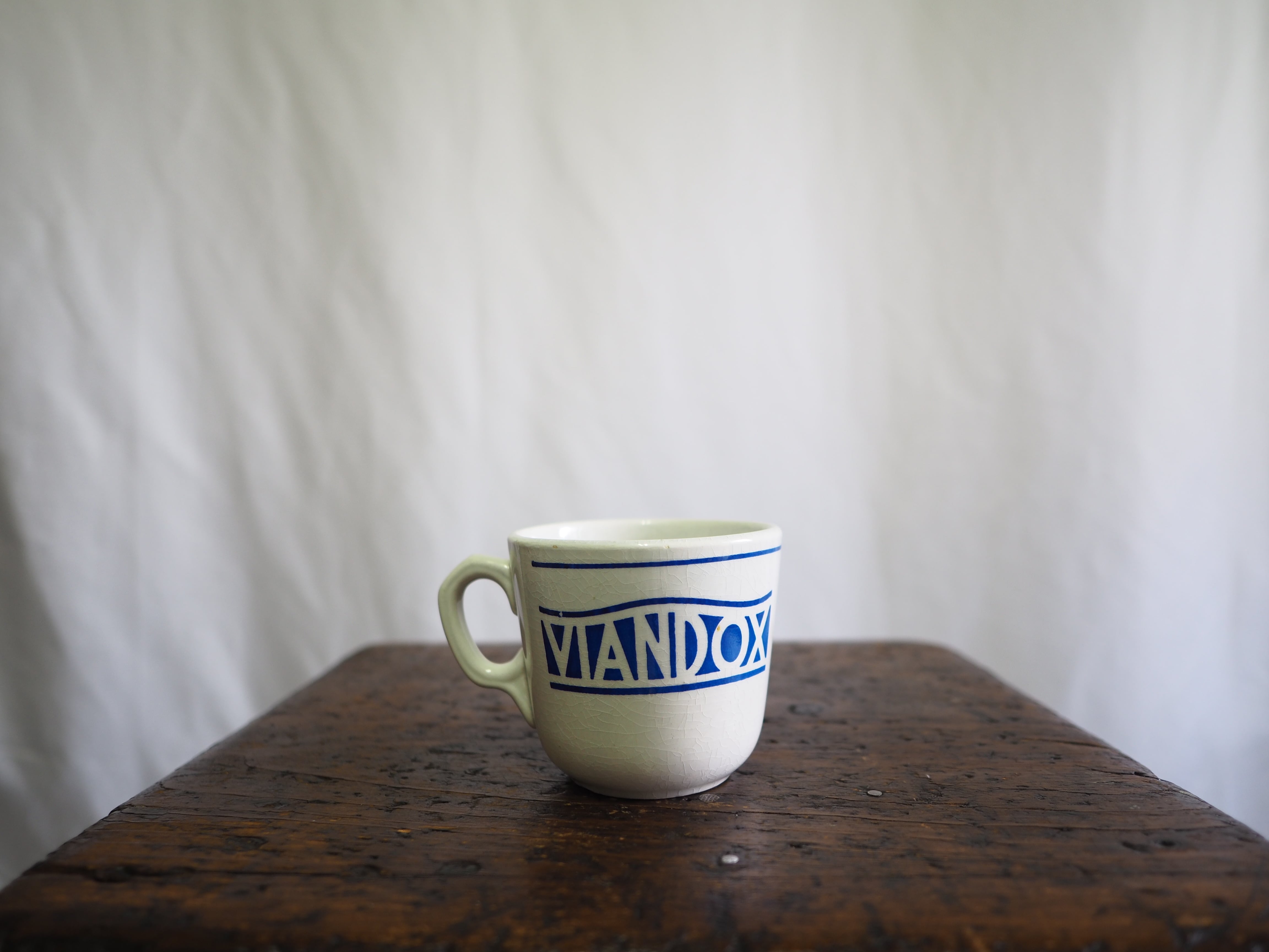 VIANDOX はフランスのブイヨンメーカーでいずれも白地にブルーのレタリングでこちら以外にも数タイプのマグカップがあります。