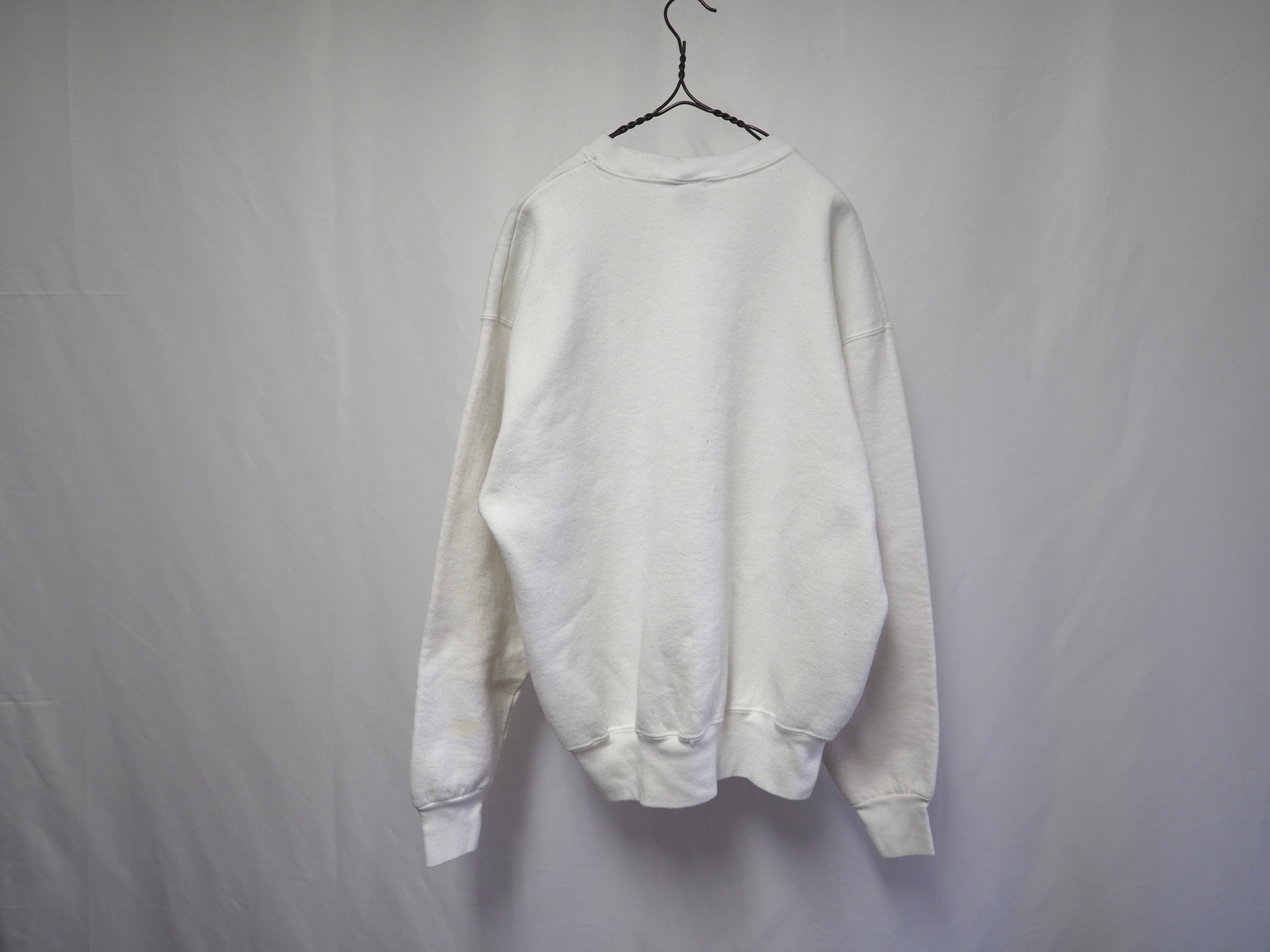 左袖口付近、下腹部にシミ、ボディー全体に毛羽立ちがあり着用感が目立ちます。