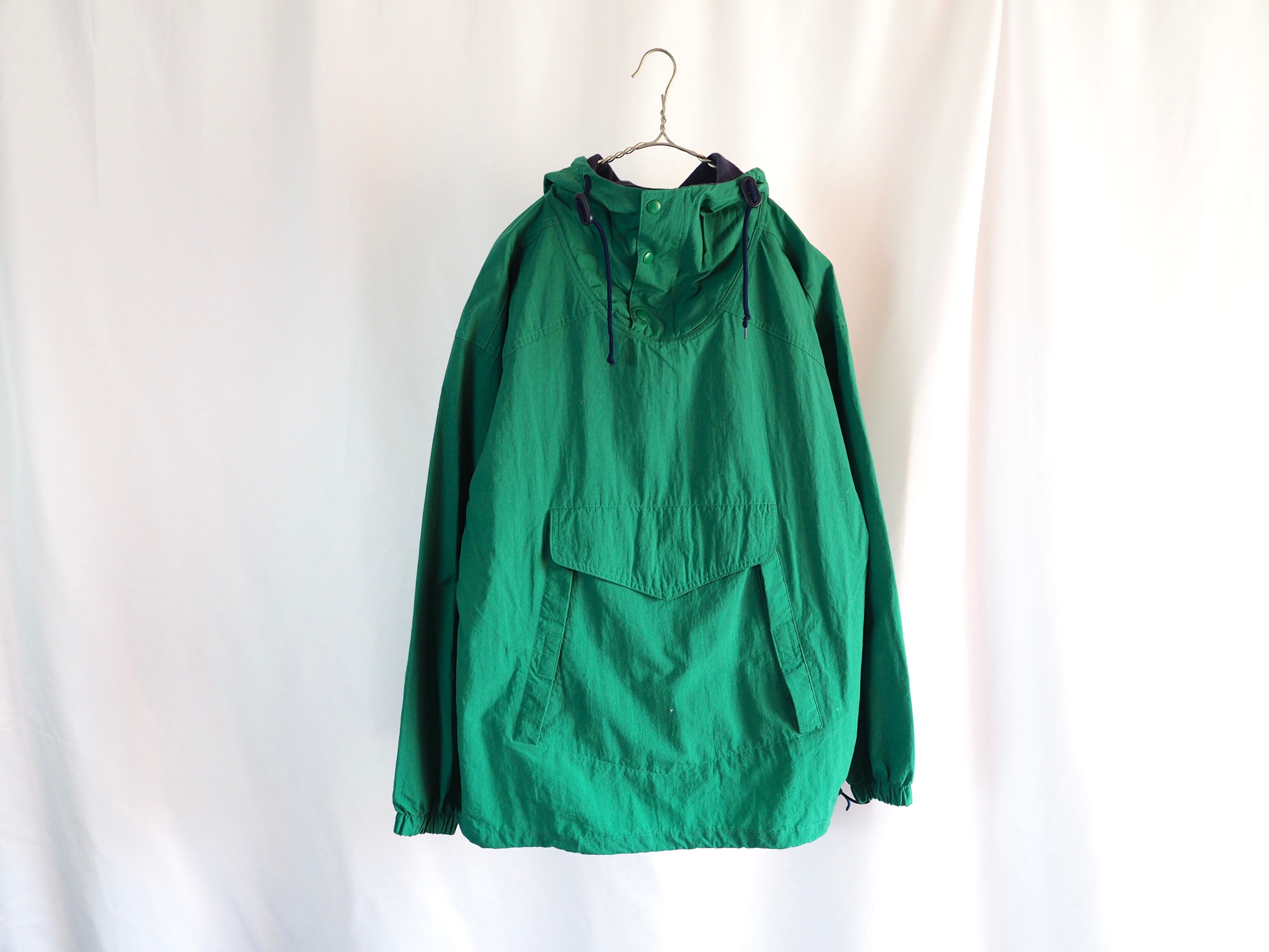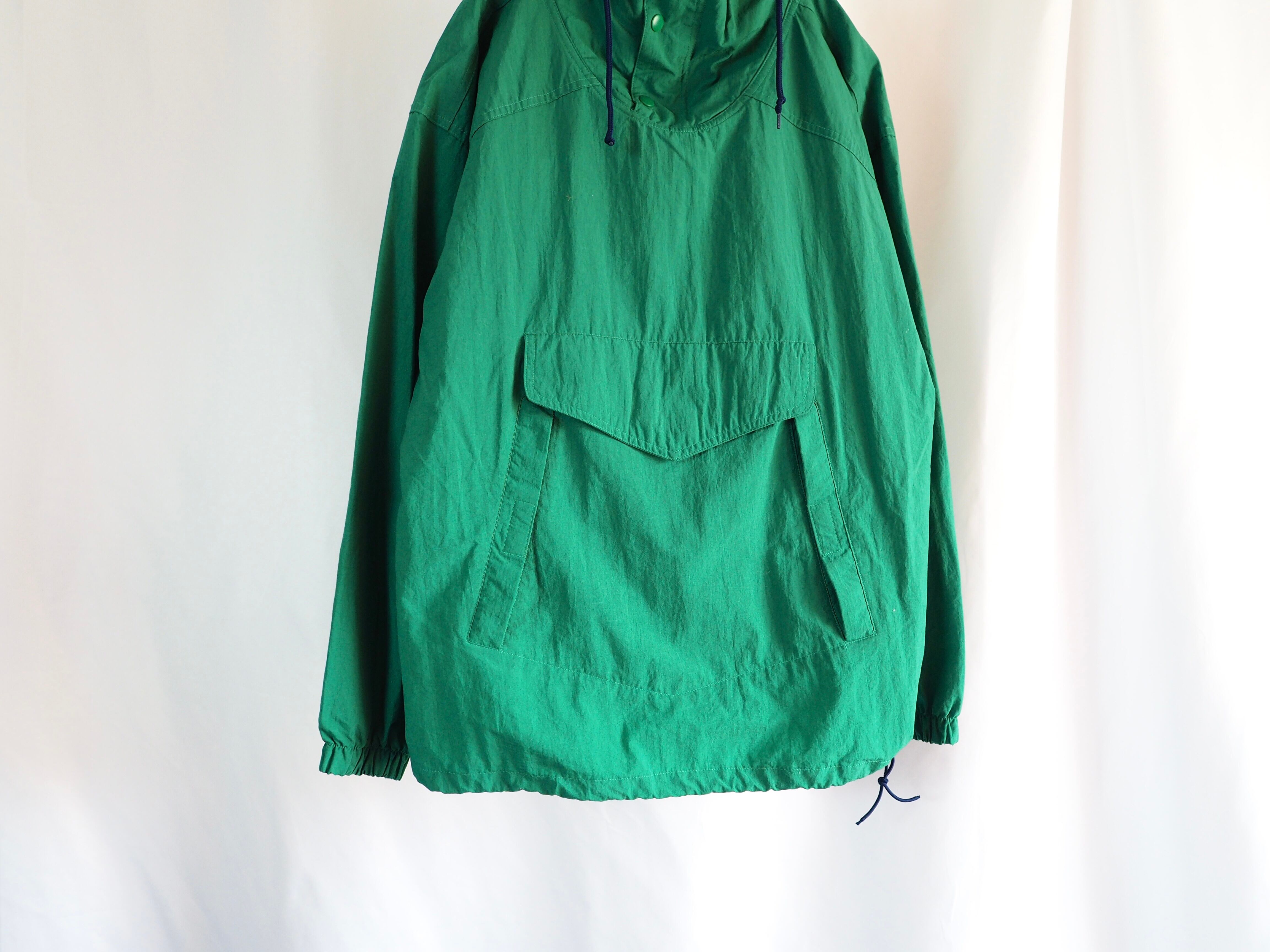 鮮やかなグリーンカラーのナイロンアノラックパーカーです。