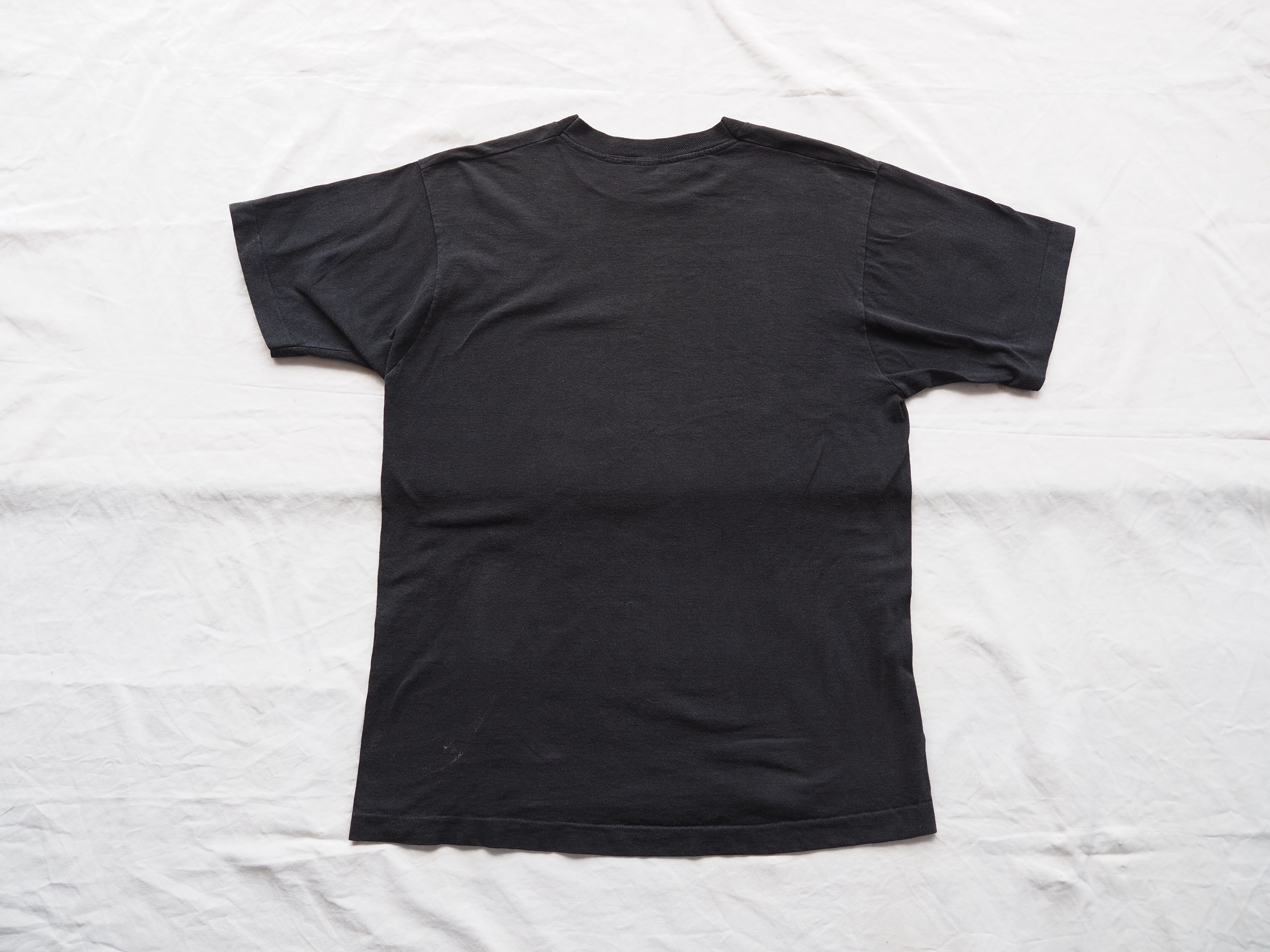 フロント中央のプリント部分にダメージ箇所、袖先と背面に裾付近に薄い色抜け箇所がございます。多少着用感はございますが上記以外の目立つダメージはなく古着に慣れた方でしたら問題なく着用頂けるコンディションです。