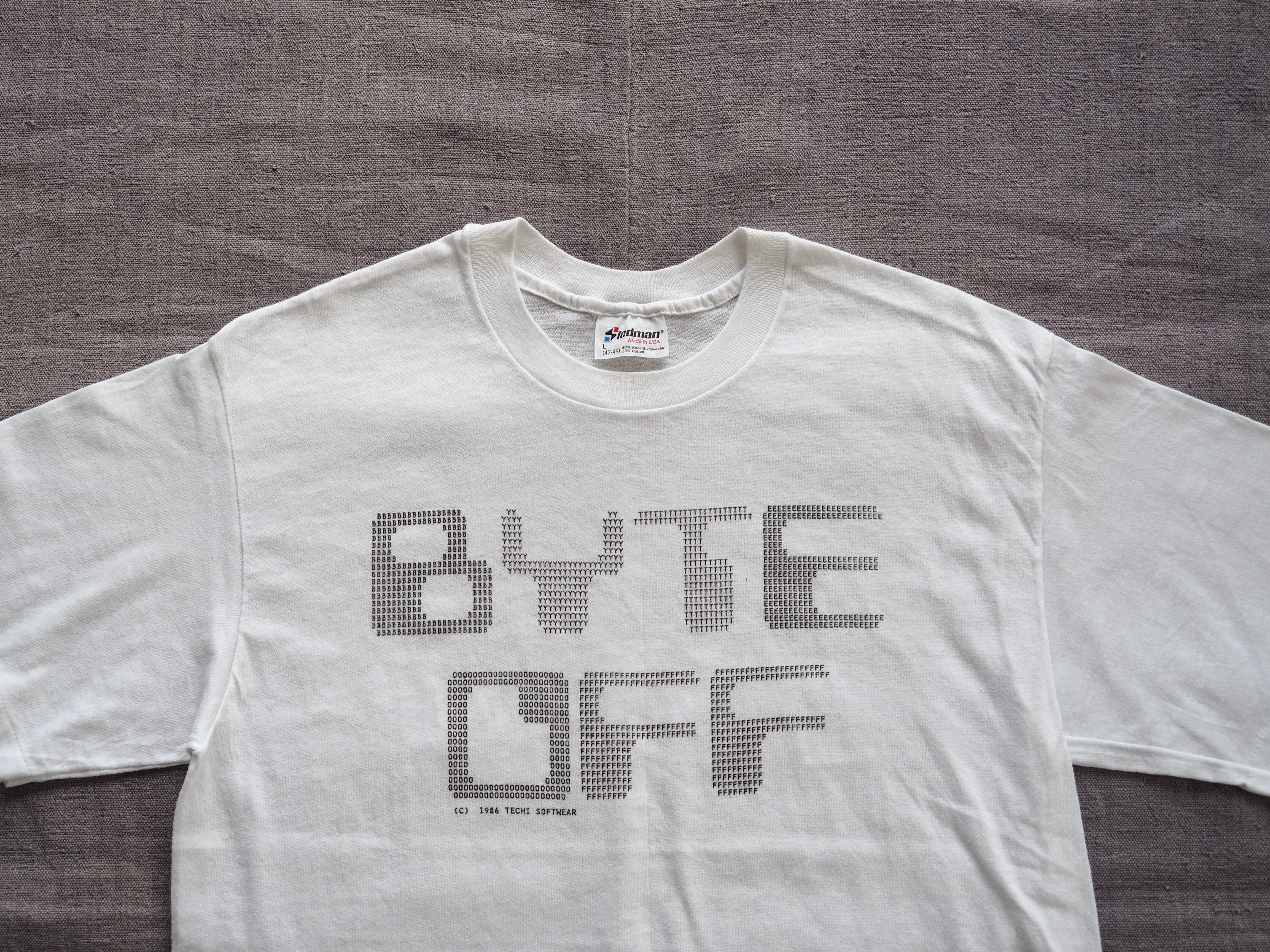 USA製、Steamanボディー、BYTE OFFのプリントTシャツ。