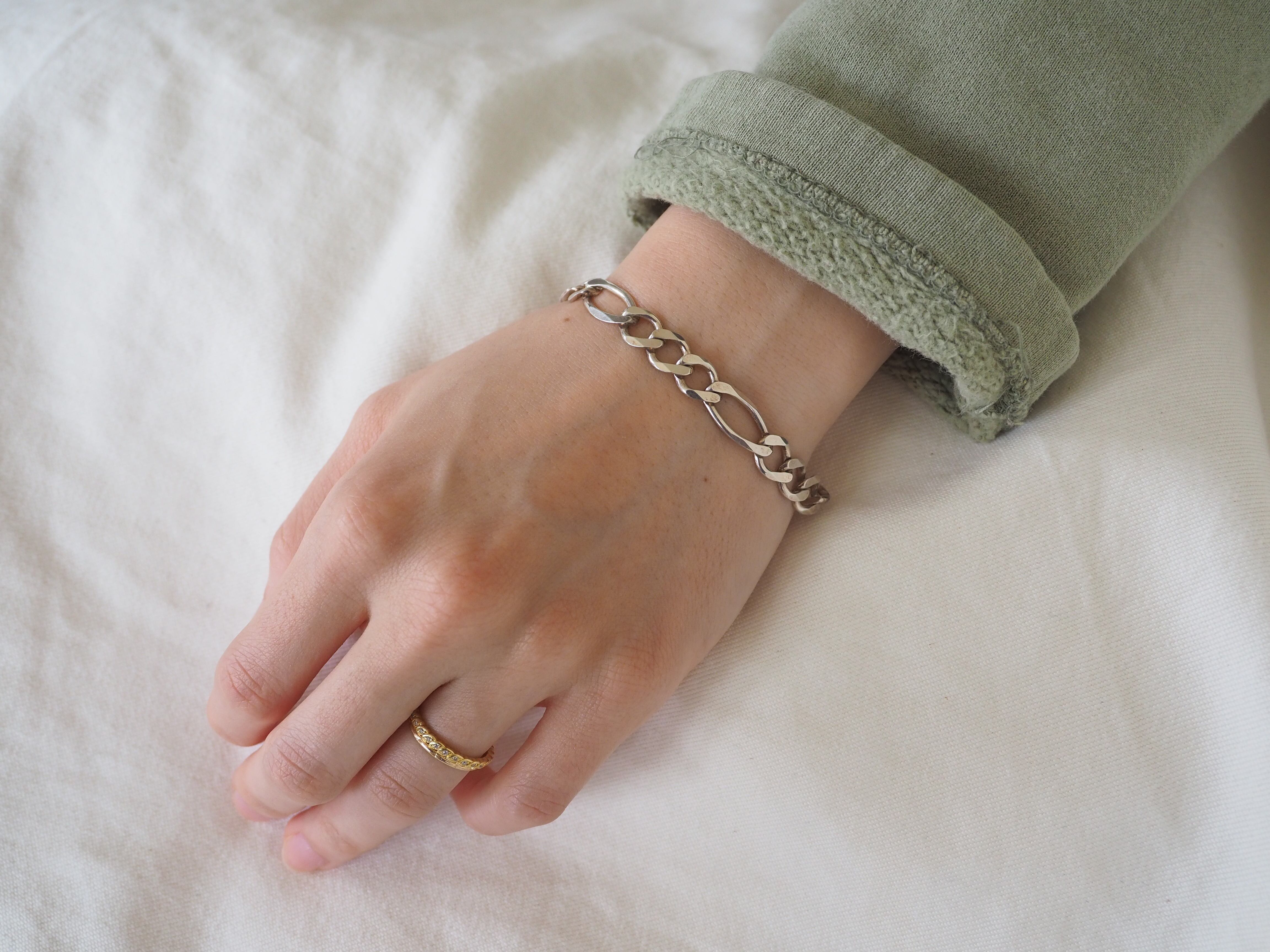 フィガロチェーンタイプでシンプルながら適度な重量感のあるデザインです。