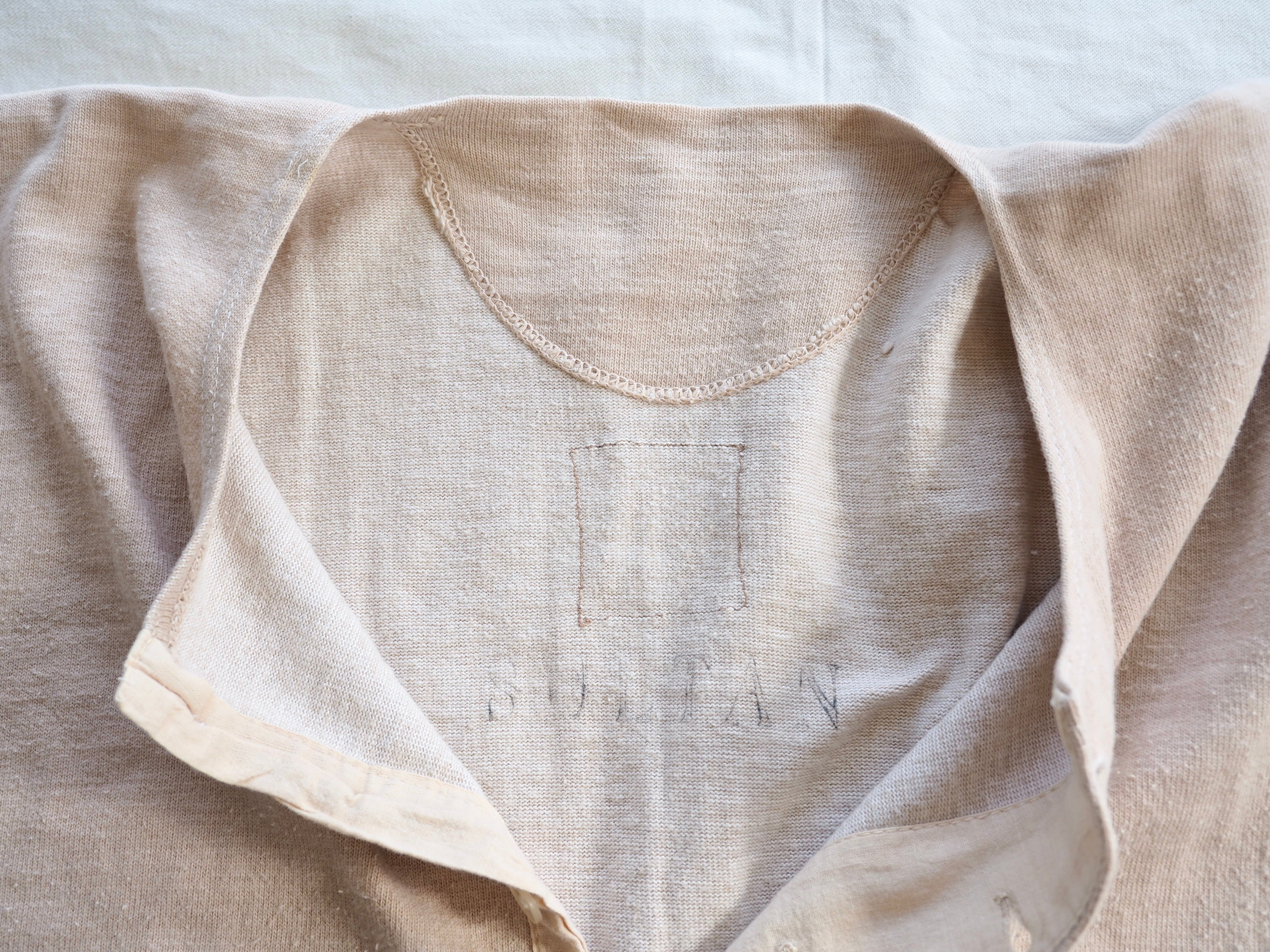 長めの段リブ仕様のスリーブや前見頃と後ろ身頃を繋ぐ縫製のない古い作りがとても良い雰囲気です。