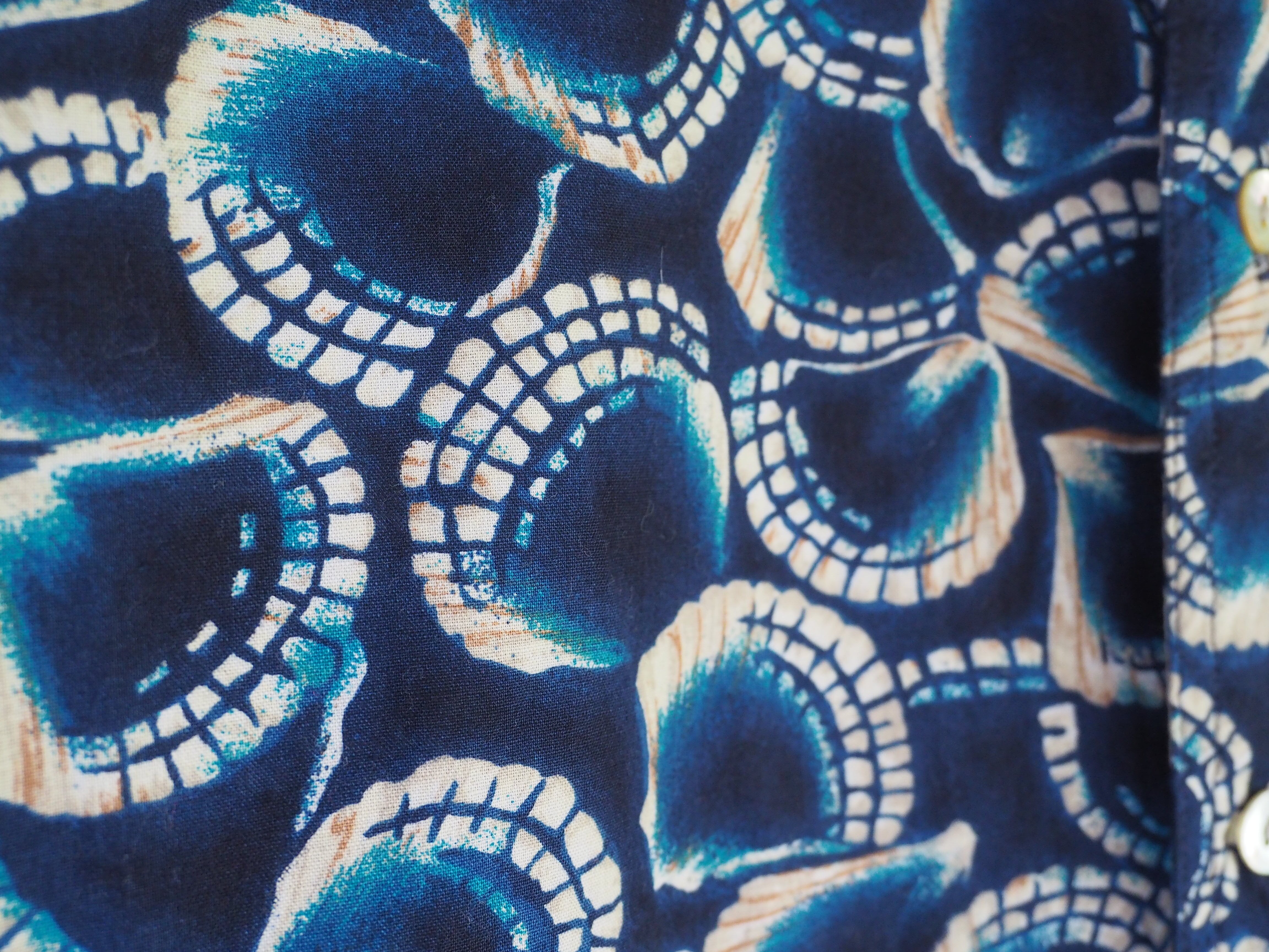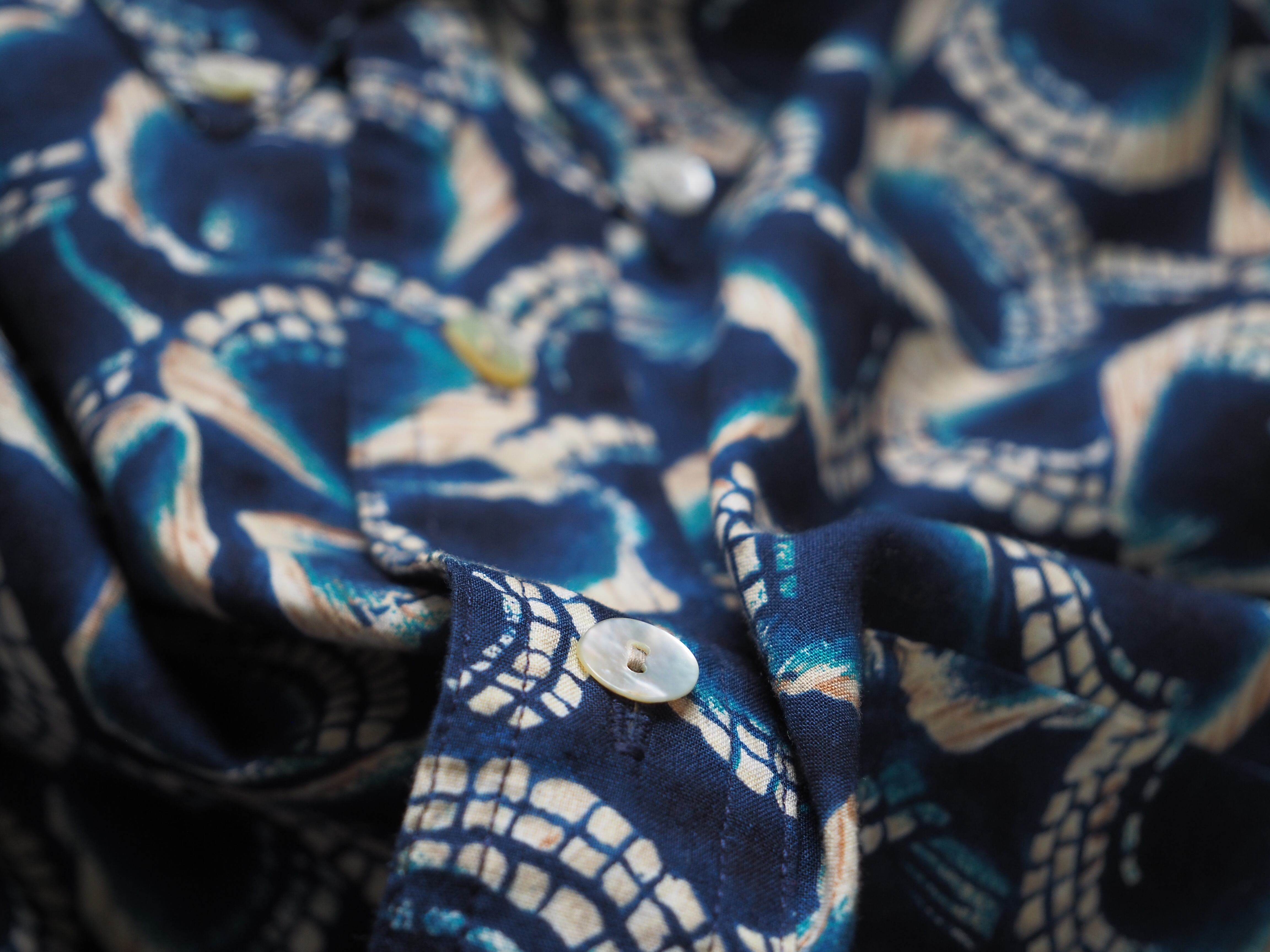 ネイビーのグラデーションカラー、シェルボタン仕様。さらりとした薄手のコットン素材を使用した高級感のあるアイテムです。