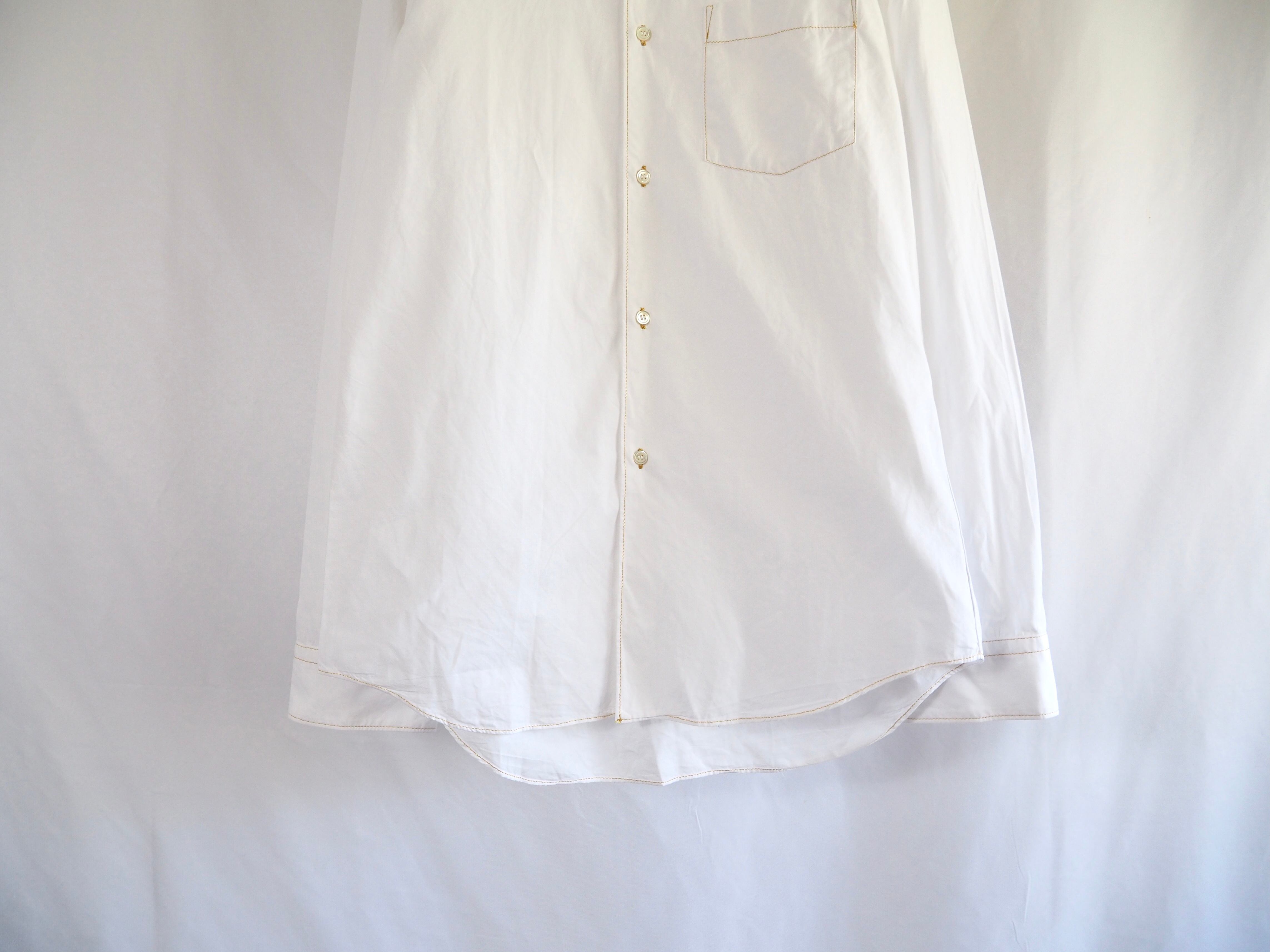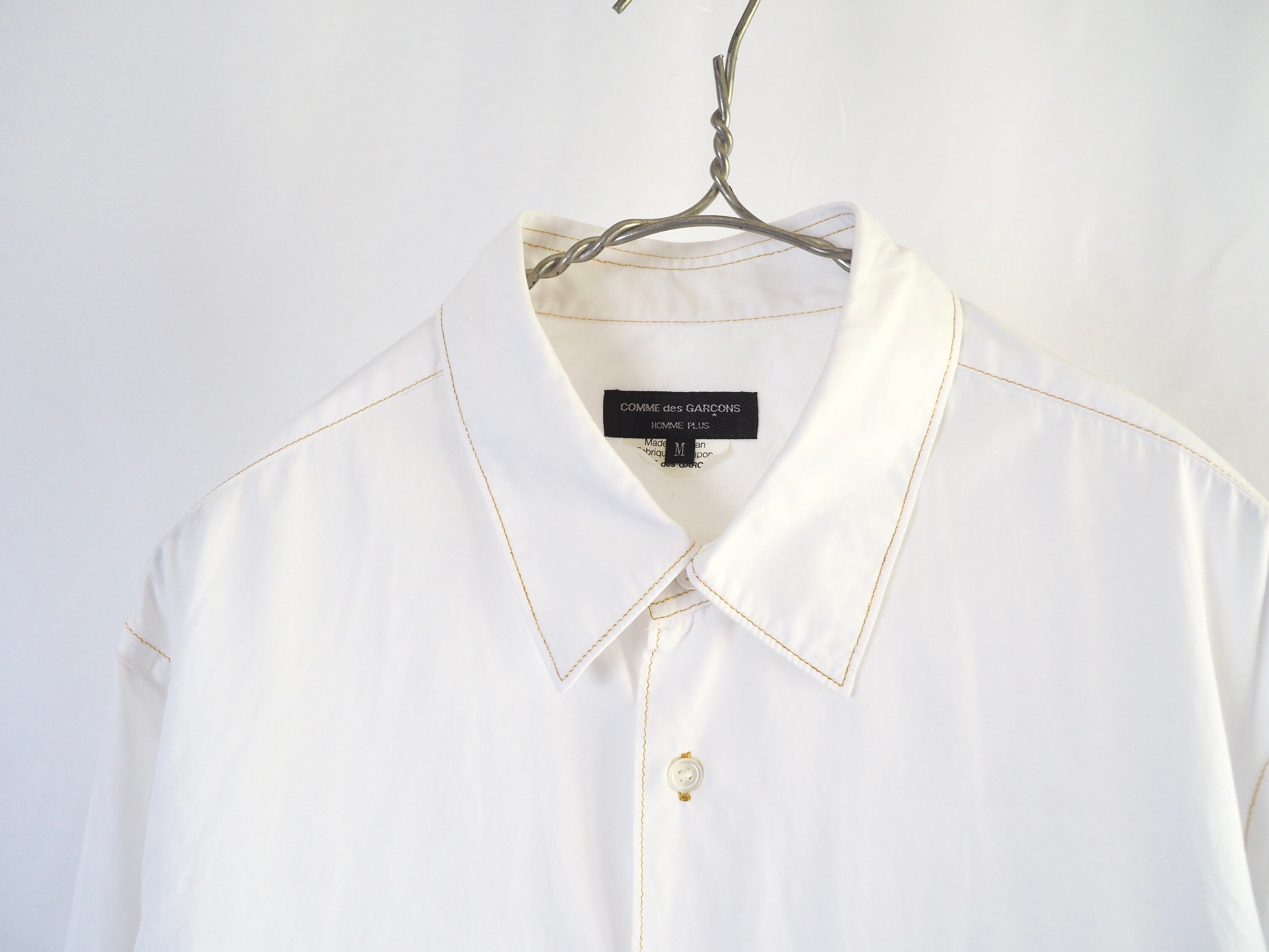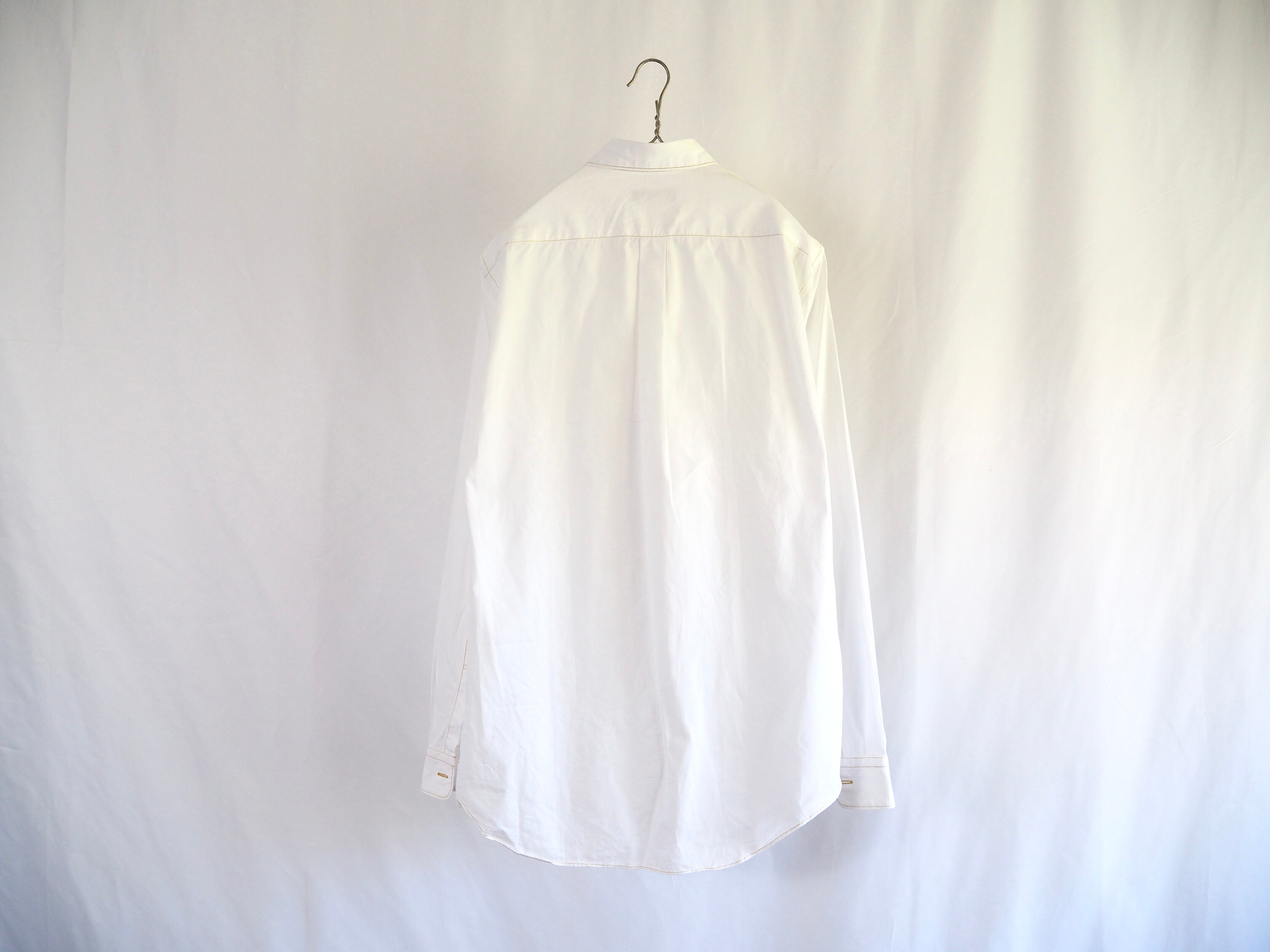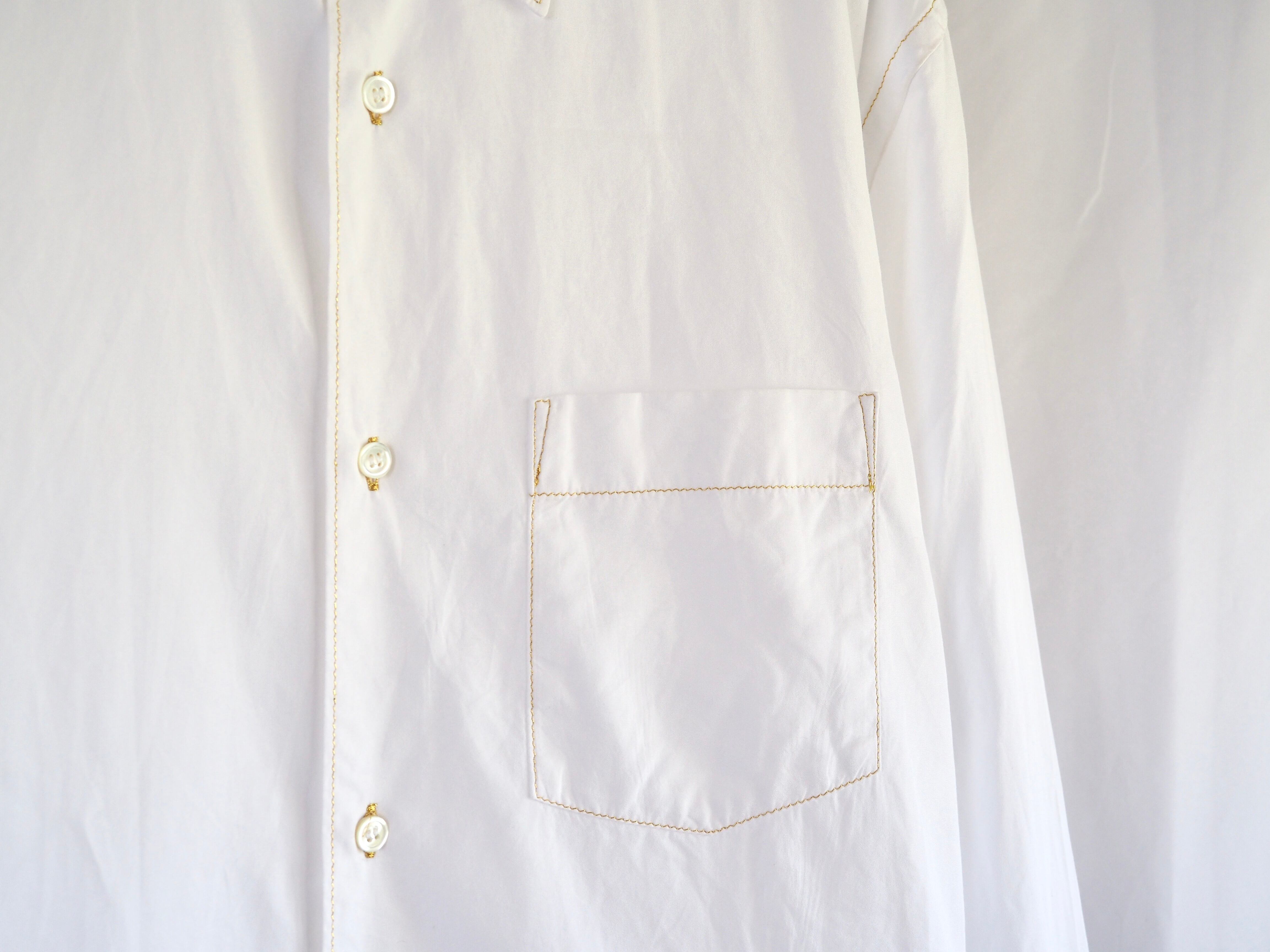 コットン100%、ゴールドステッチのホワイトシャツ。