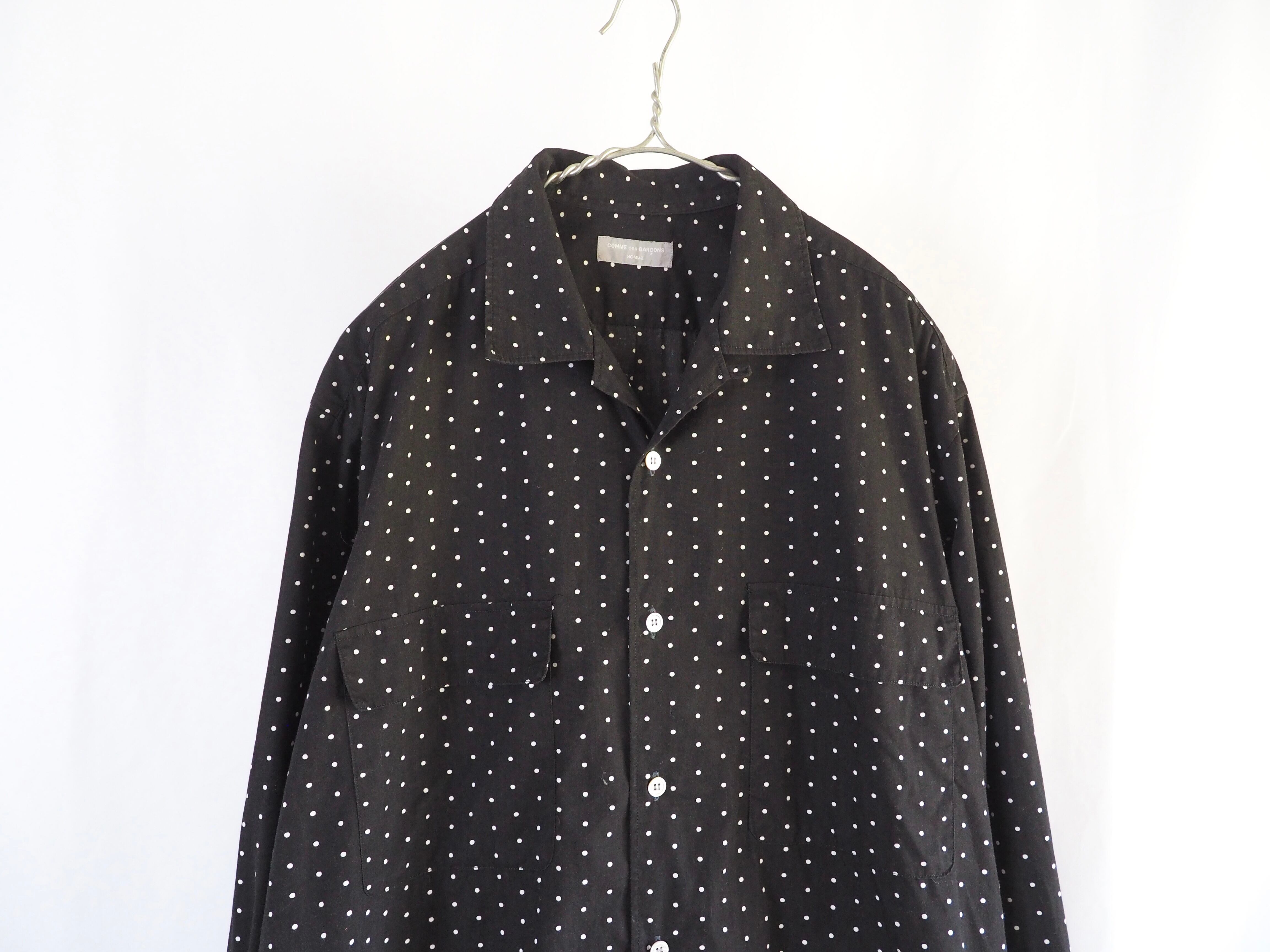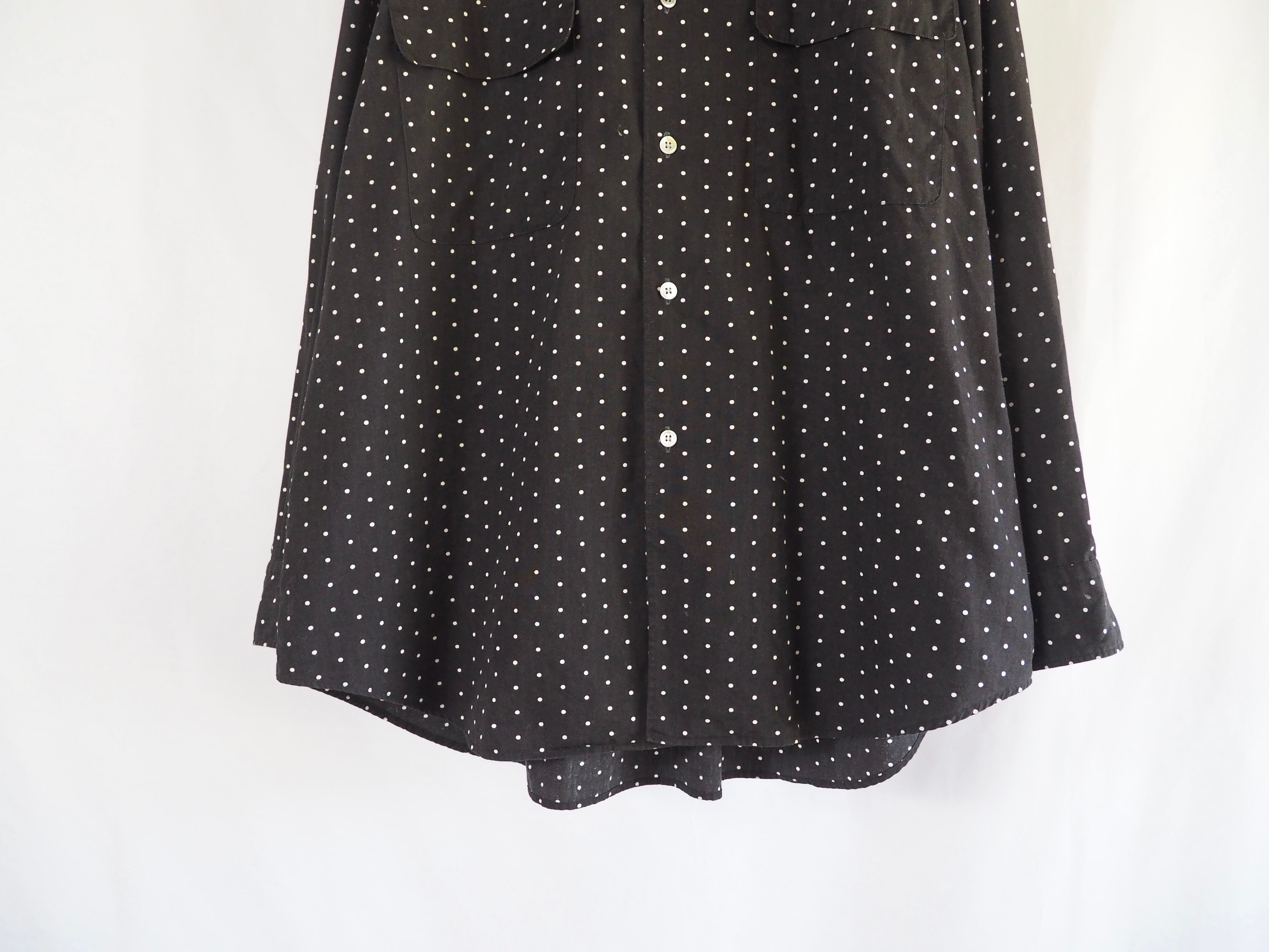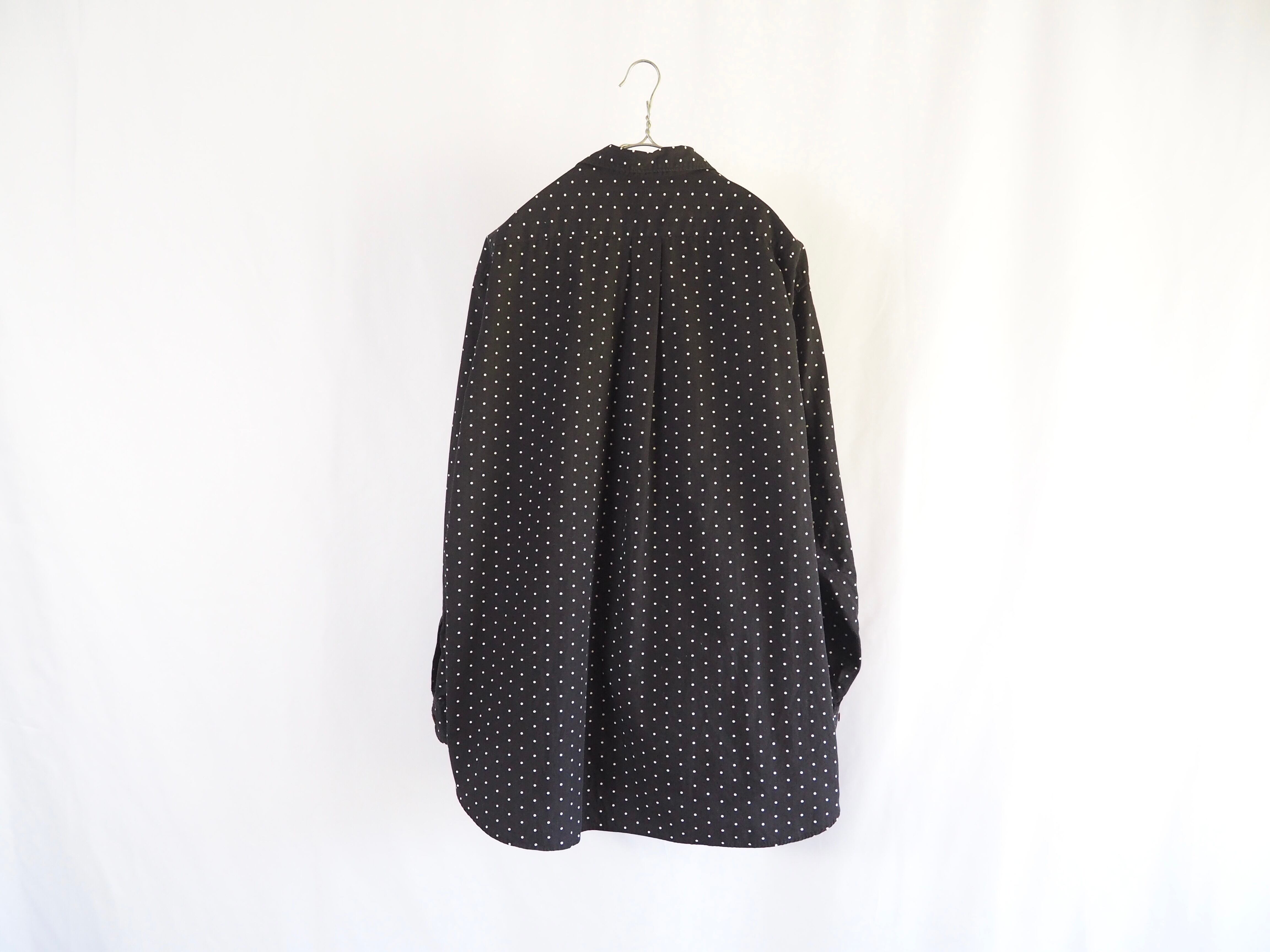 ブラック×ホワイトのポルカドットの長袖シャツ。