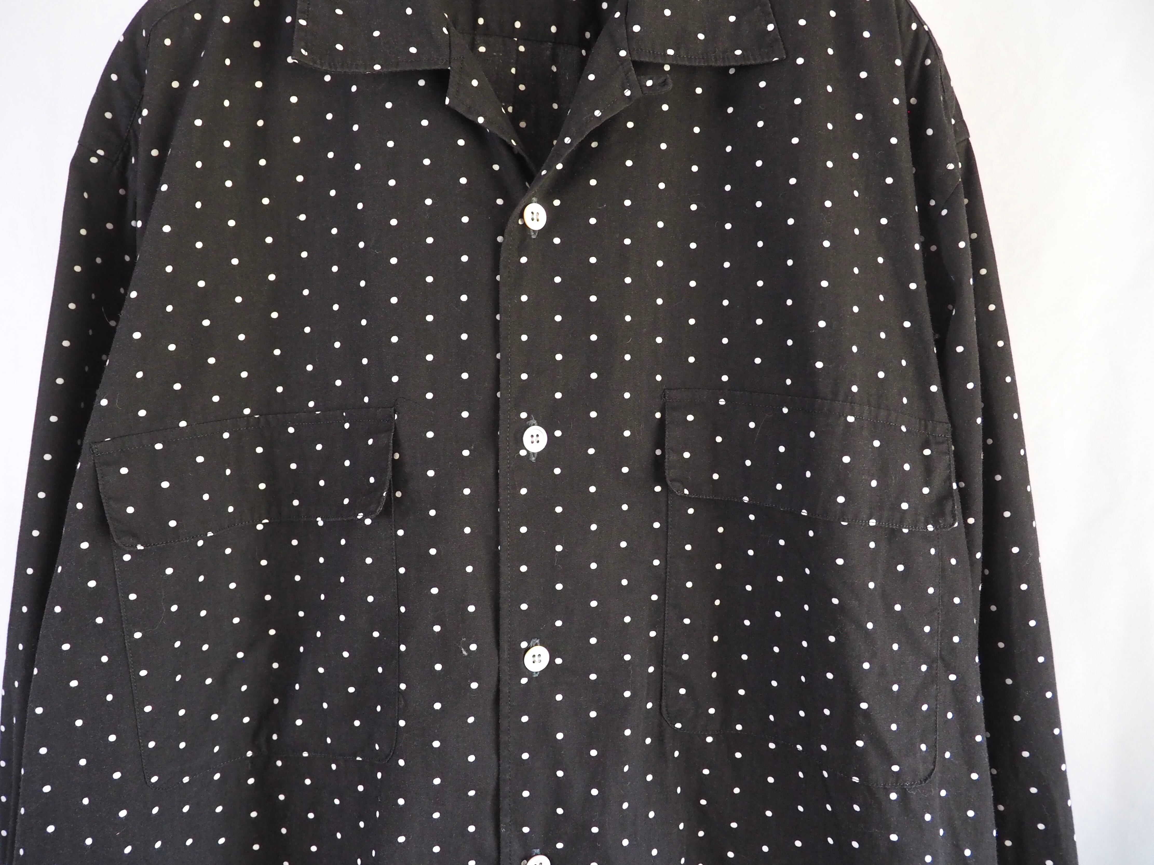 身幅たっぷりのボリュームシルエット、オープンカラーでチェストポケットはフラップ付きの2ポケット仕様。50'sの要素を加えたバランスは柄物を着用されない方にも合わせやすいデザイン、シルエットだと思います。