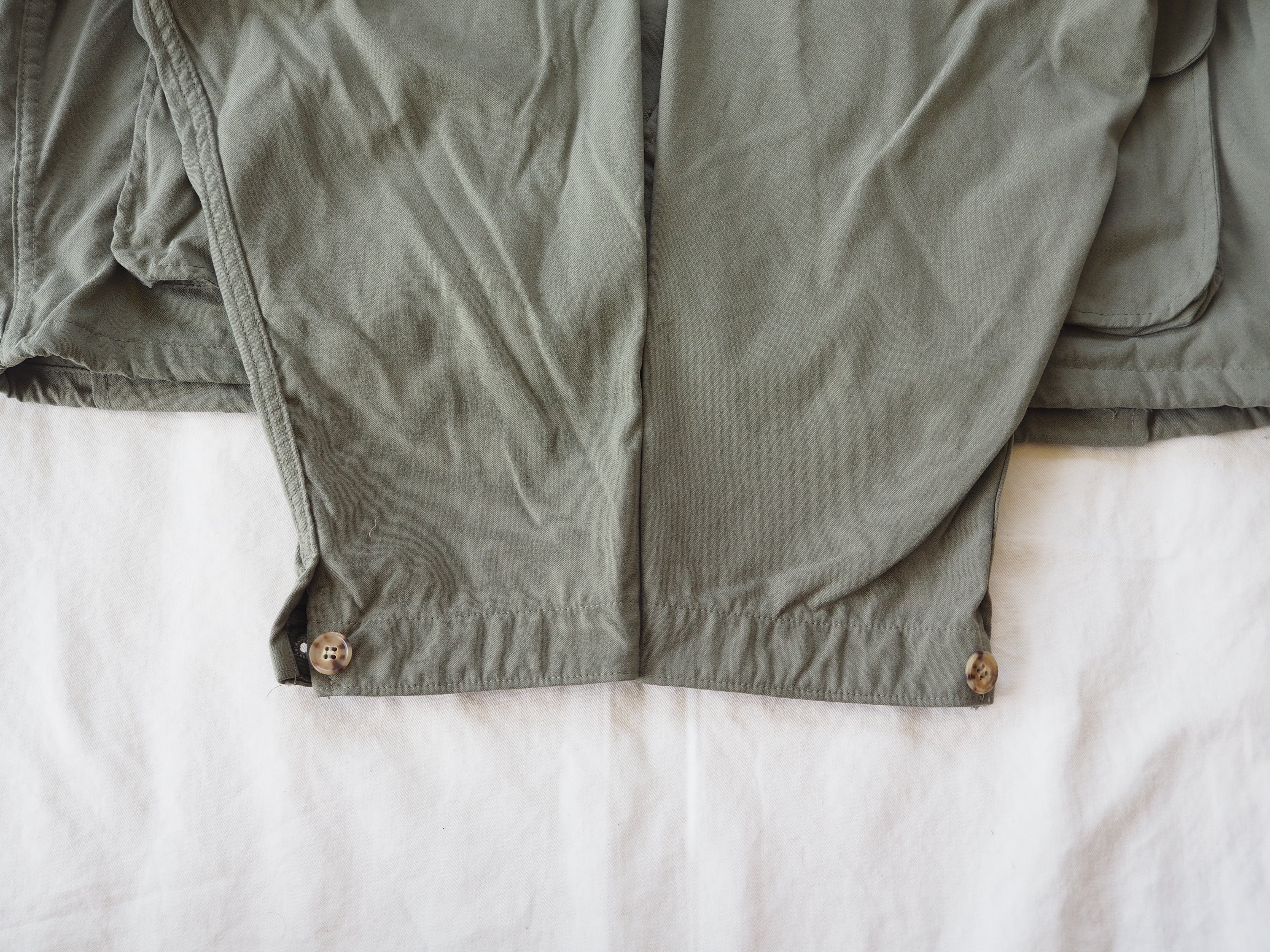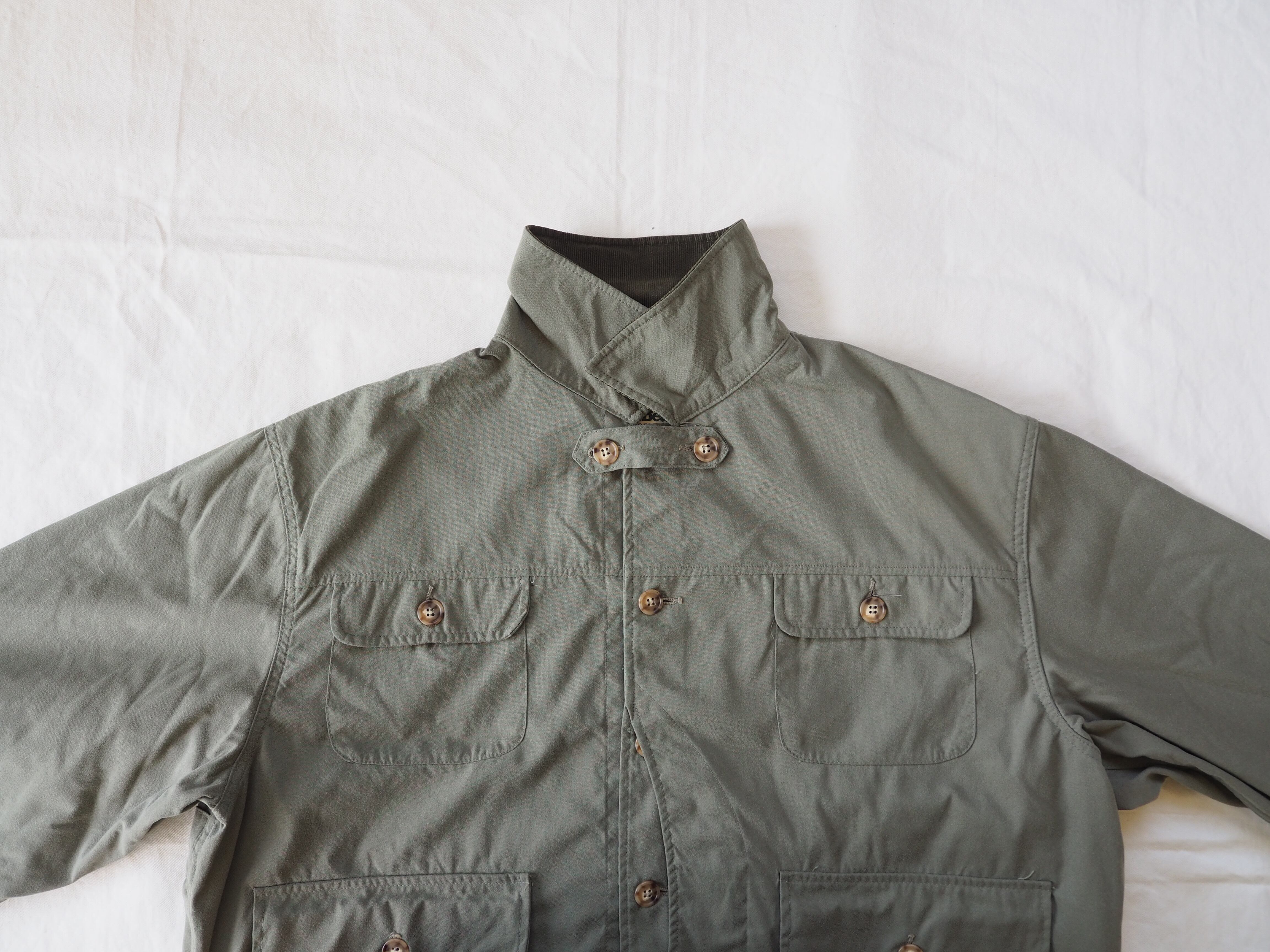 襟や袖裏のコーデュロイ仕様やチンストラップ、4ポケットのフロントはwarden jacketを踏襲するデザインです。