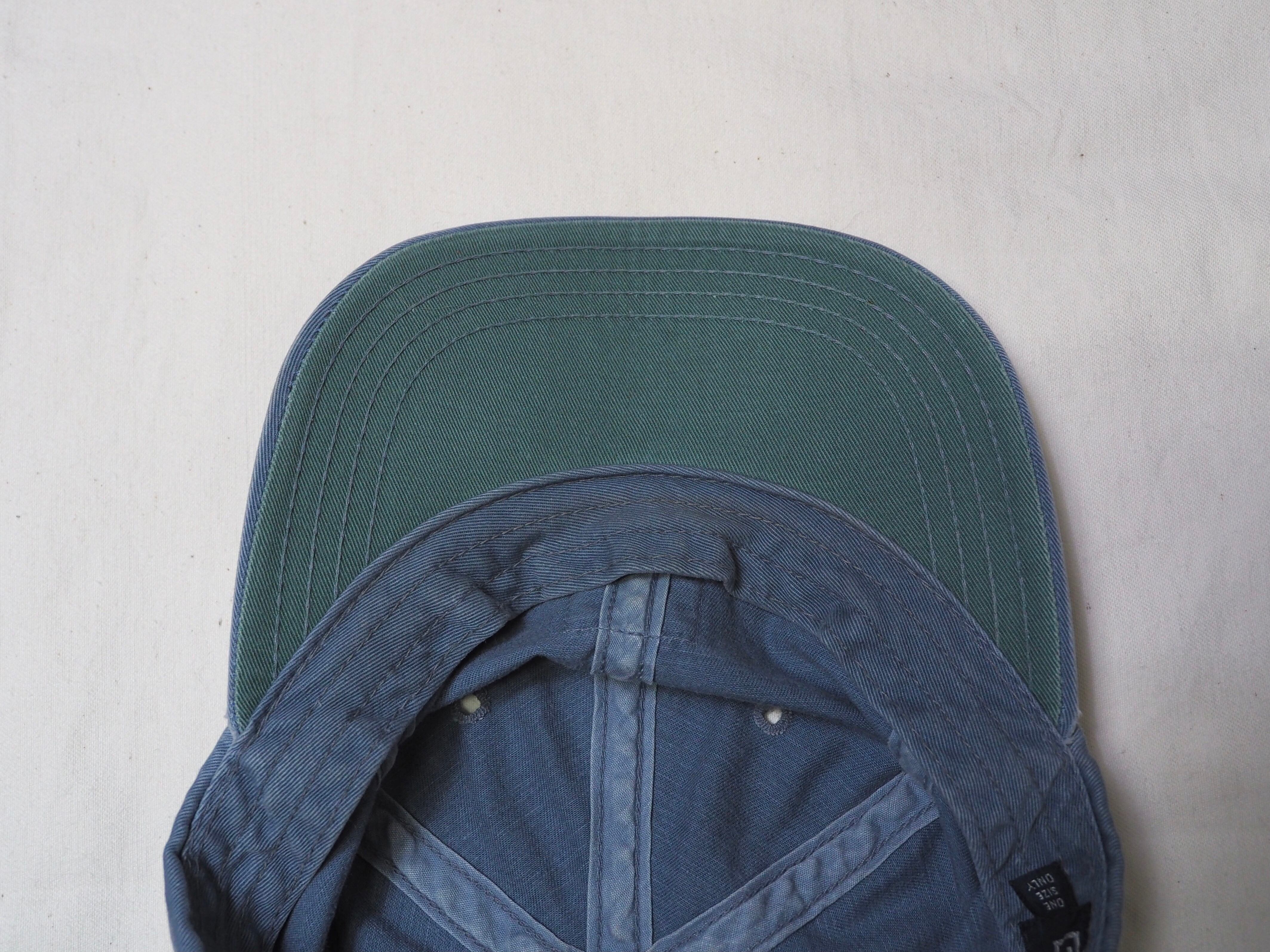 多少着用感のあるUSEDです。つばのセンター部分に折跡(中の芯は割れてはいません)、バックのストラップ部分にシミ、全体的に色褪せがございます。