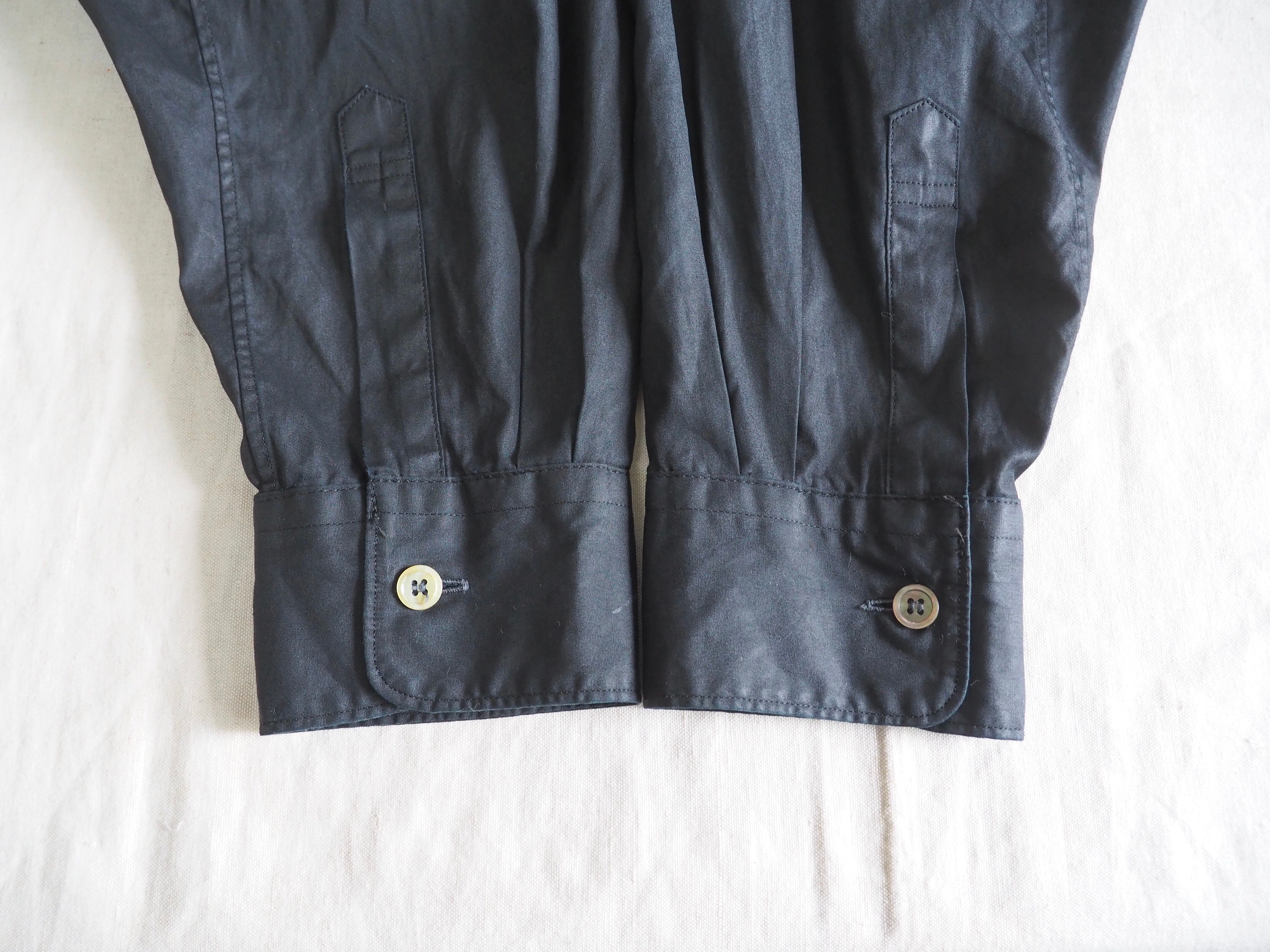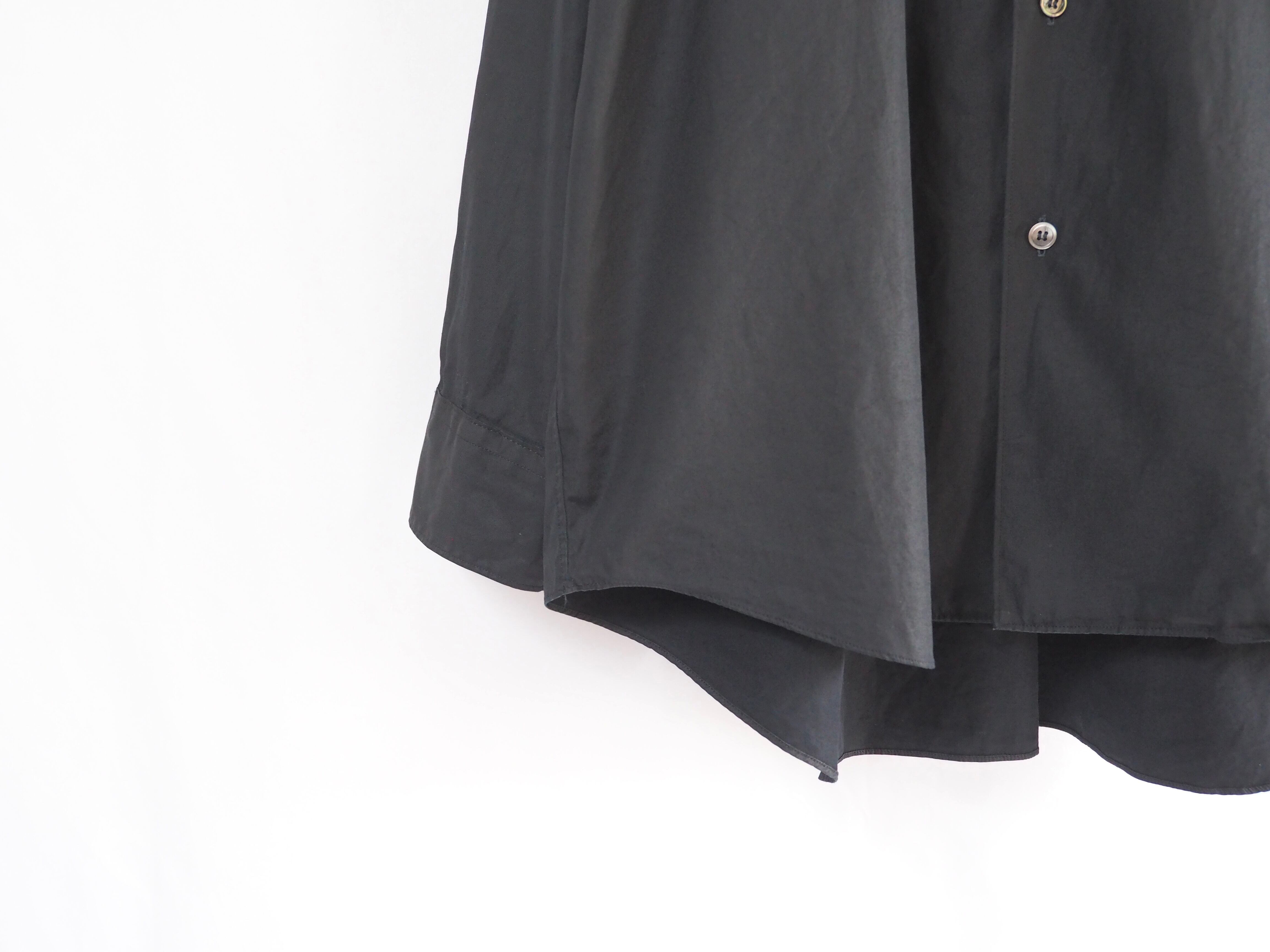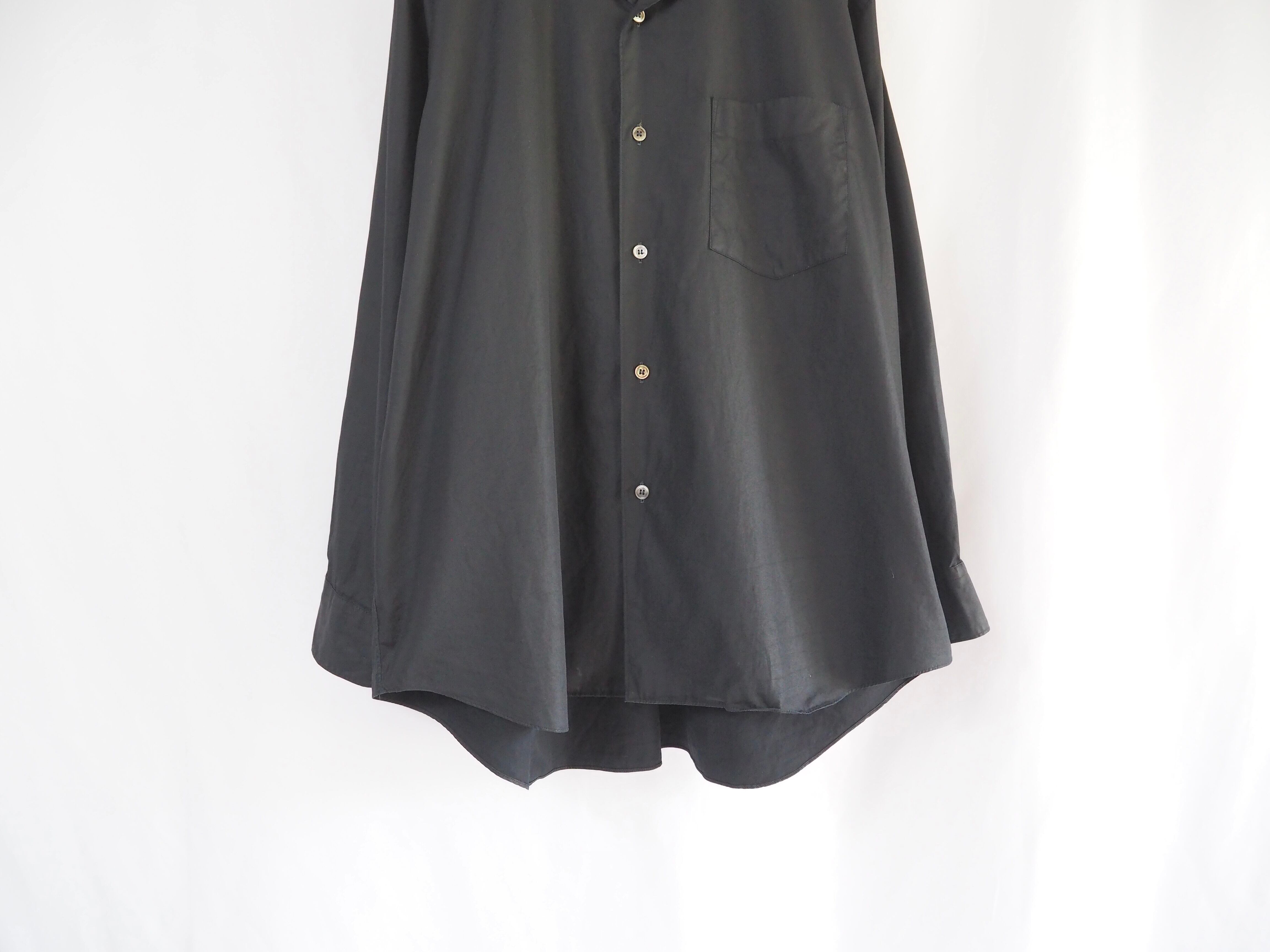 通常よりも襟の幅が細くデザインされたオープンカラーにやや着丈長めのラウンドボトムです。