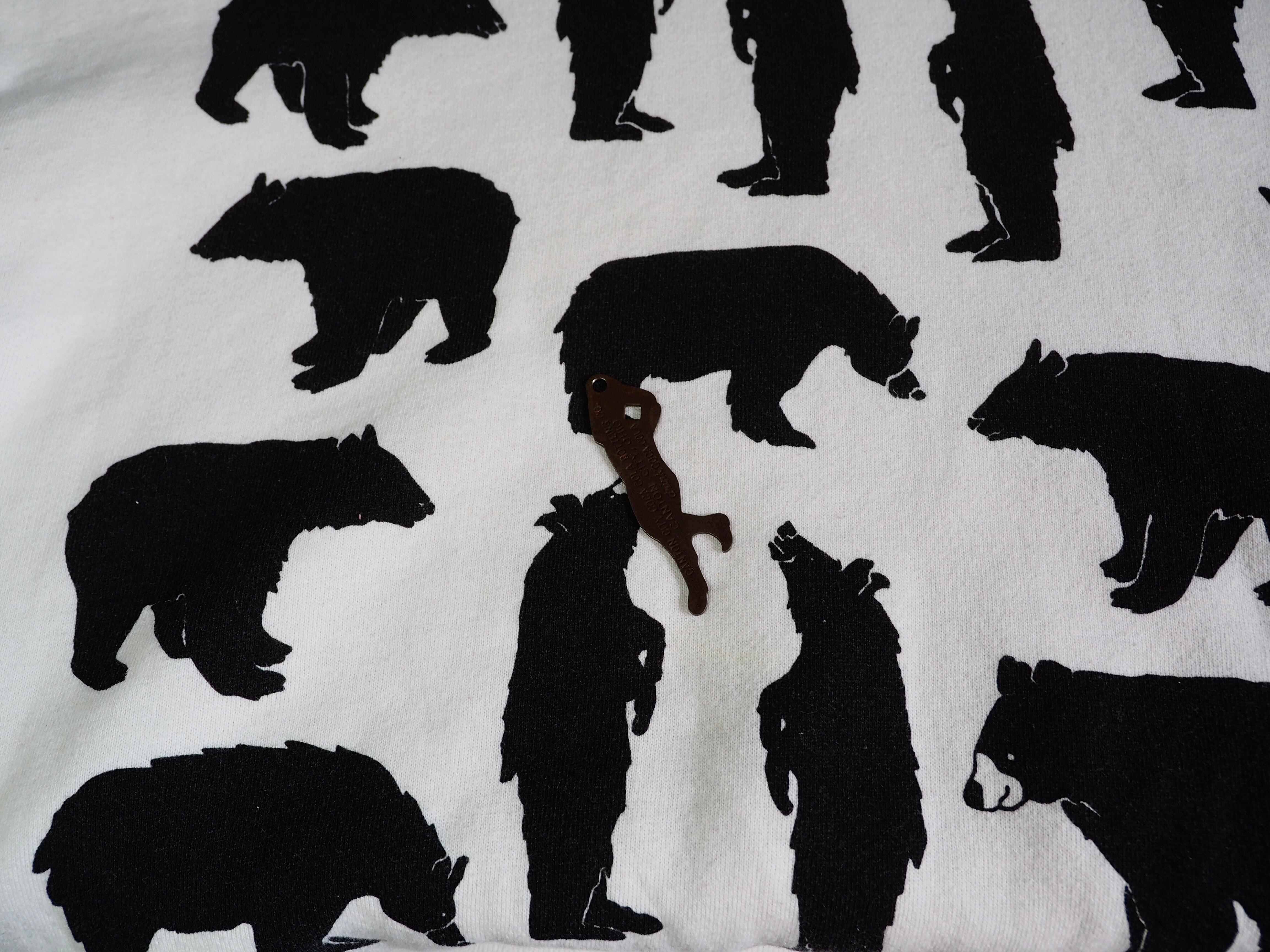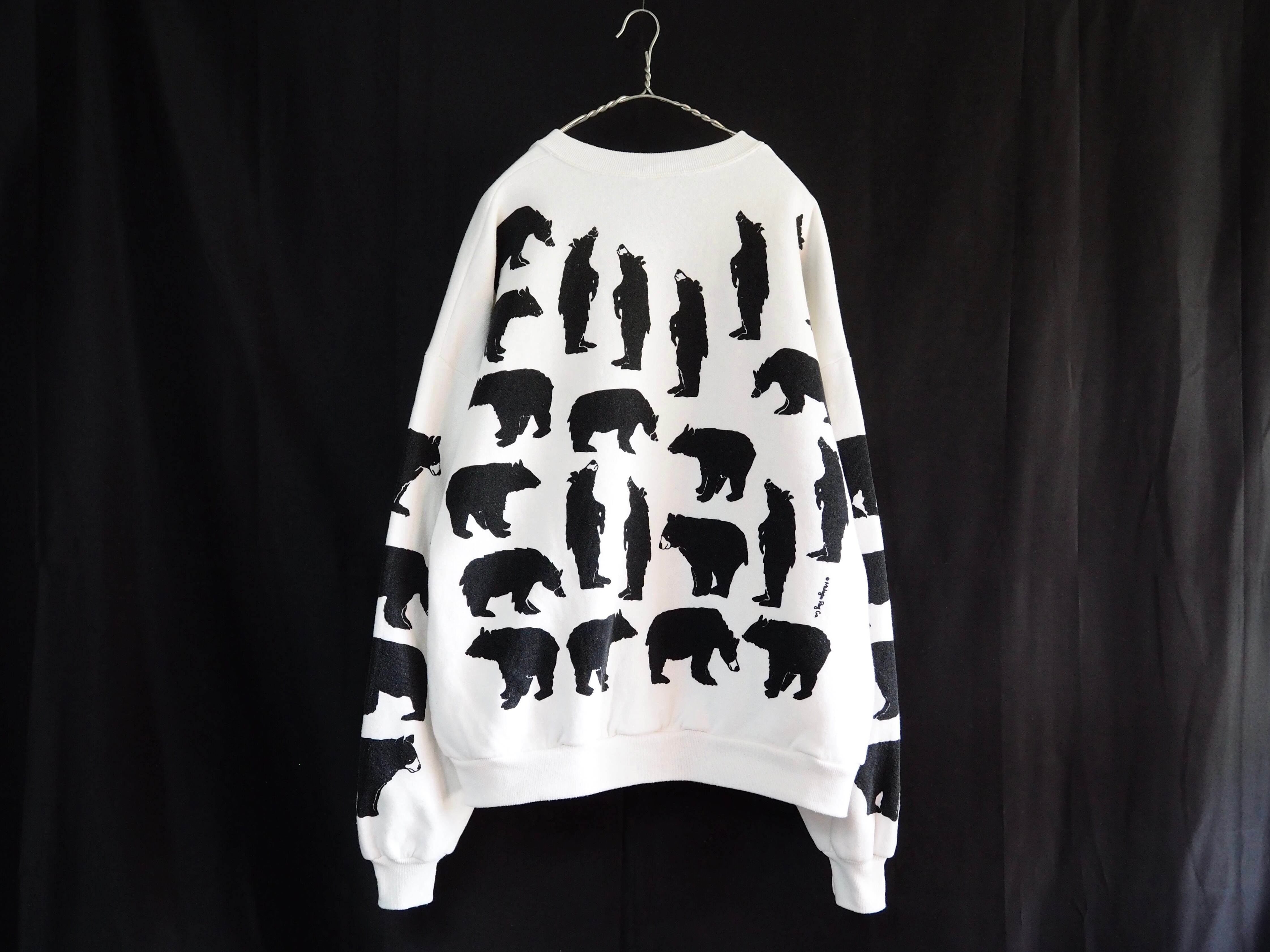 ボディーから袖先まで様々な格好をしたクマがプリントされた総柄デザイン。