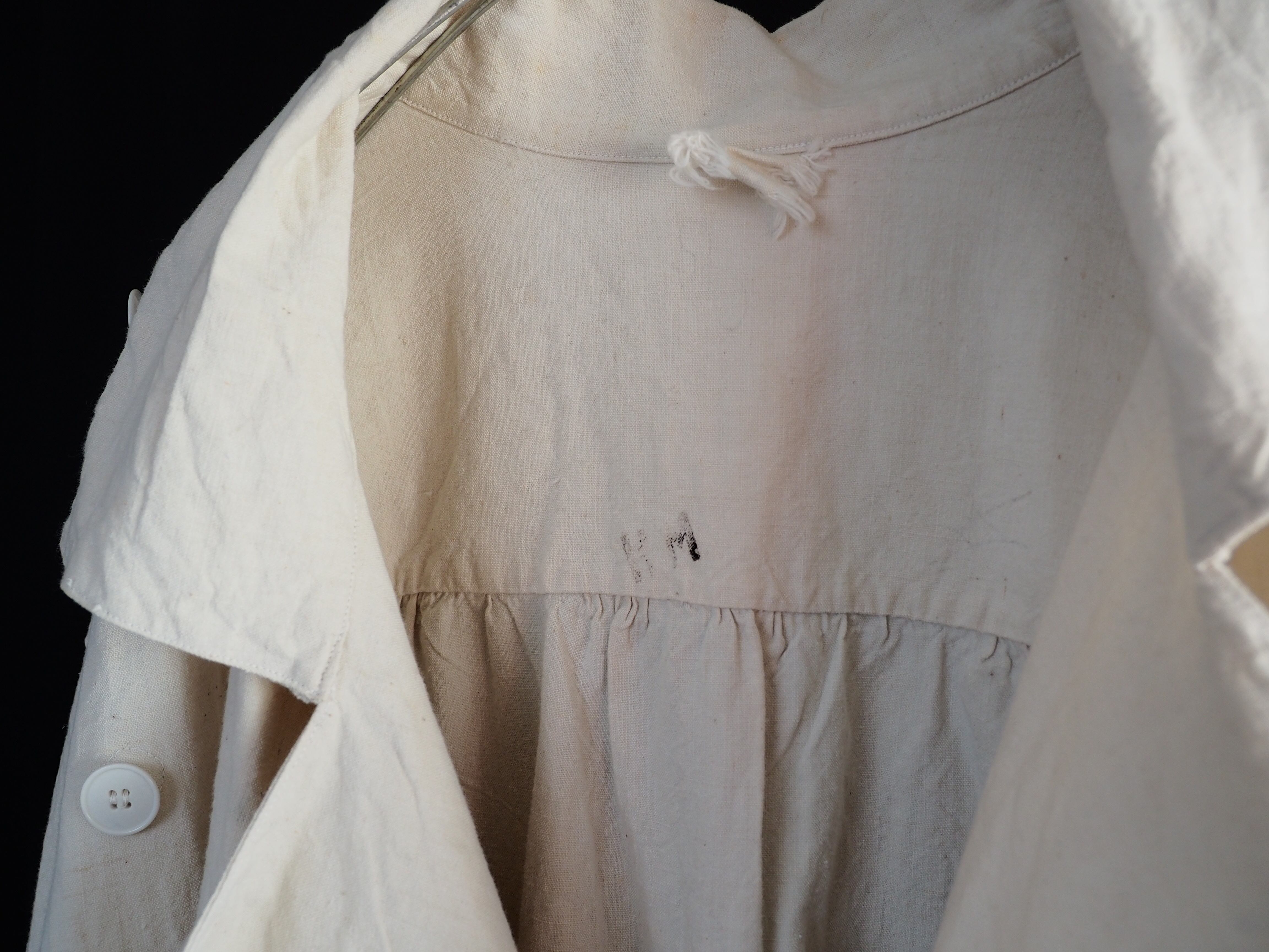 ネップ感があり、生地はおそらリネンもしくはリネン/コットンの混紡かと思います。