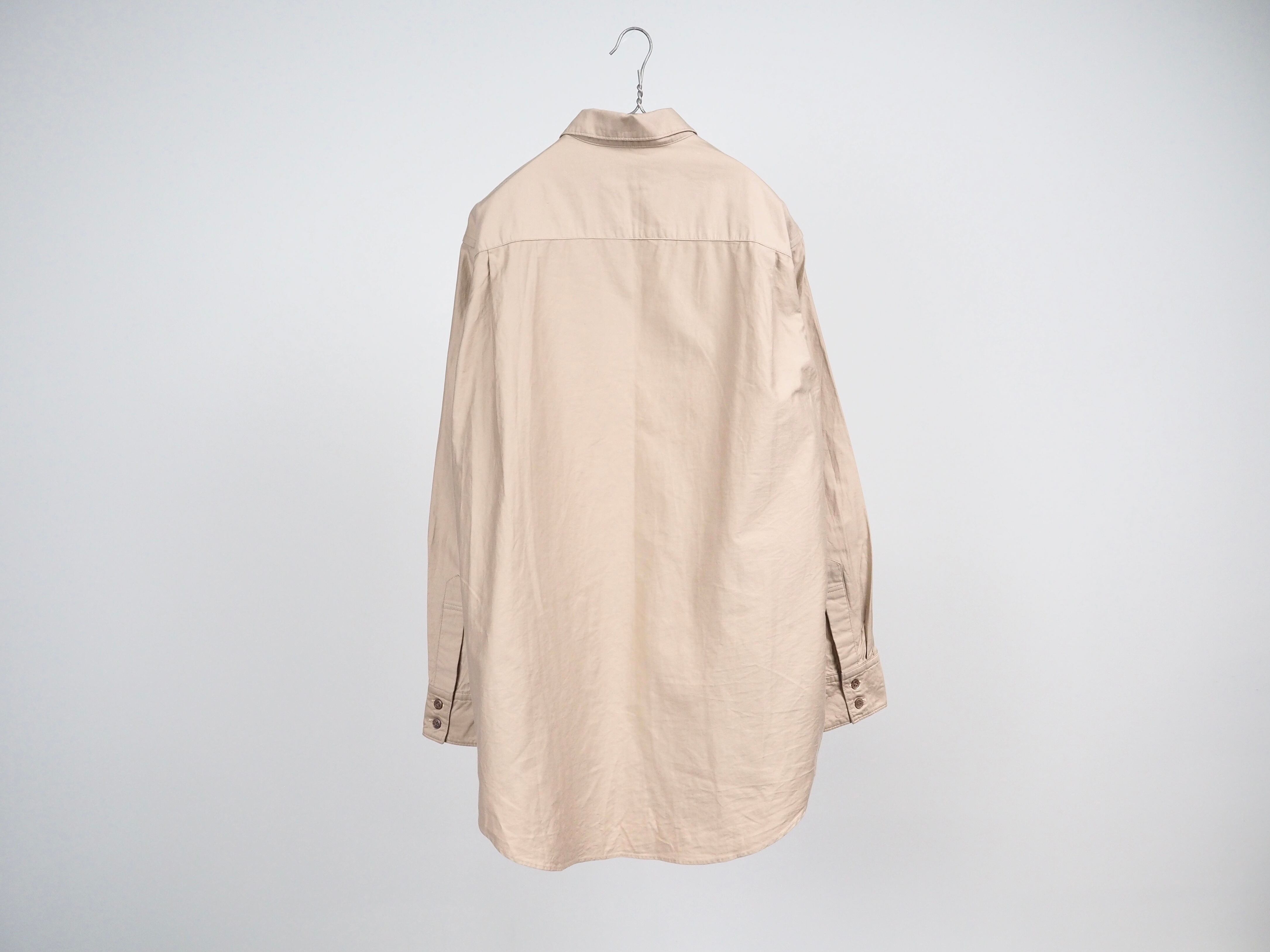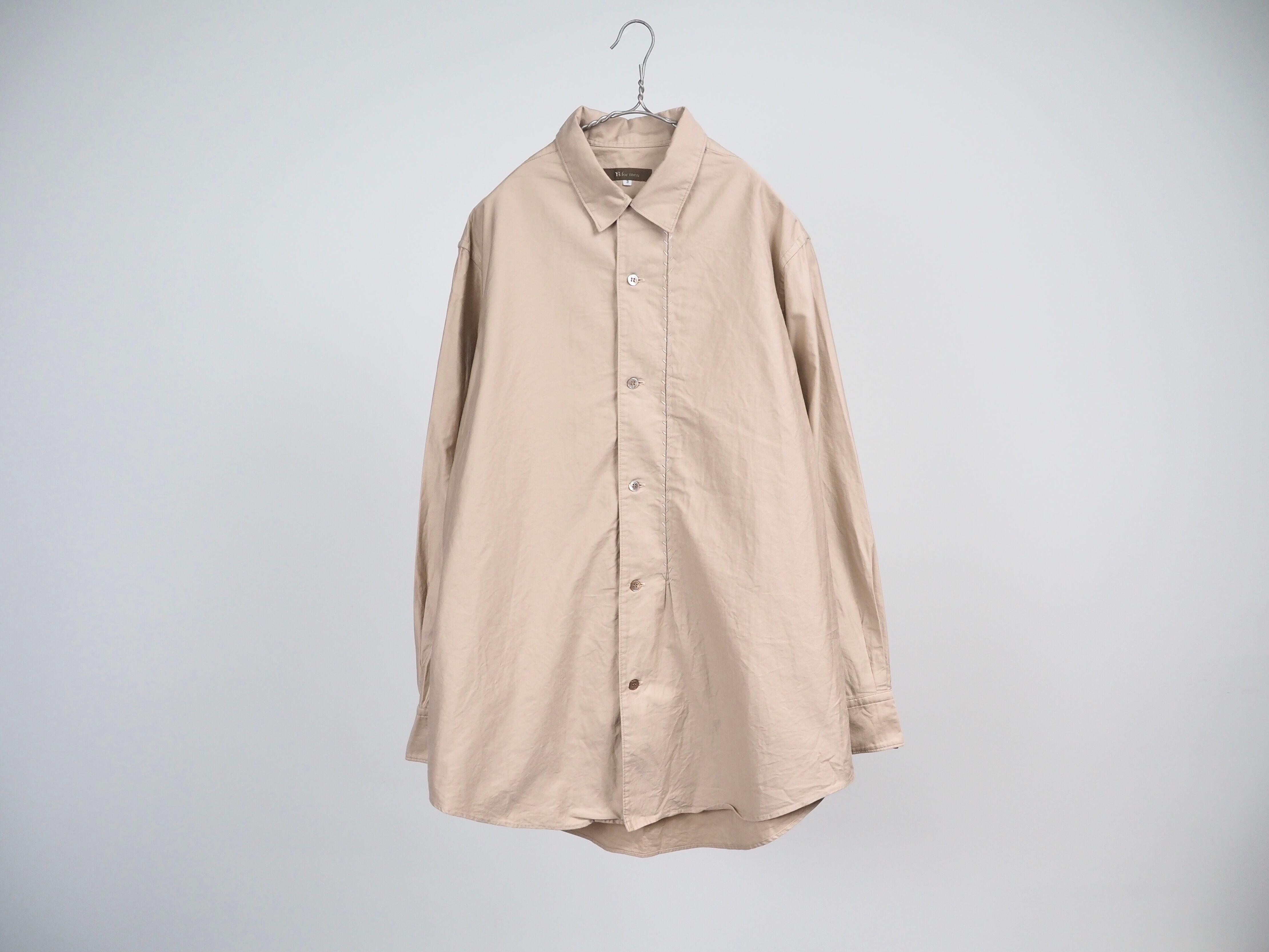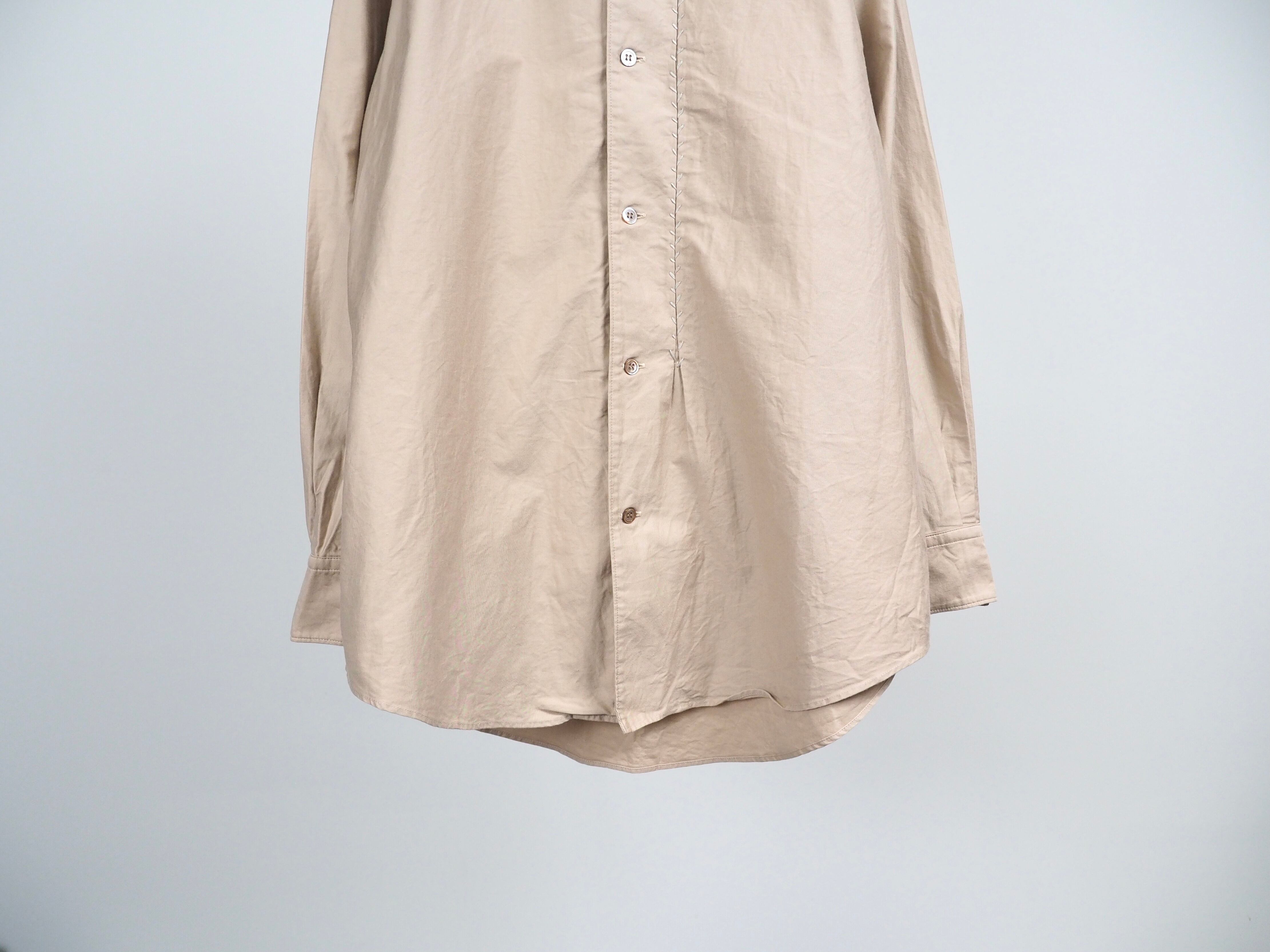 オープンカラーで裾は緩やかなラウンドテール、100%コットン、ライトベージュカラーです。
