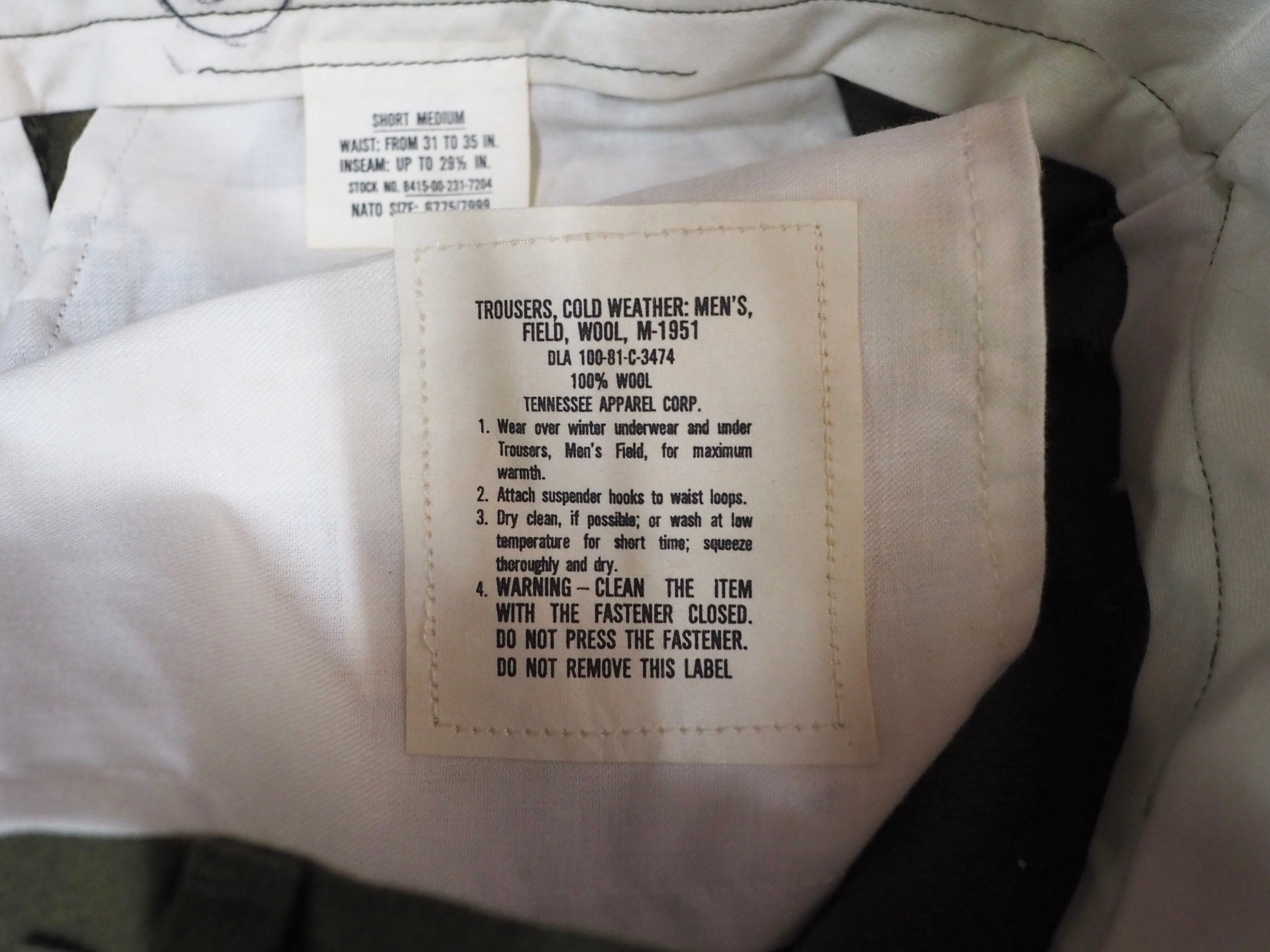《NOS》1980’s US.ARMY M-51 Wool Trousers Medium-Short