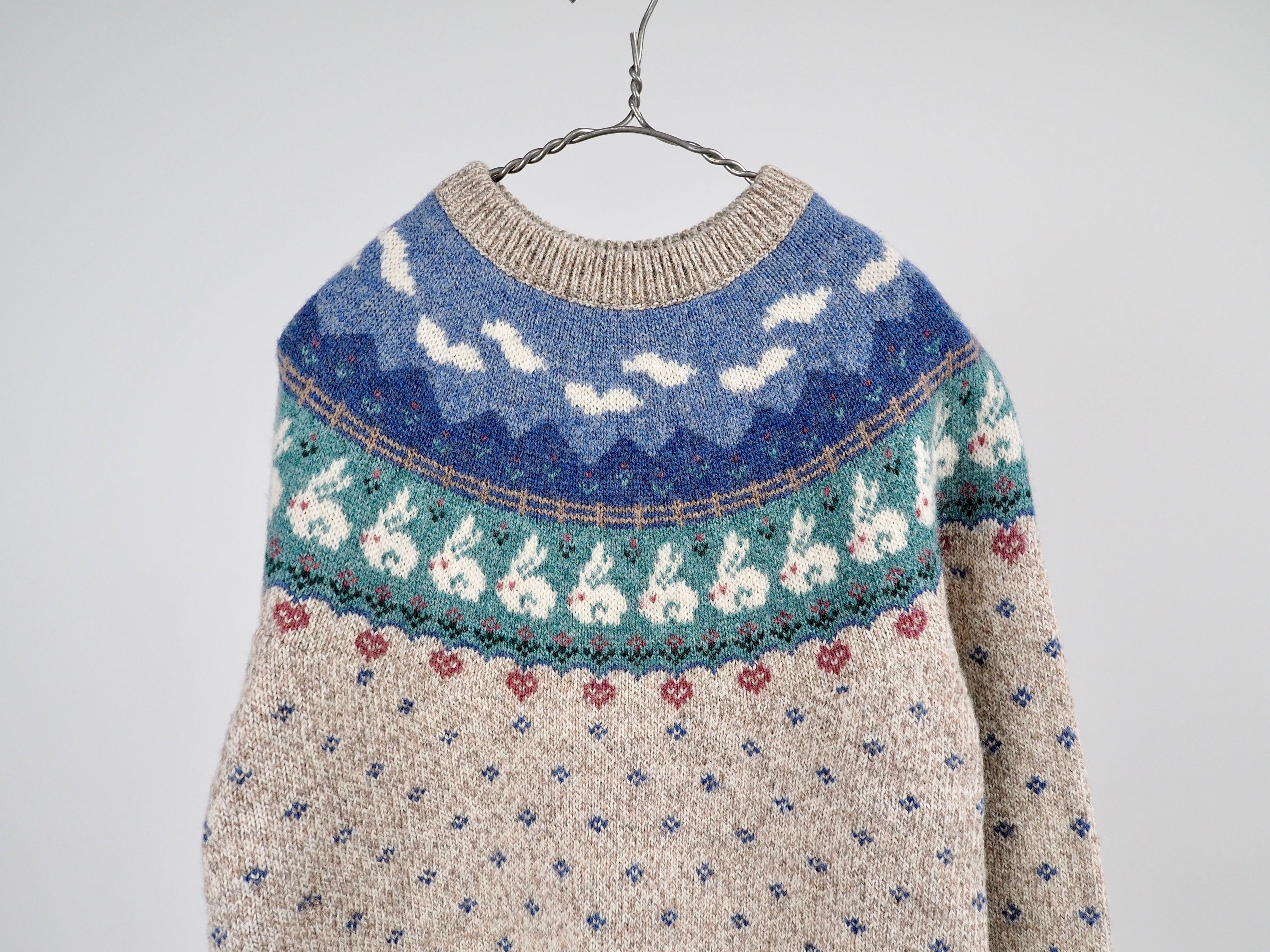 こちらもタグに1989年のコピーライト入り。ノルディックセーターのデザインにウサギ柄を落とし込んだかわいい柄です。