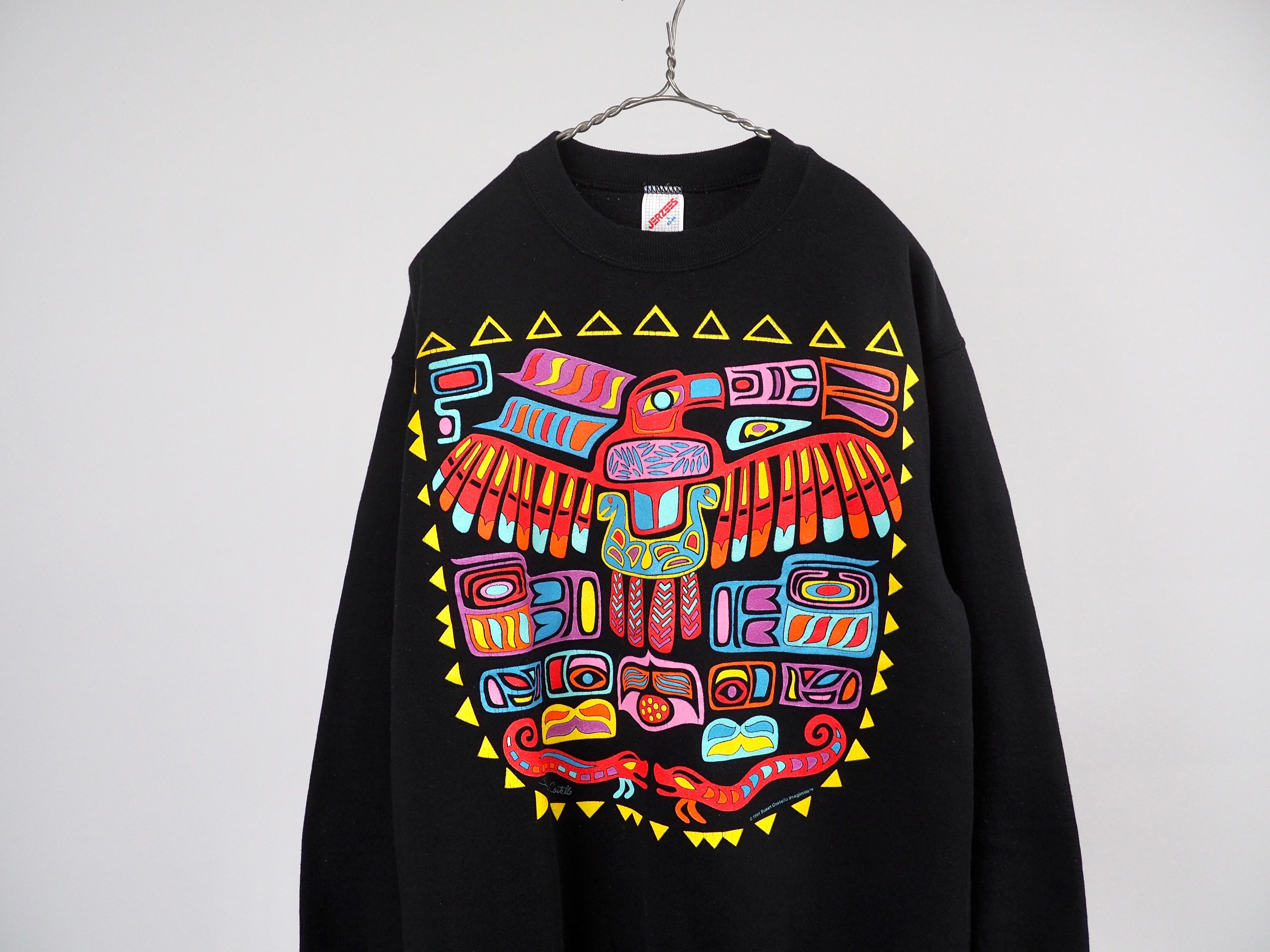 USA製、ヴィンテージのサンダーバードモチーフのネイティブ柄スウェット。