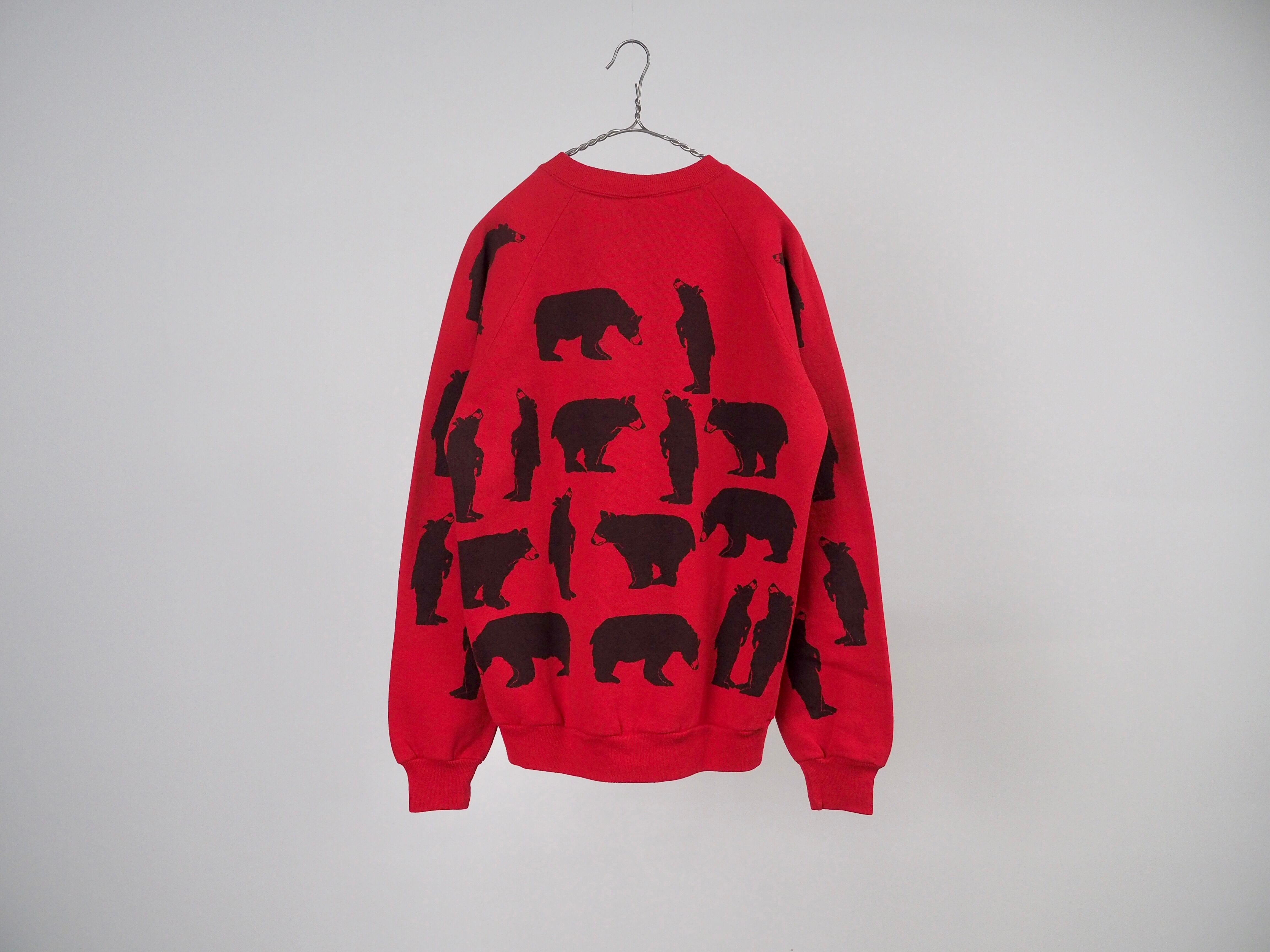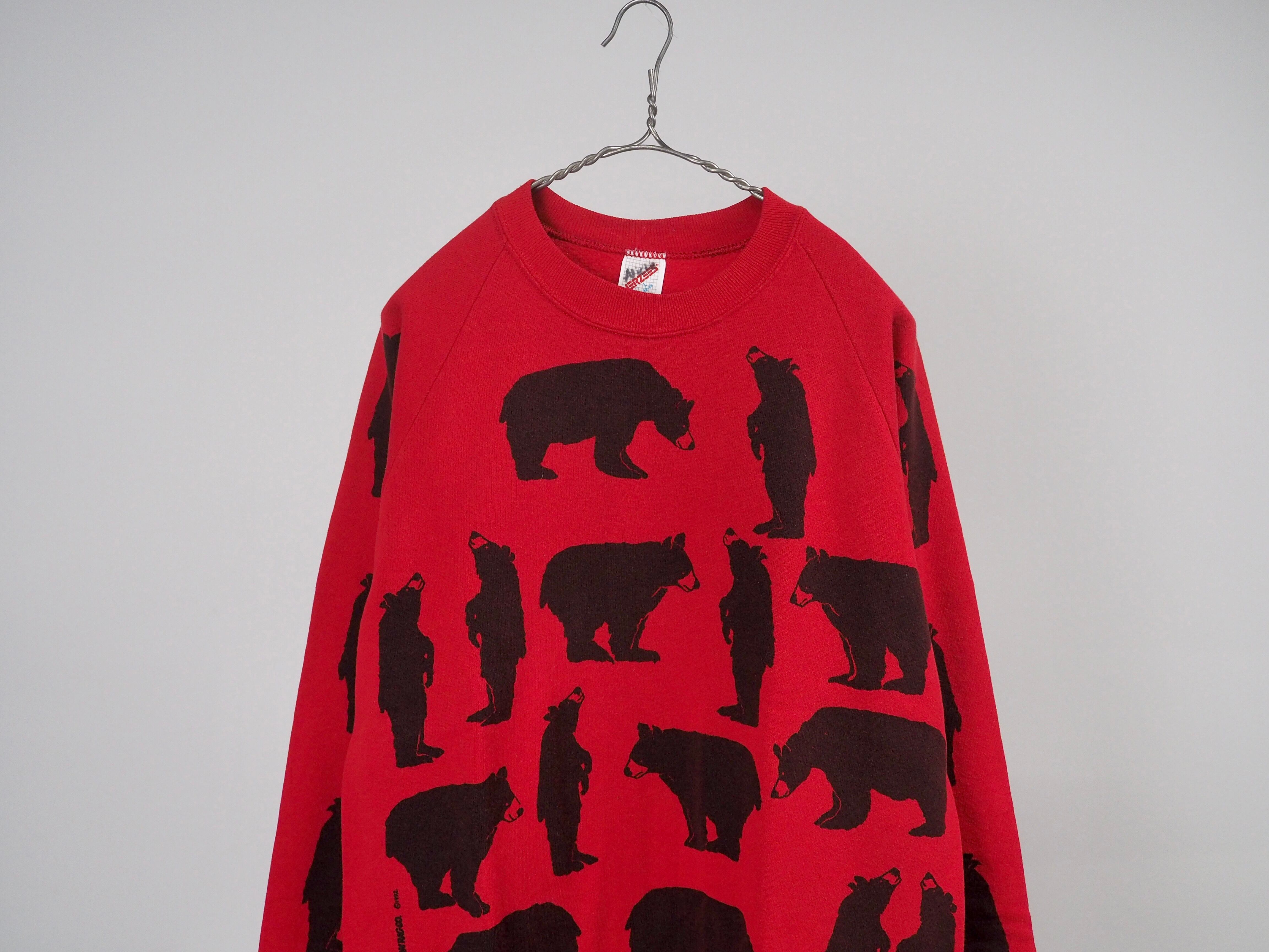 ボディーから袖先まで様々な格好をしたクマがプリントされた総柄デザイン。