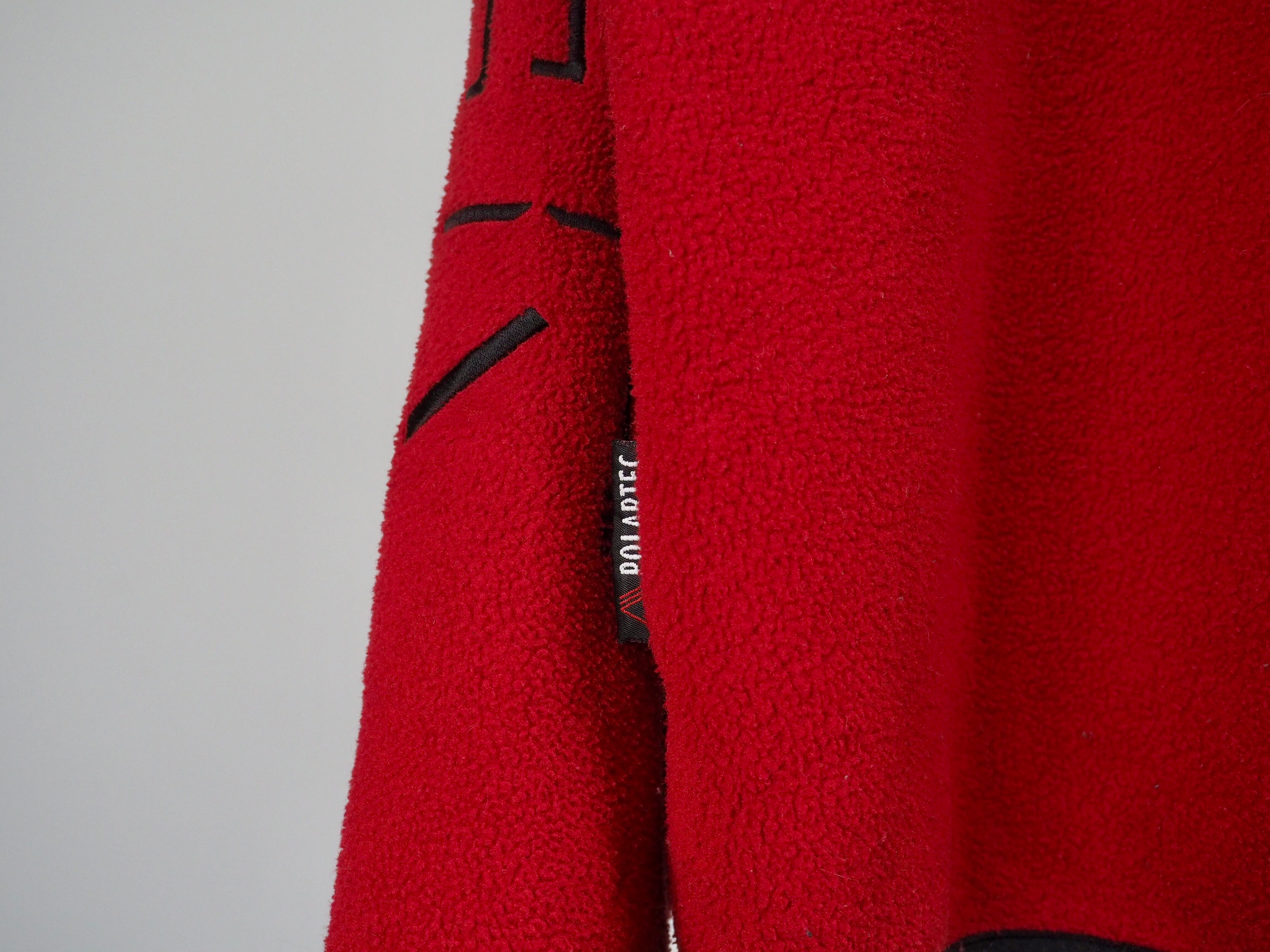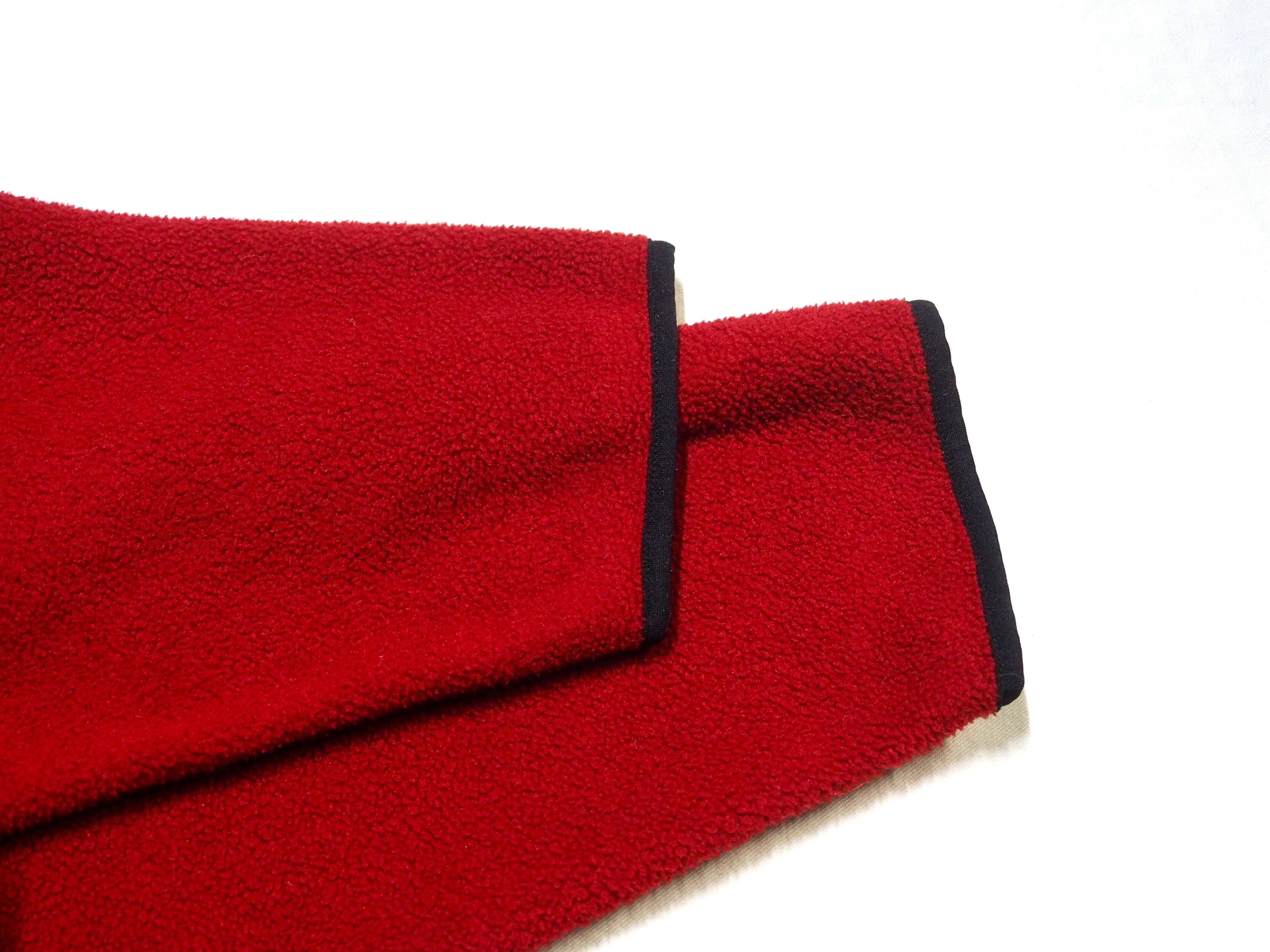 ゆったりとしたSサイズ、ブラック×レッドの2トーンカラー。