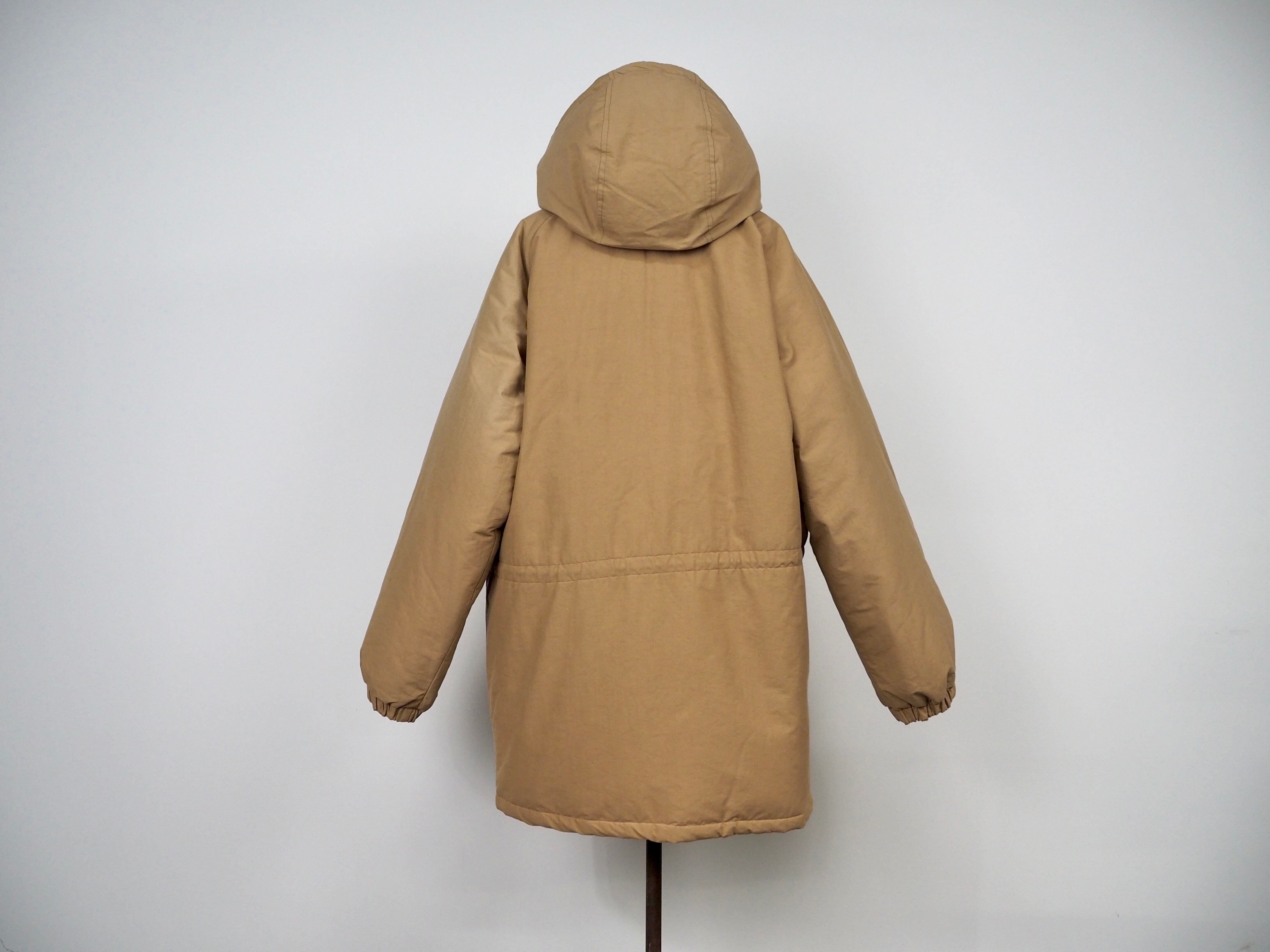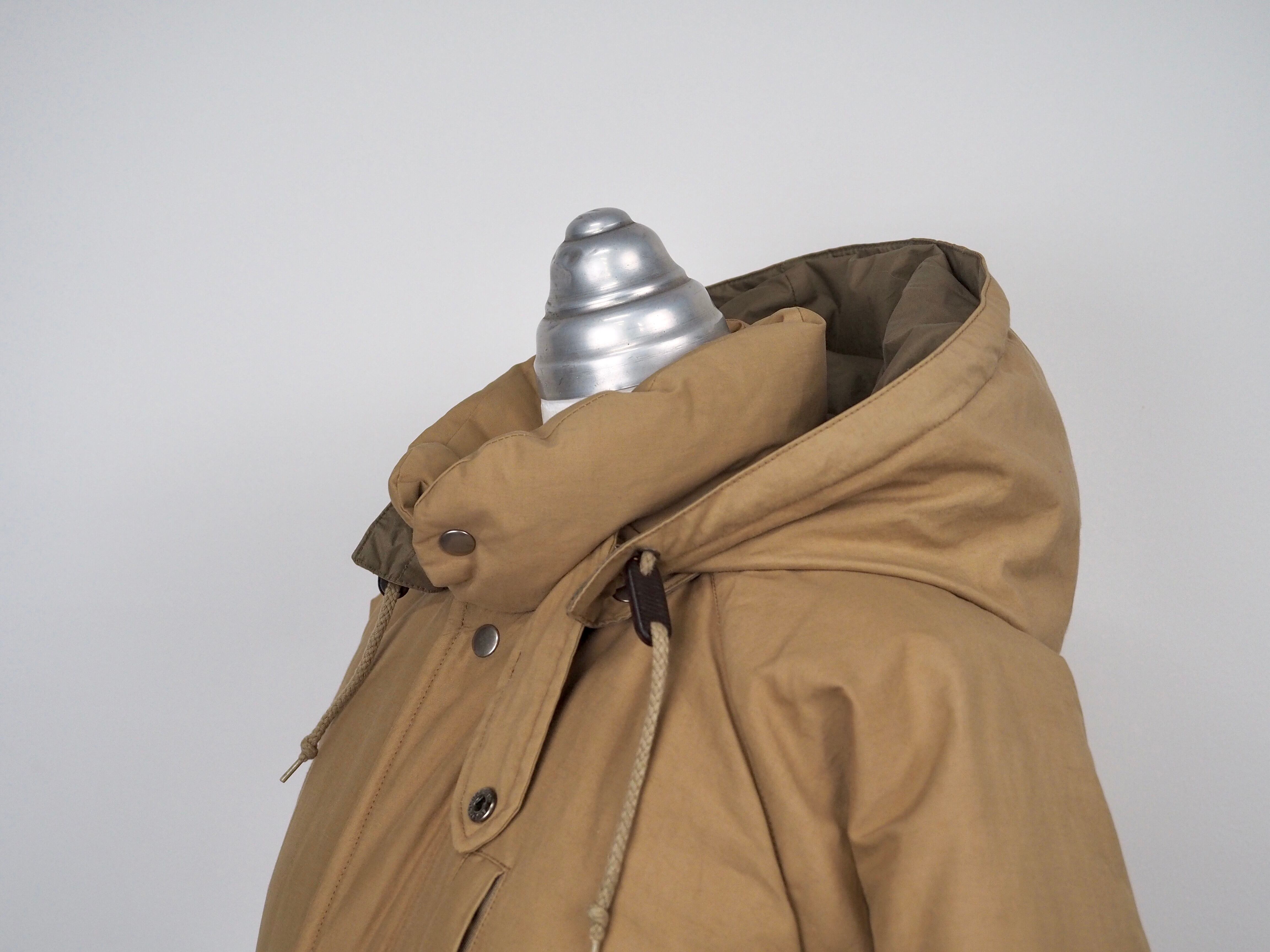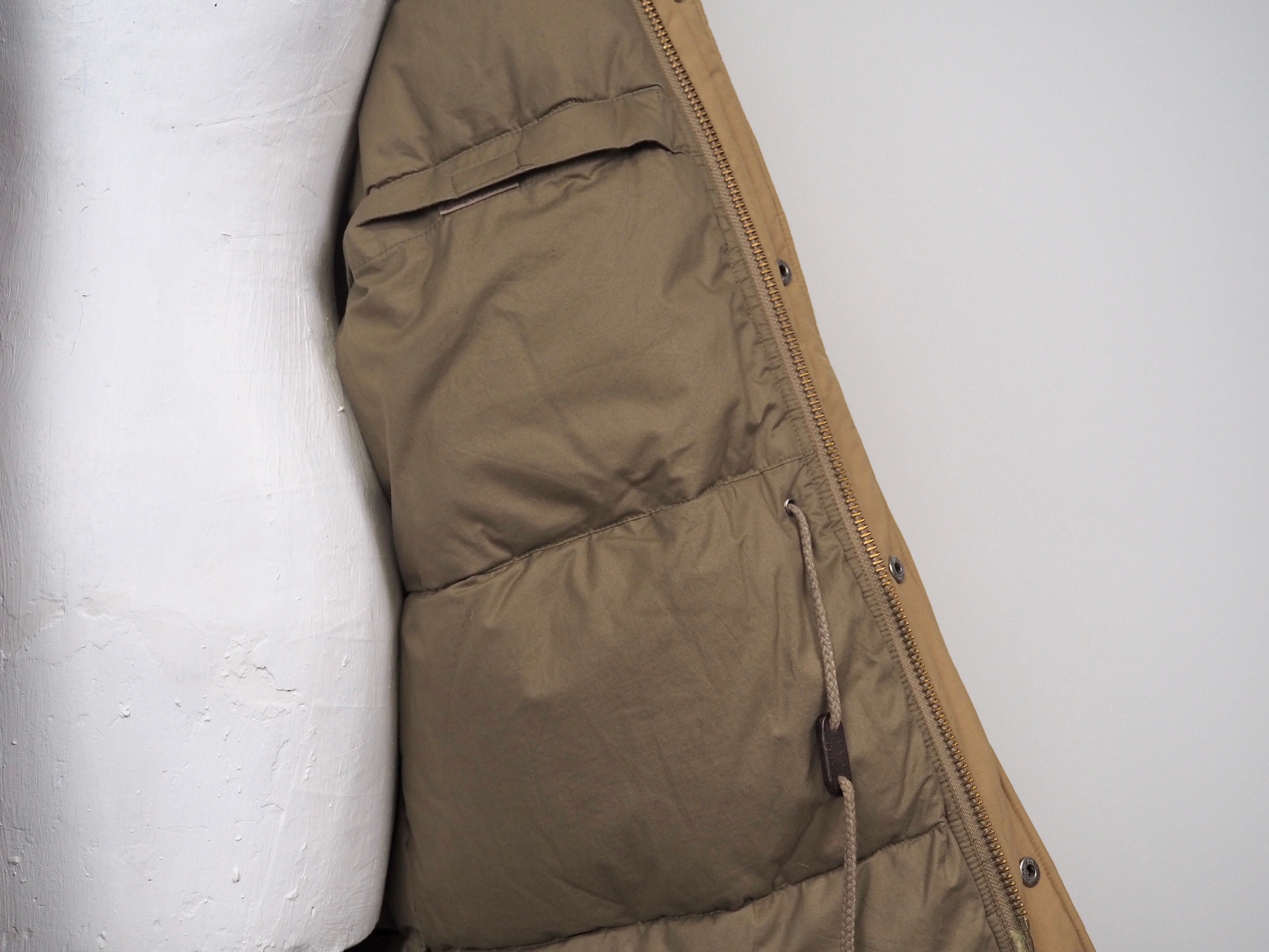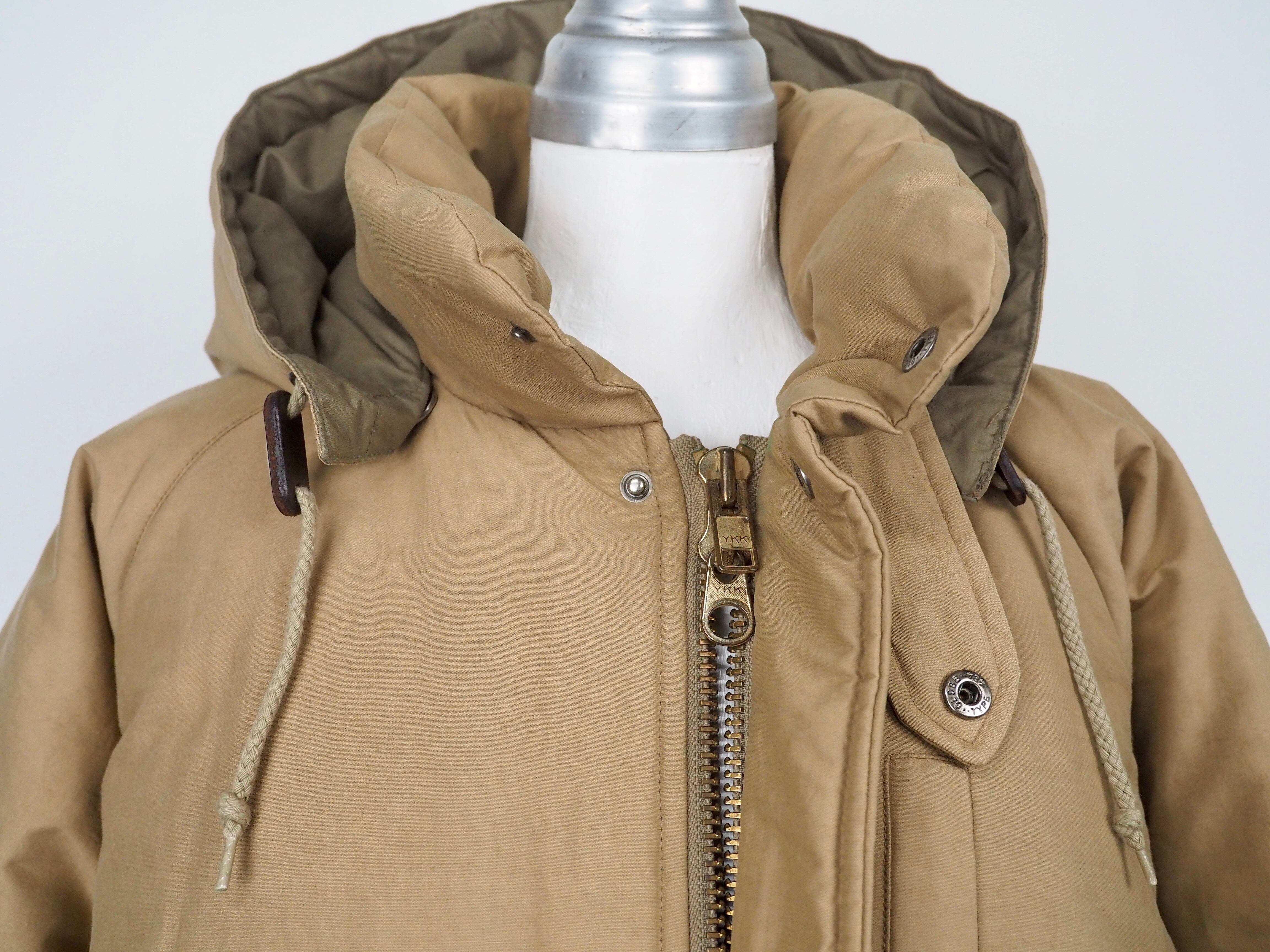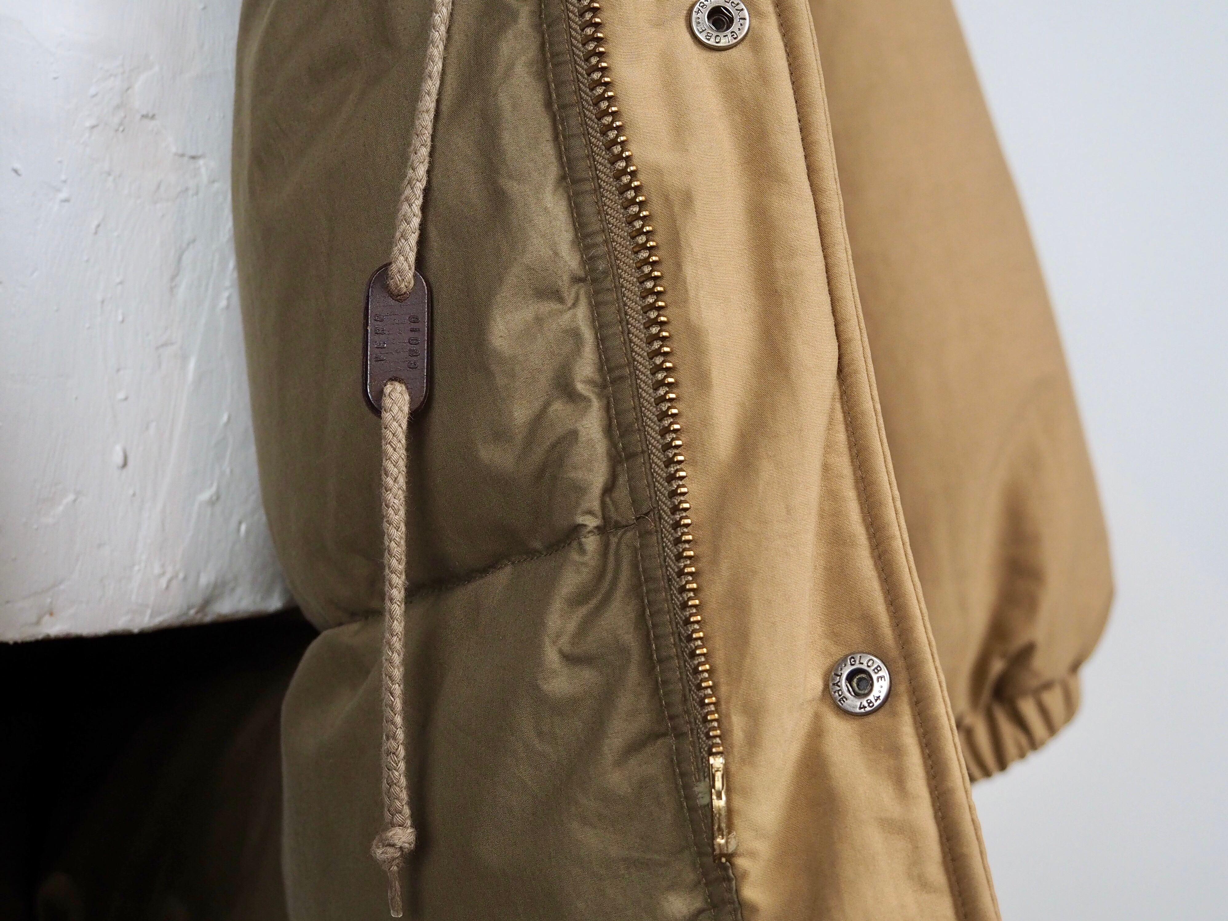フロントジッパーはミリタリーアイテムのような大きなサイズの真鍮製YKKのダブルジッパー、ドローコードパーツはウッド、ブラスのボタン裏には全てレザーがかませてあります。